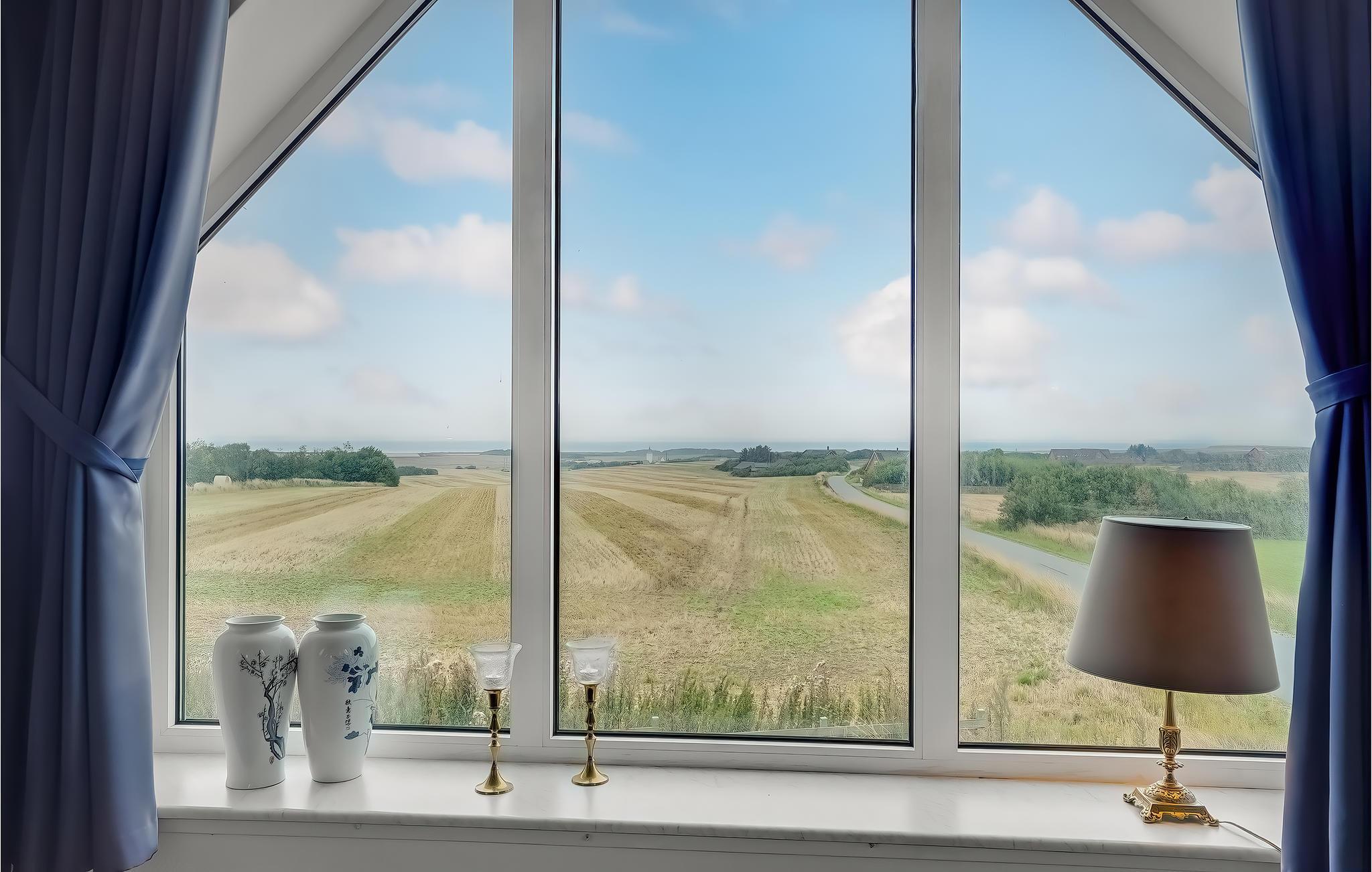 Een hoog stenen huis met een panoramisch uitzicht op de Limfjord verwelkomt u in een rustige omgeving.
