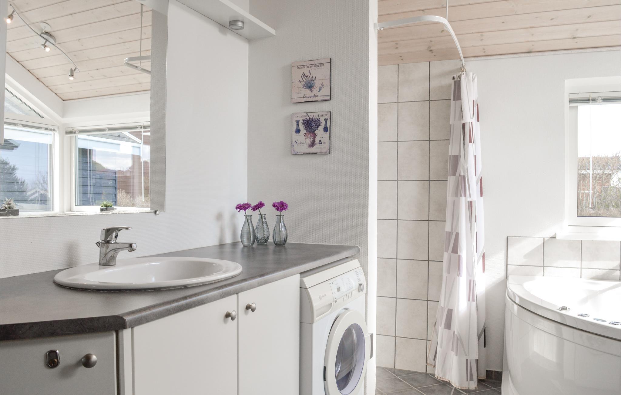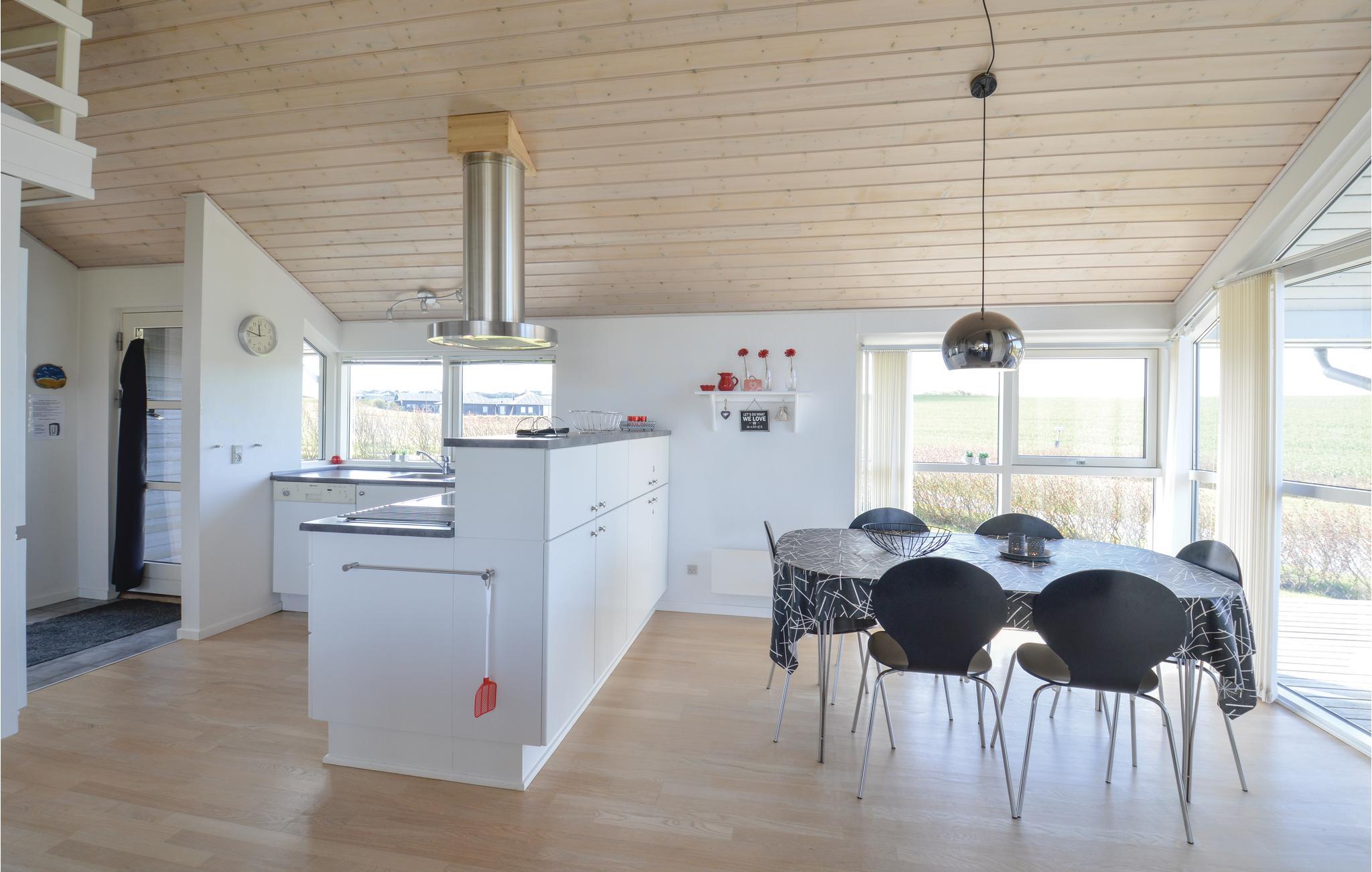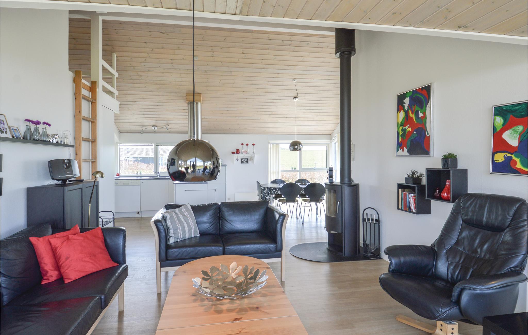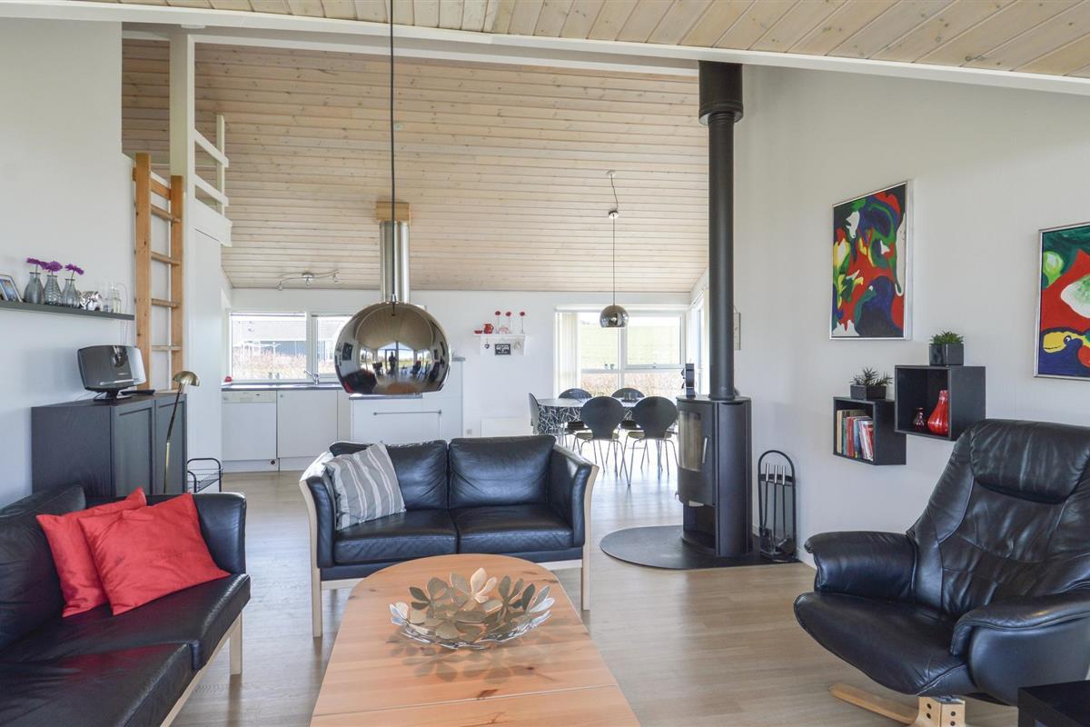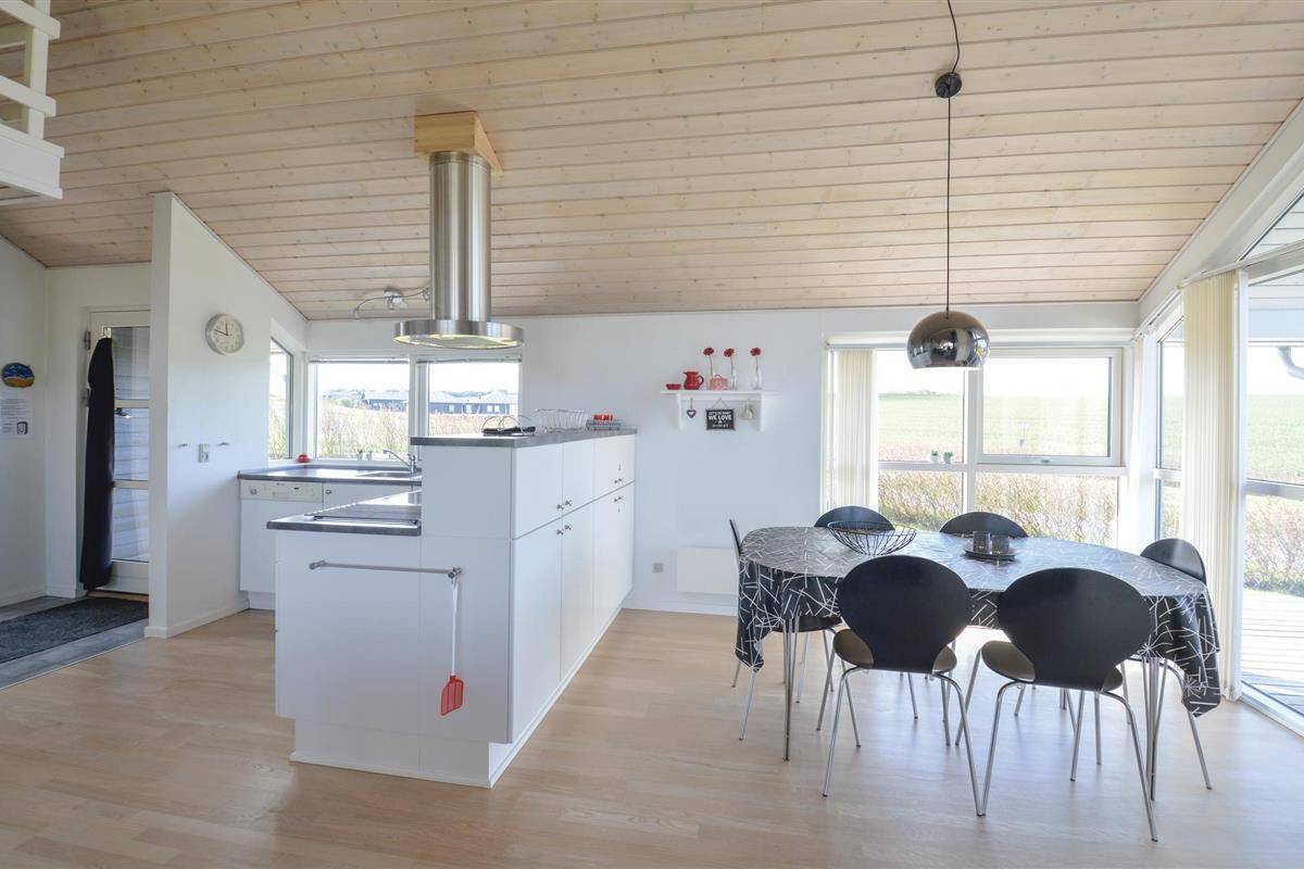 Dit mooie en goed onderhouden vakantiehuis ligt in het mooie Gjellerodde met een prachtig uitzicht op Nissum Bredning. Elke kamer in het huis heeft een fantastisch uitzicht, hetzij op het water of op vredige velden. Het huis heeft drie slaapkamers met slaapzolder, een grote badkamer met whirlpool en sauna, en een lichte keuken die open is naar de woonkamer. Vanuit de woonkamer heeft u toegang tot het terras en de grote tuin. Ongeveer 400 m van het huis ligt een grote speeltuin, ook met uitzicht op het water, een ideaal uitgangspunt voor uw vakantie.