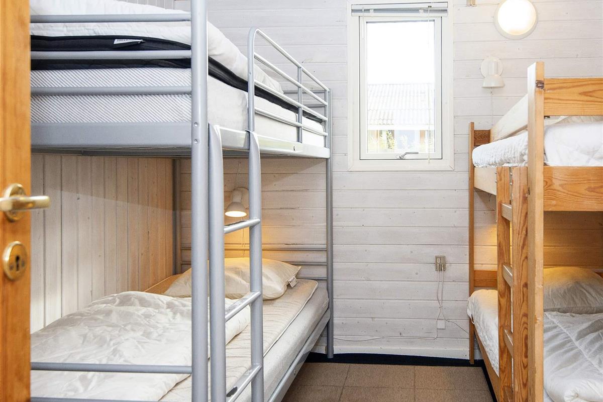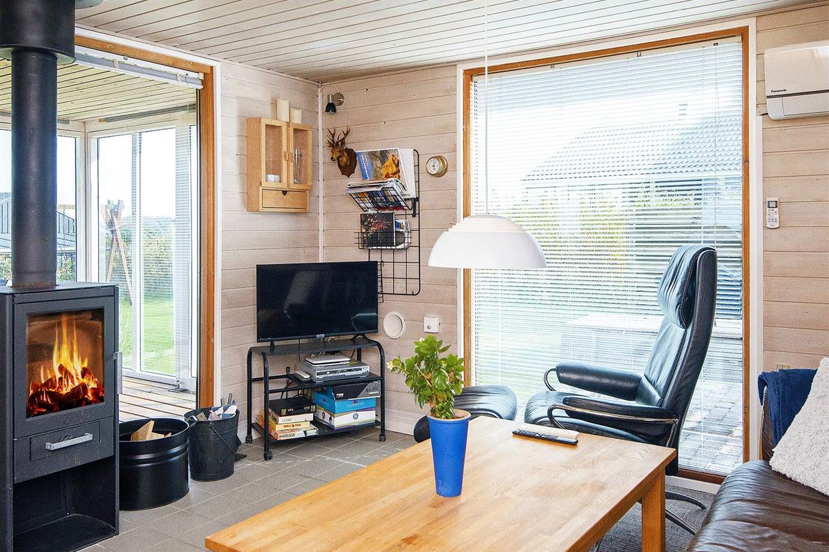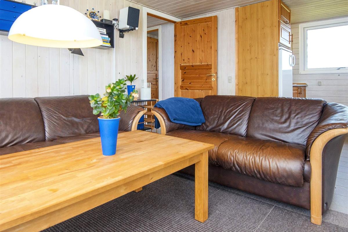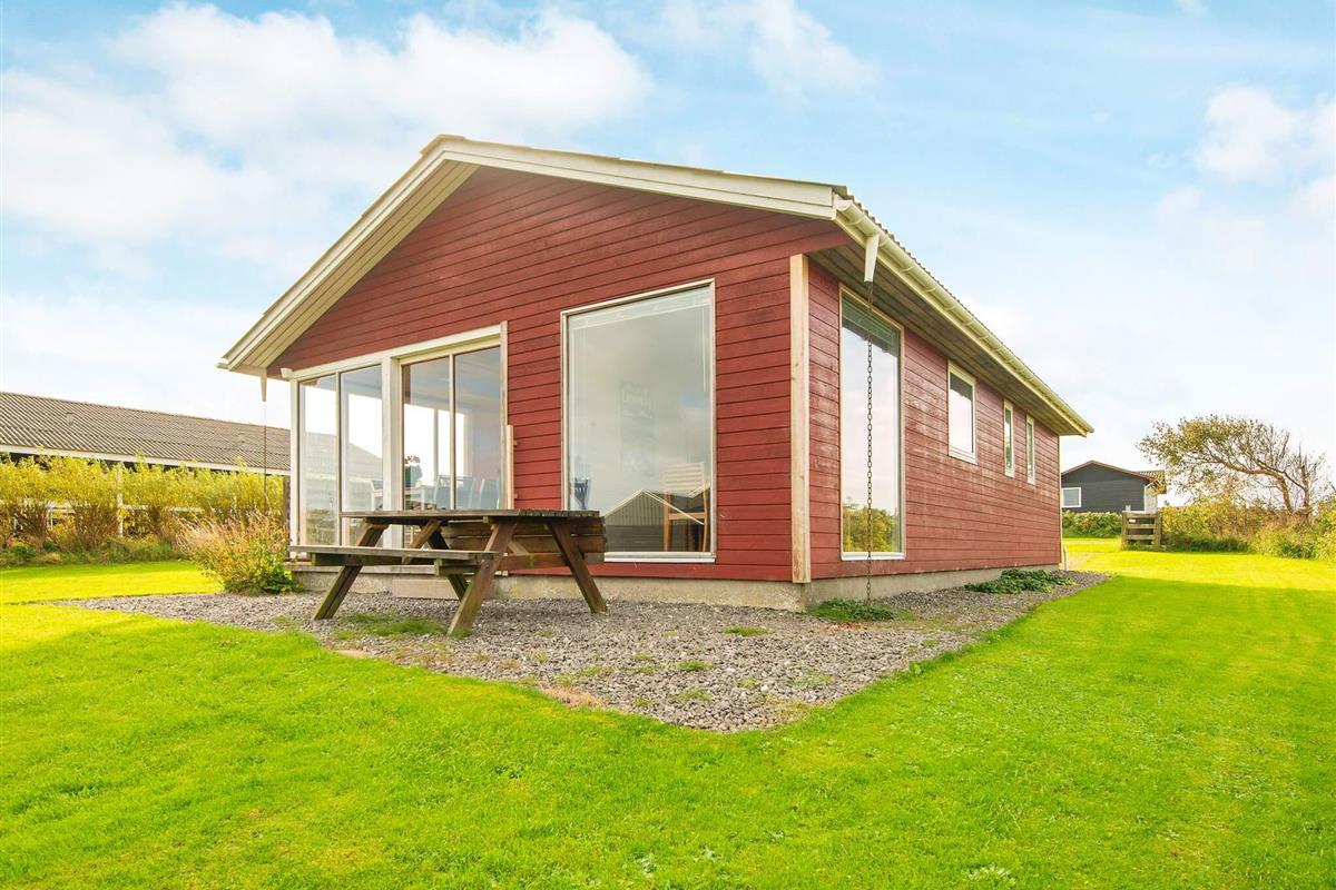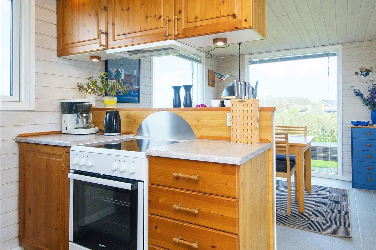 Gepflegtes Ferienhaus auf einem Naturgrundstück mit Rasenfläche, Schaukel und Sandkasten für die Kinder. Innen schöner Küchen-/Aufenthaltsbereich mit Holzofen. Zudem 9 m² große, verglaste Veranda und weitere Terrassenflächen im Außenbereich. Es gibt drei Schlafzimmer, eines mit Doppelbett, eines mit Einzelbett und eines mit zwei Etagenbetten, die vier Personen Platz zum Schlafen bieten. Für Kinder stehen Kinderbett, Hochstuhl, Sandkasten udn Schaukel bereit.