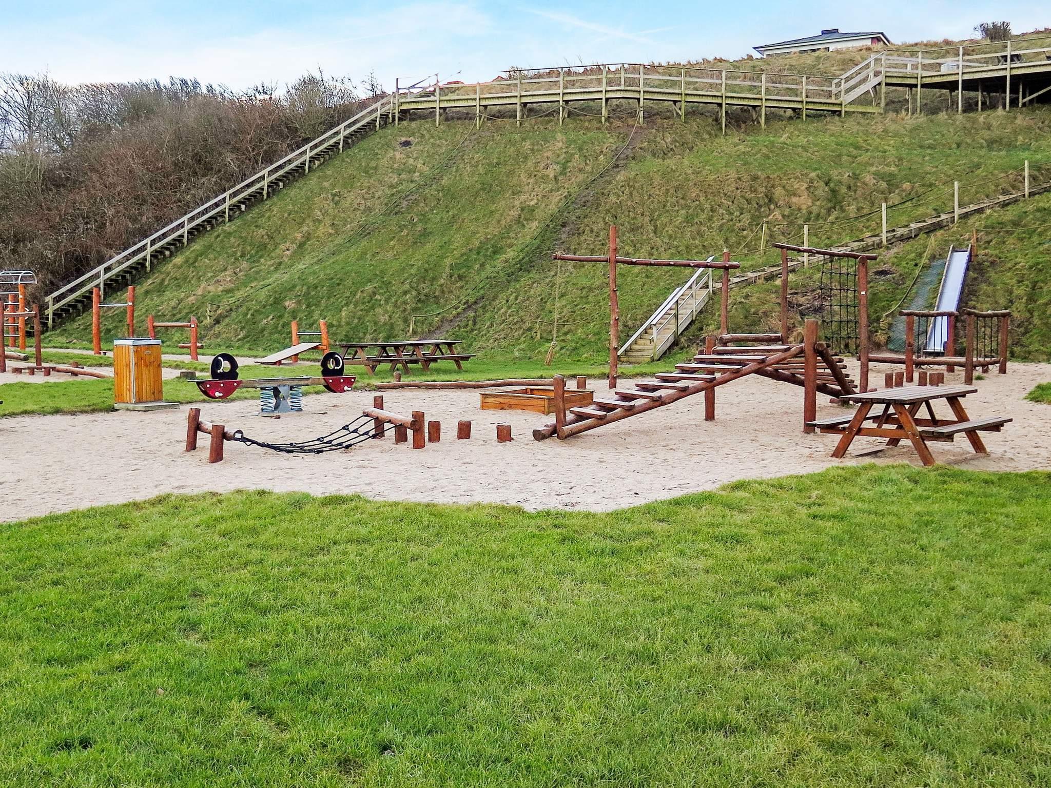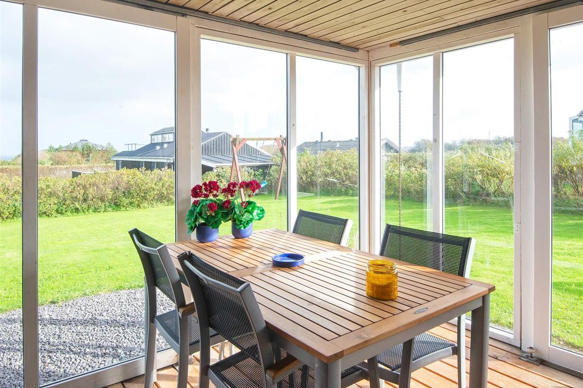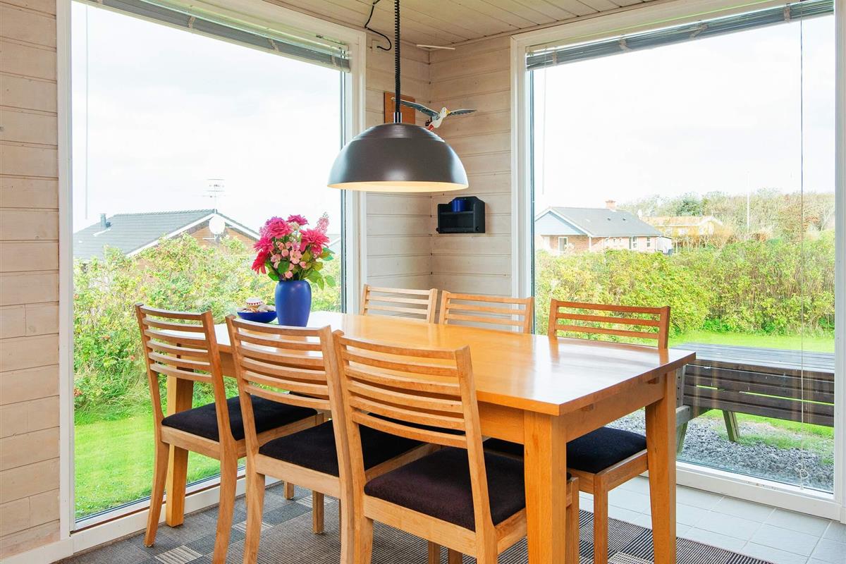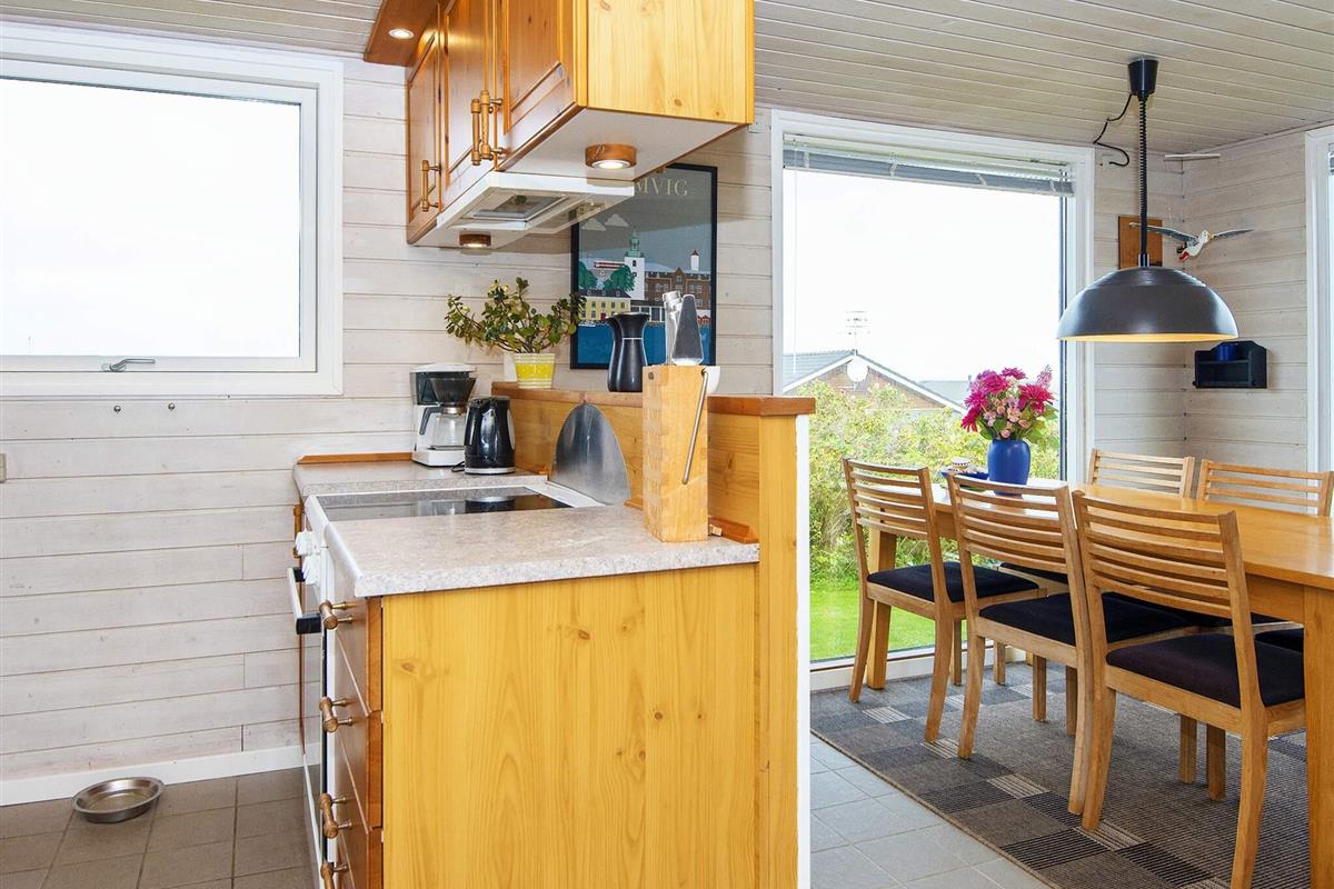 Gepflegtes Ferienhaus auf einem Naturgrundstück mit Rasenfläche, Schaukel und Sandkasten für die Kinder. Innen schöner Küchen-/Aufenthaltsbereich mit Holzofen. Zudem 9 m² große, verglaste Veranda und weitere Terrassenflächen im Außenbereich. Es gibt drei Schlafzimmer, eines mit Doppelbett, eines mit Einzelbett und eines mit zwei Etagenbetten, die vier Personen Platz zum Schlafen bieten. Für Kinder stehen Kinderbett, Hochstuhl, Sandkasten udn Schaukel bereit.