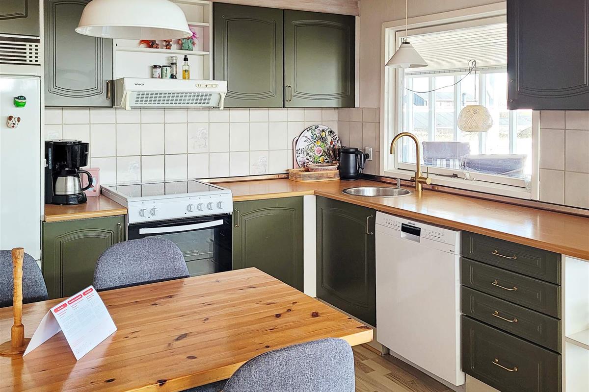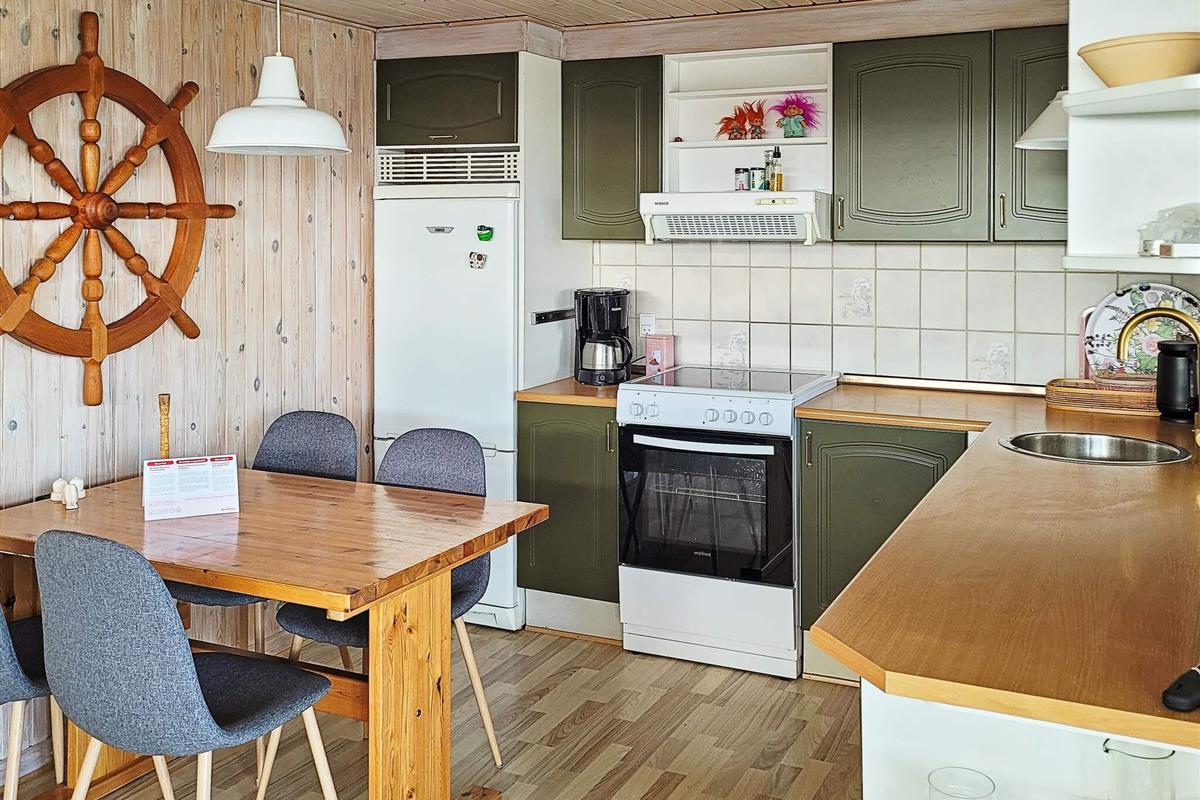 Das Ferienhaus ist praktisch eingerichtet und verfügt über eine kombinierte Wohnküche.