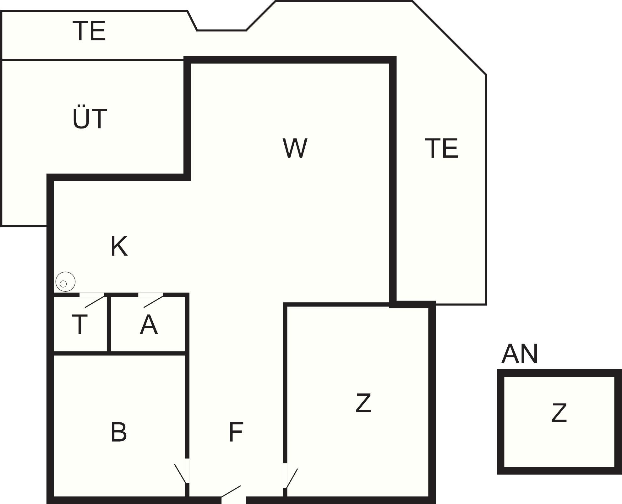 Zusätzlich gibt es einen Anbau mit zwei Zimmern, eines mit einem Doppelbett (140 x 200) und eines mit einem Etagenbett.