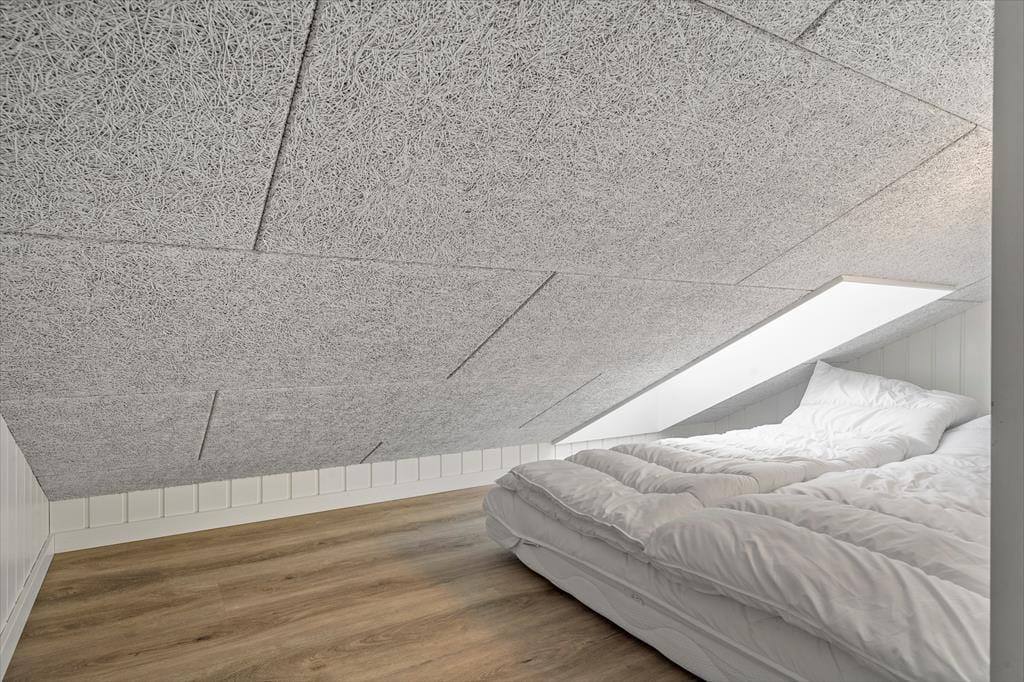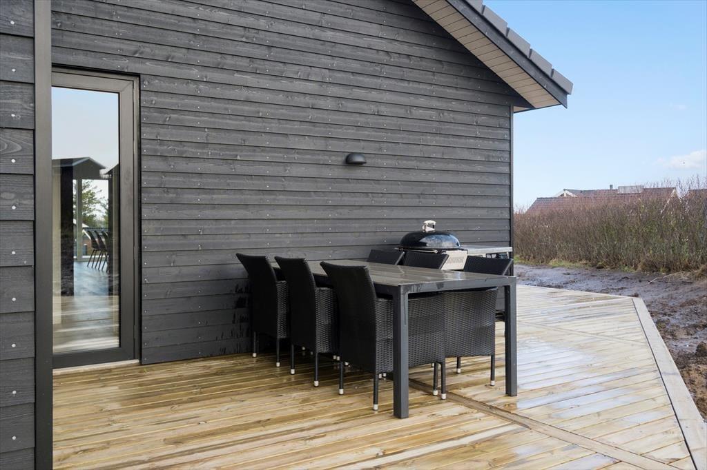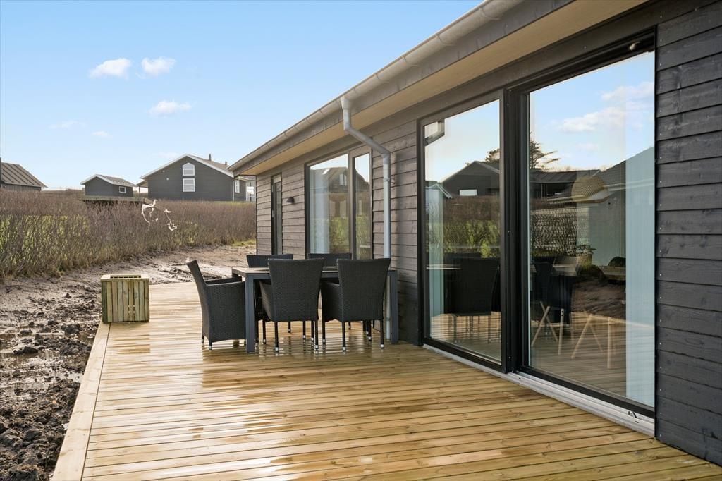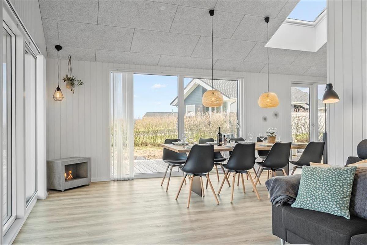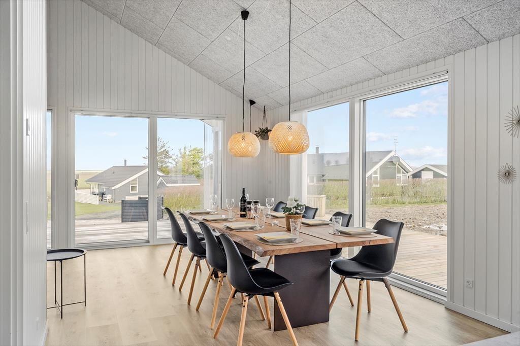 Step inside to a pleasant and light-filled atmosphere, where the home's modern style is beautifully combined with functionality and a cosy feel. The white walls and ceilings create a bright and airy ambience, and the large windows bring in plenty of natural light. The kitchen and living room are connected in an open-plan layout, making it easy for everyone to spend time together – whether you’re cooking, playing games, or relaxing with a good film. The mezzanine adds extra space for relaxing and gives the kids a perfect hideaway. The house accommodates up to eight people, making it ideal for a large family or two smaller families holidaying together. And since dogs are allowed, you can bring your four-legged family member along for the adventure.