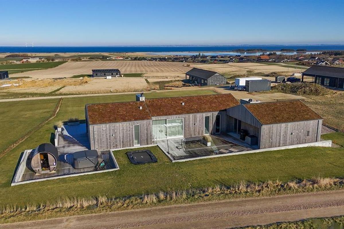 Modern vakantiehuis in Gjellerodde met uitzicht op fjord en landschap, ideaal voor een ontspannen familievakantie aan de Limfjord.