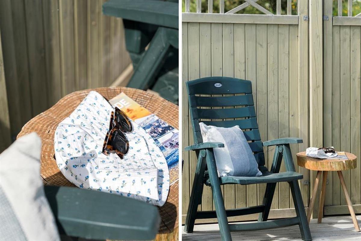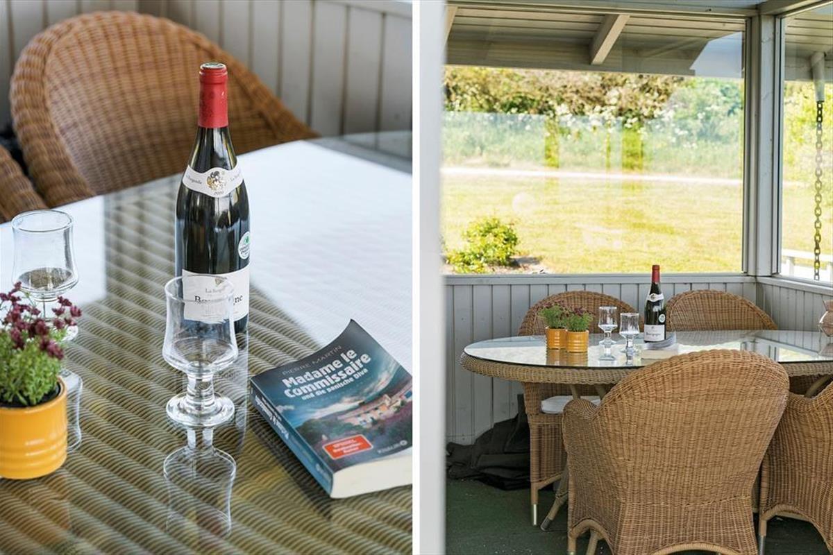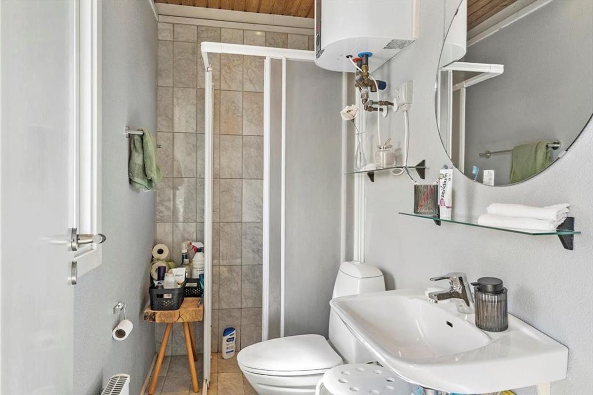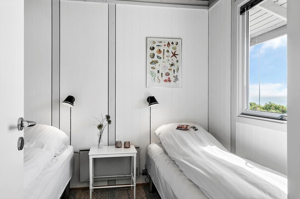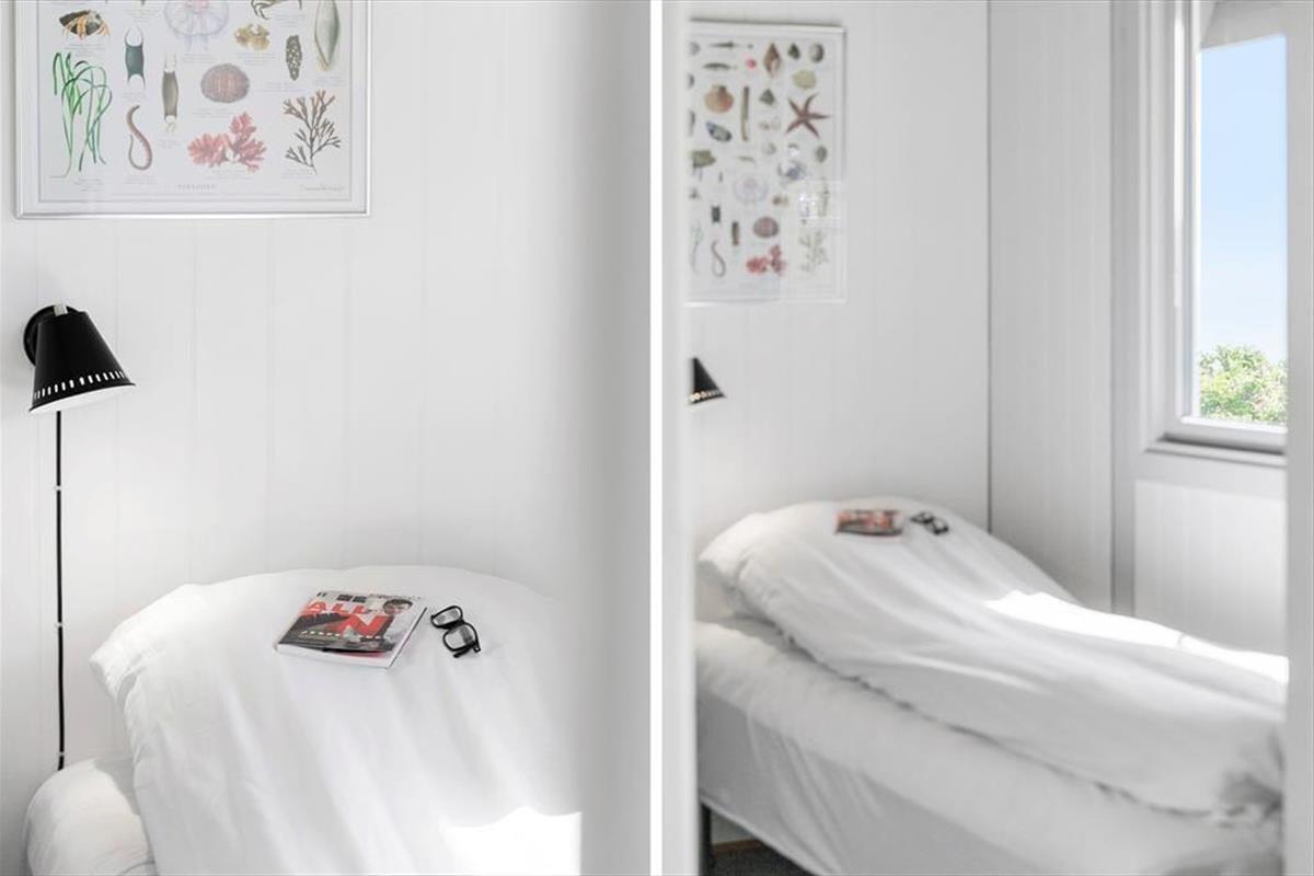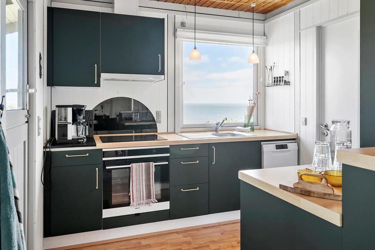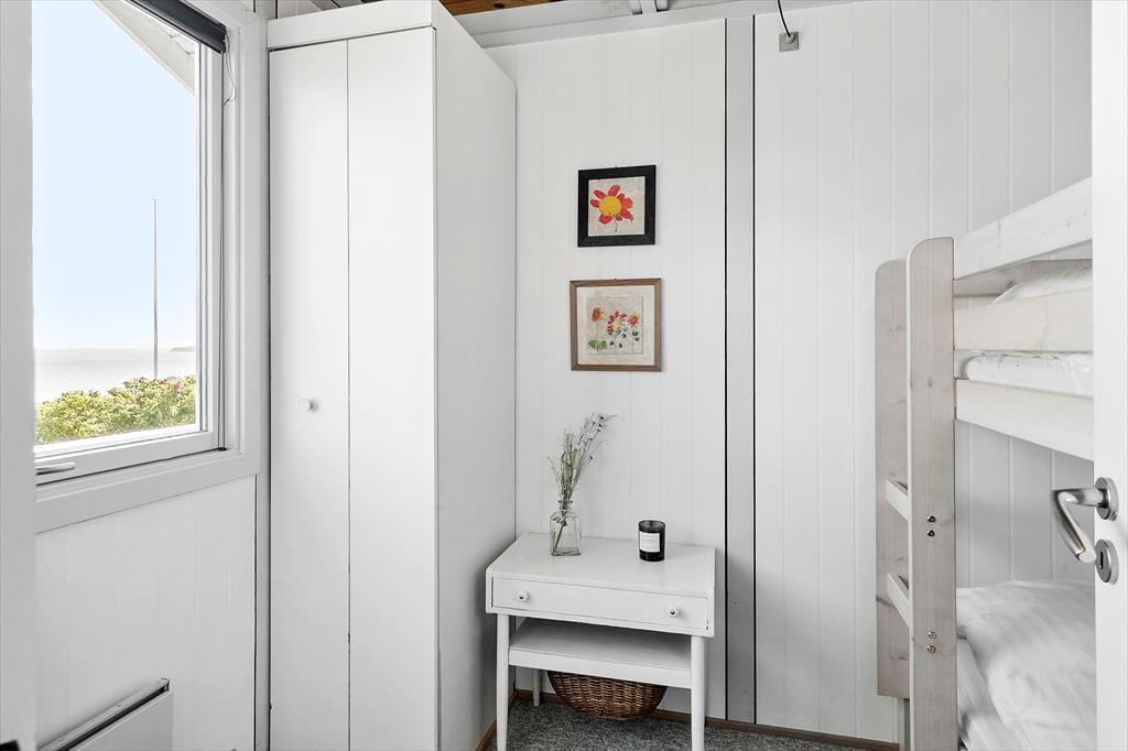 The terrace is undoubtedly one of the highlights of the holiday home. It’s spacious and well-positioned in relation to the sun, and it’s easy to find shelter here while you enjoy the fresh air and the stunning views over the hilly landscape that Gjellerodde is known for. It’s the perfect place to spend hours outdoors – whether you’re barbecuing, enjoying a glass of wine, or simply relaxing with a book and the sound of birdsong in the background. Just 200 metres away lies the beach, where children can paddle and play in the shallow water, and where you can take a refreshing dip in the fjord or enjoy the sunset with your toes in the sand. When the weather allows, the garden is ideal for play and ball games – and the rest of the time, there's plenty of space just to be.
