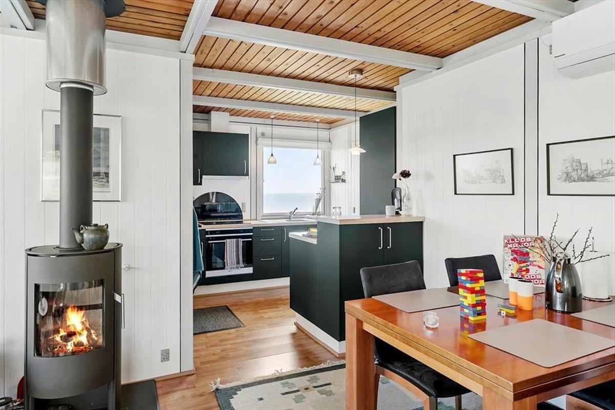 The interior of the holiday home on Gyvelvej 20 is simple, bright and comfortable – with a cosy atmosphere that immediately makes you feel at home. The wood-burning stove in the living room makes the house ideal for holidays all year round, as there’s nothing quite like relaxing in the warmth while watching the flames flicker and hearing the wind rustle outside. The kitchen and living room are connected in an open layout, making it easy to enjoy meals together, play cards, and talk long into the evening. A true holiday is when time slows down – and you’ll certainly feel that here. The house has space for the whole family or a group of friends, and whether you're after relaxation or activity, this is the perfect setting.