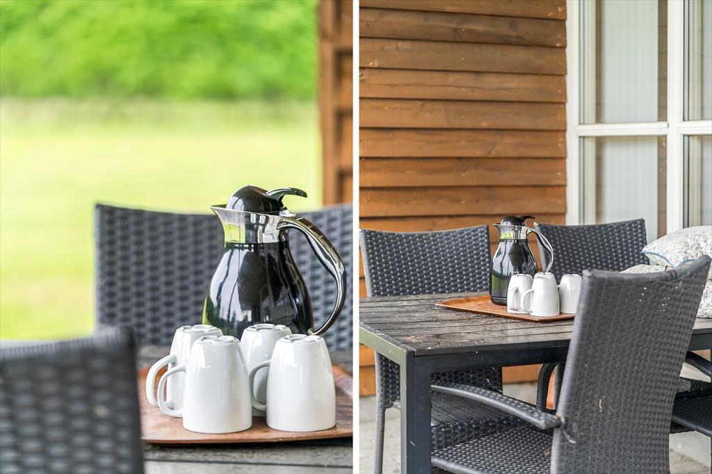 The garden surrounding the holiday home is ideal for outdoor living and play – complete with a swing set and sandbox sure to delight the youngest holidaymakers. The terrace is spacious and well-sheltered, allowing you to enjoy the sun and fresh air in peace – whether you're grilling dinner, relaxing with a book in a sun lounger, or sipping a glass of wine as the day winds down. The hilly landscape of Gjellerodde offers a beautiful backdrop for your holiday days, and the short walk to the beach makes it easy to head to the fjord on a whim. Children can build sandcastles and play in the shallow water while adults enjoy the view – maybe even a refreshing evening dip as the sun sets over the horizon.