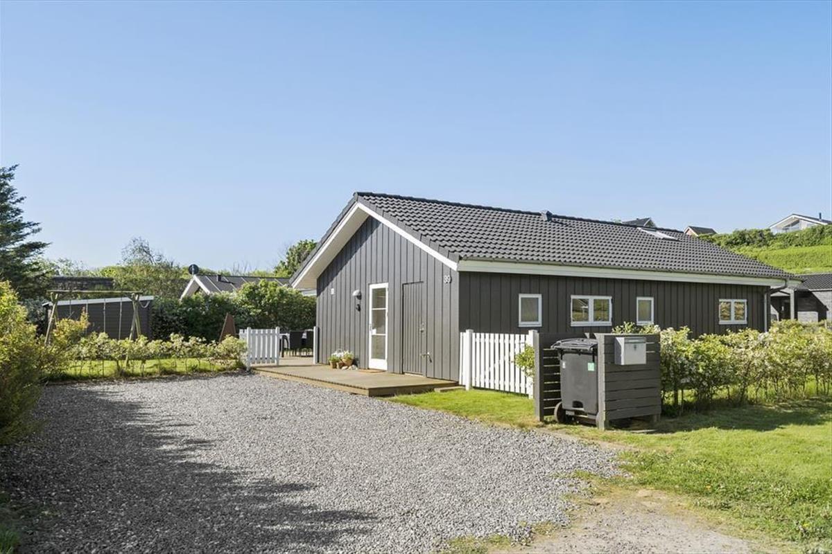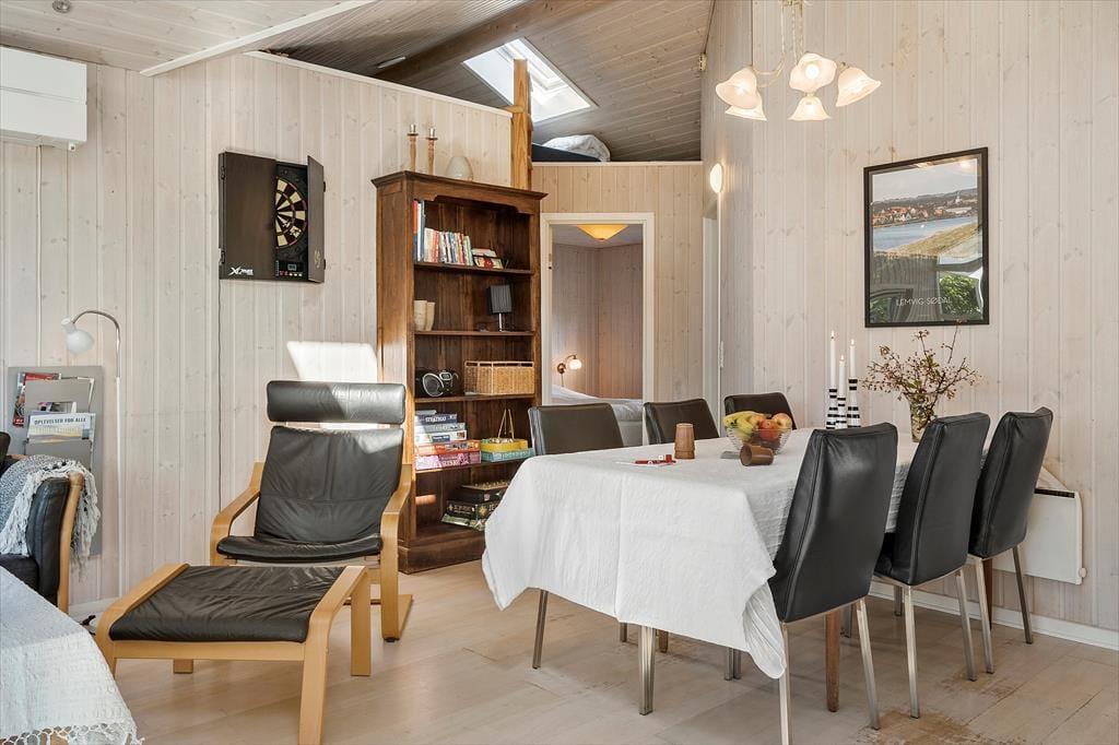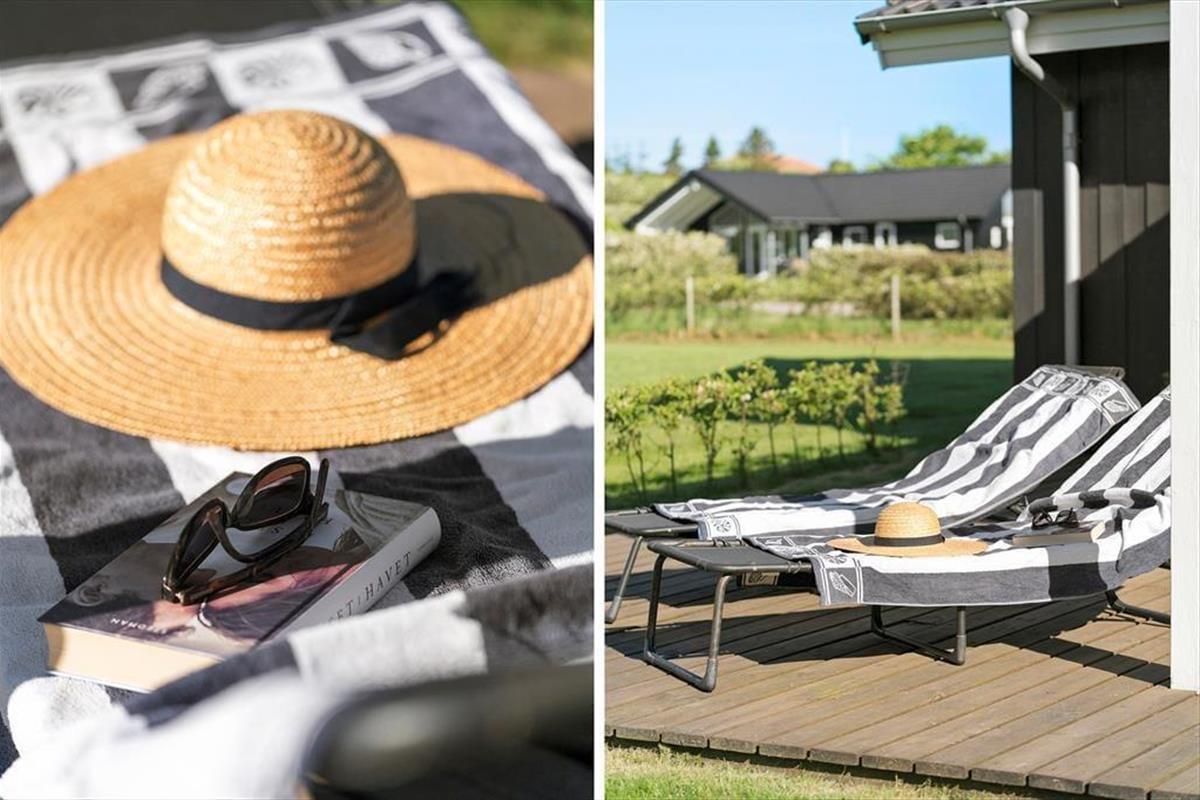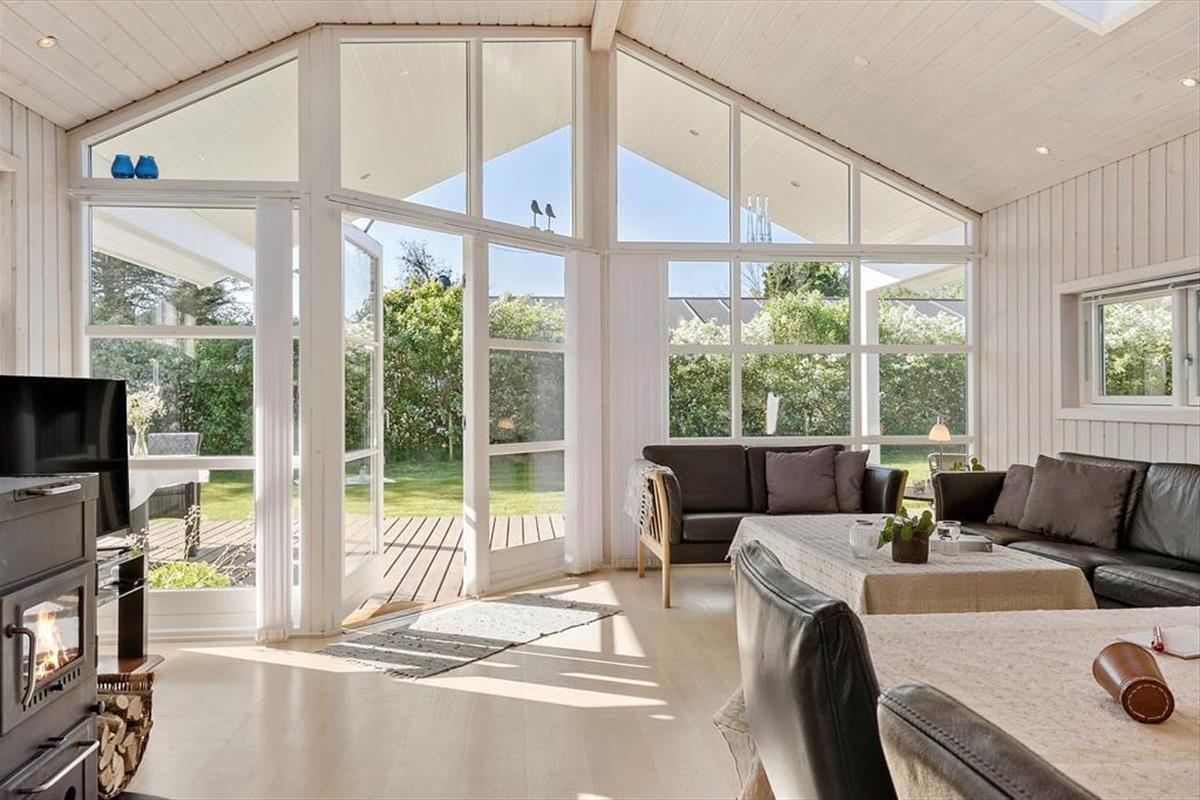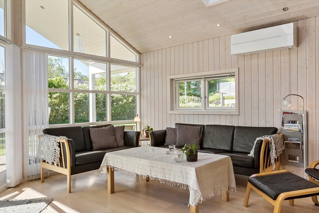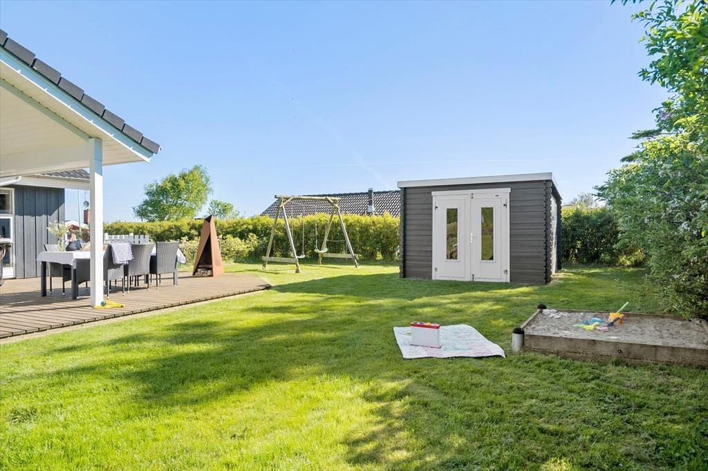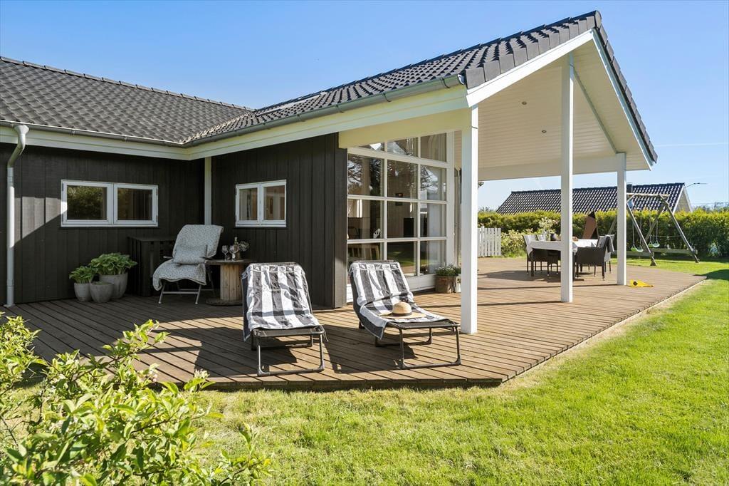 The holiday home is peacefully located at the end of a small side street off Porsevej, and on a bright and mild summer’s day, the spacious terrace is the perfect spot to enjoy life. Part of the southeast-facing terrace is covered, while the rest is completely open, giving you options whether you want to sip your morning coffee in the first rays of sun or enjoy a quiet evening with freshly grilled food. The garden features play equipment for the youngest guests, and the large lawn invites both children and adults to enjoy games and fun outdoors.