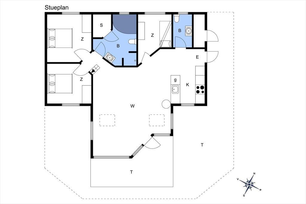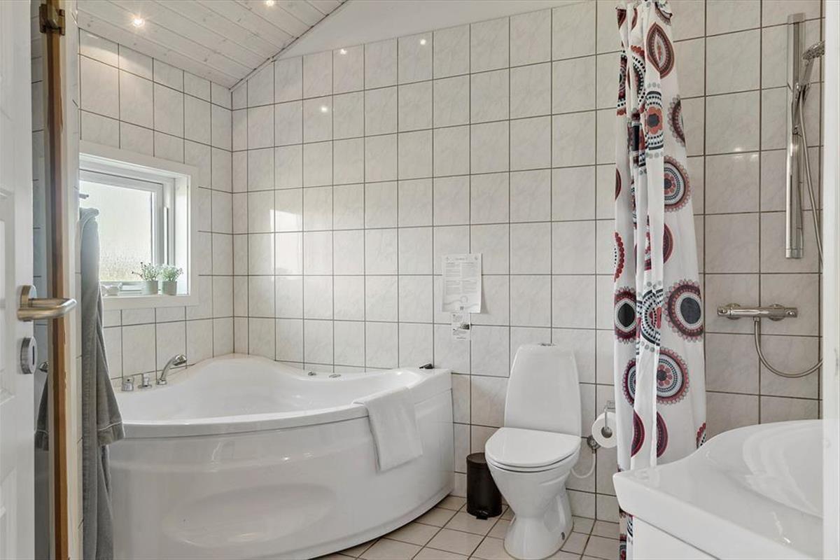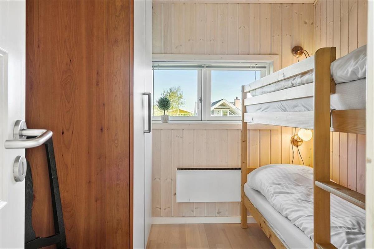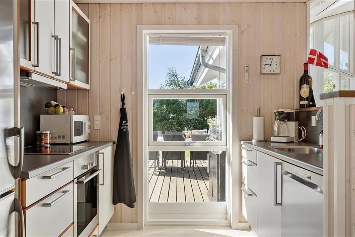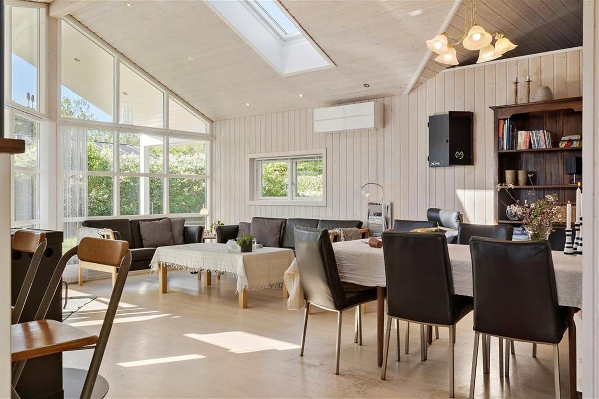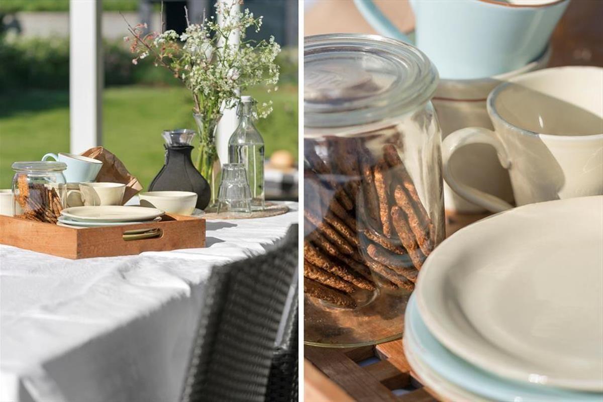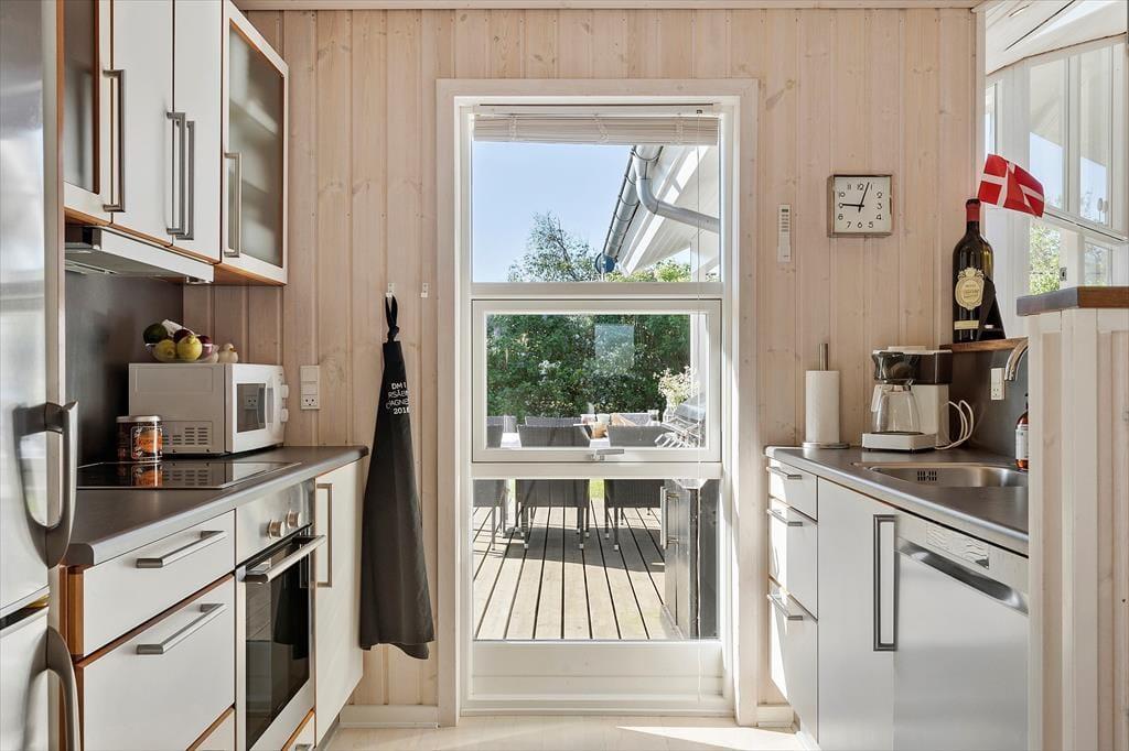 The holiday home is peacefully located at the end of a small side street off Porsevej, and on a bright and mild summer’s day, the spacious terrace is the perfect spot to enjoy life. Part of the southeast-facing terrace is covered, while the rest is completely open, giving you options whether you want to sip your morning coffee in the first rays of sun or enjoy a quiet evening with freshly grilled food. The garden features play equipment for the youngest guests, and the large lawn invites both children and adults to enjoy games and fun outdoors.