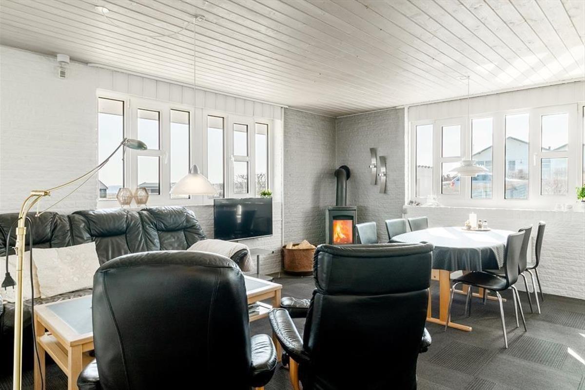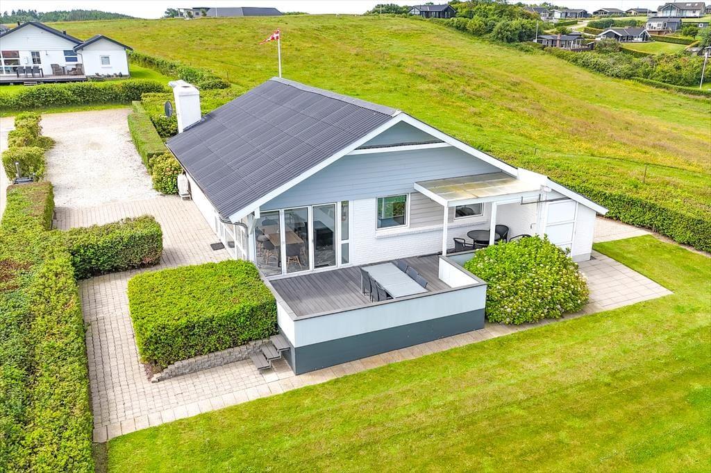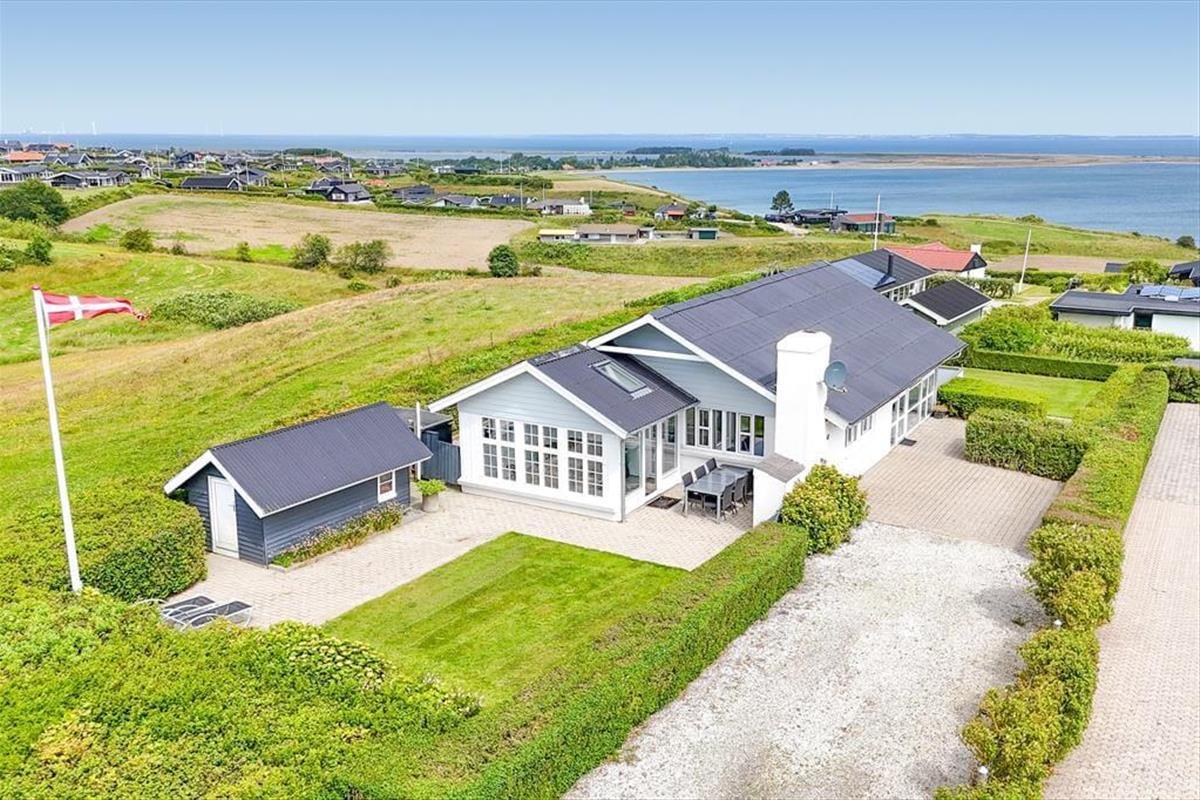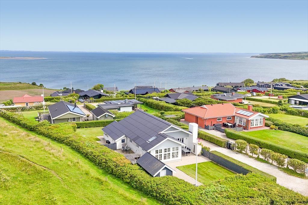 With its unique location at the end of the road and a fantastic panoramic view over Lem Vig, this holiday home is the perfect place to enjoy nature and outdoor living. Start your morning with a cup of coffee in the northeast-facing sunroom, where you can let your gaze drift across the fjord and watch the sun rise over the calm water. In the evening, you can move to the southwest-facing sunroom or relax on one of the two terraces, where you can enjoy the sunset and the rural idyll with grazing cows in the background. The covered section of the northeast-facing terrace allows you to stay outside even when the weather is a bit unpredictable. The house is also dog-friendly, so you can bring your four-legged friends along and let them enjoy the freedom of the scenic surroundings.