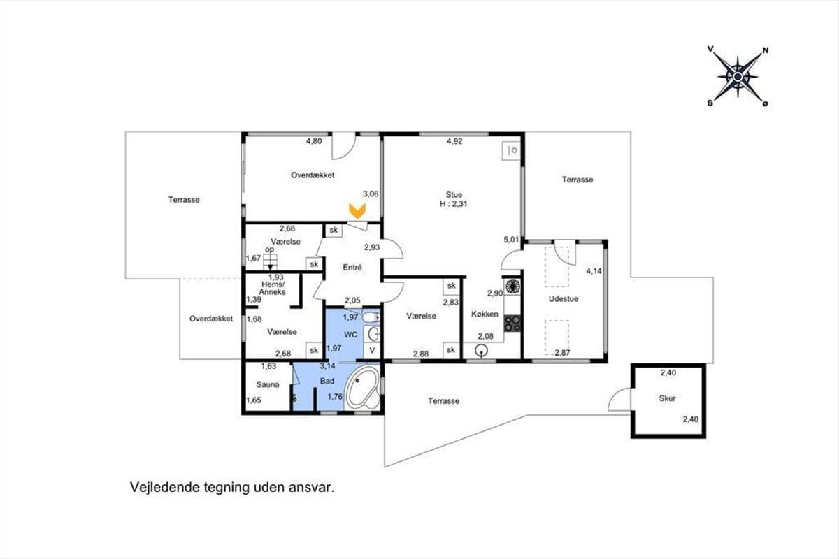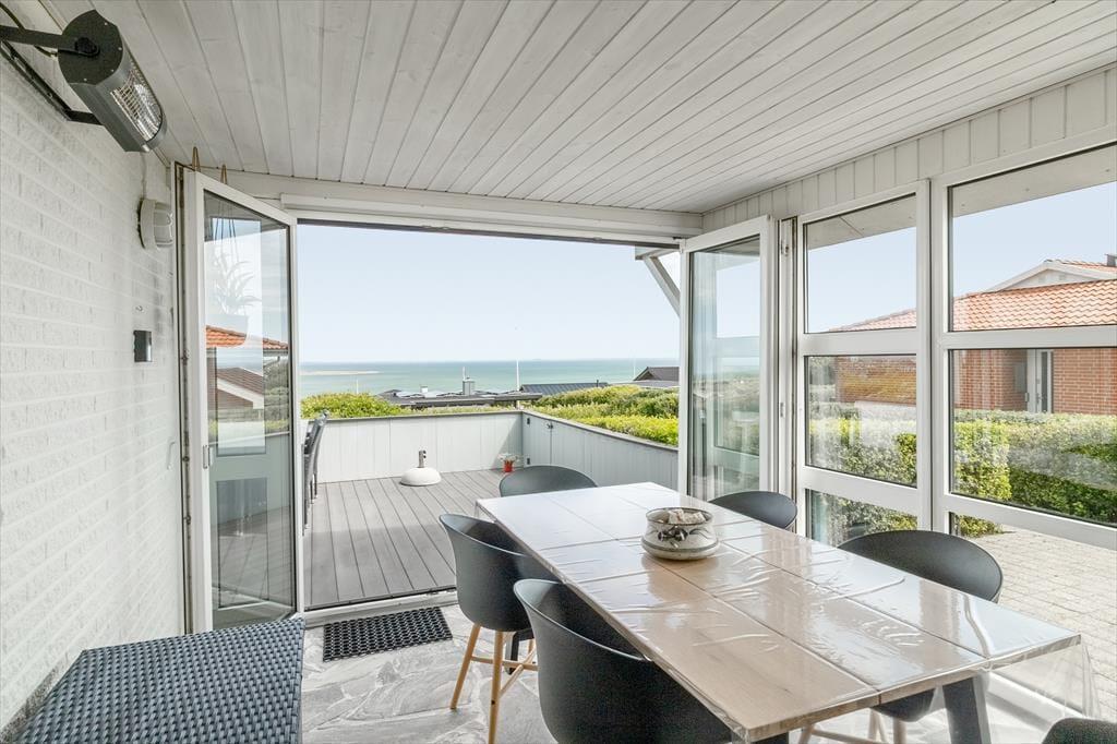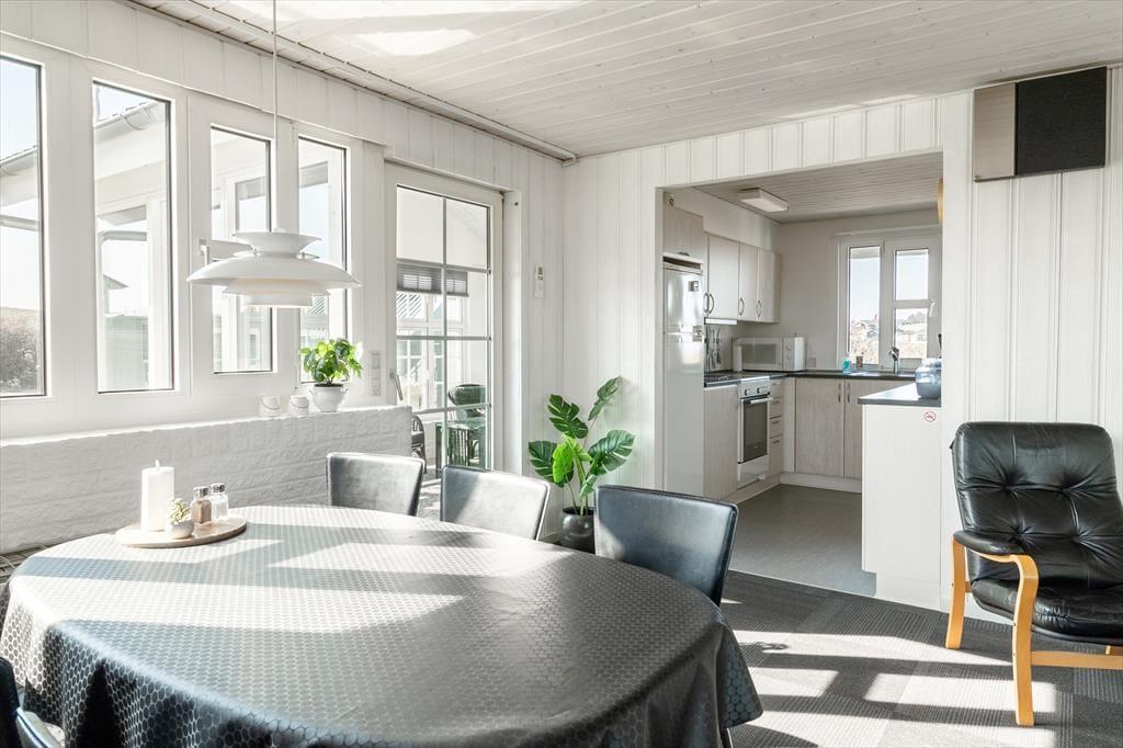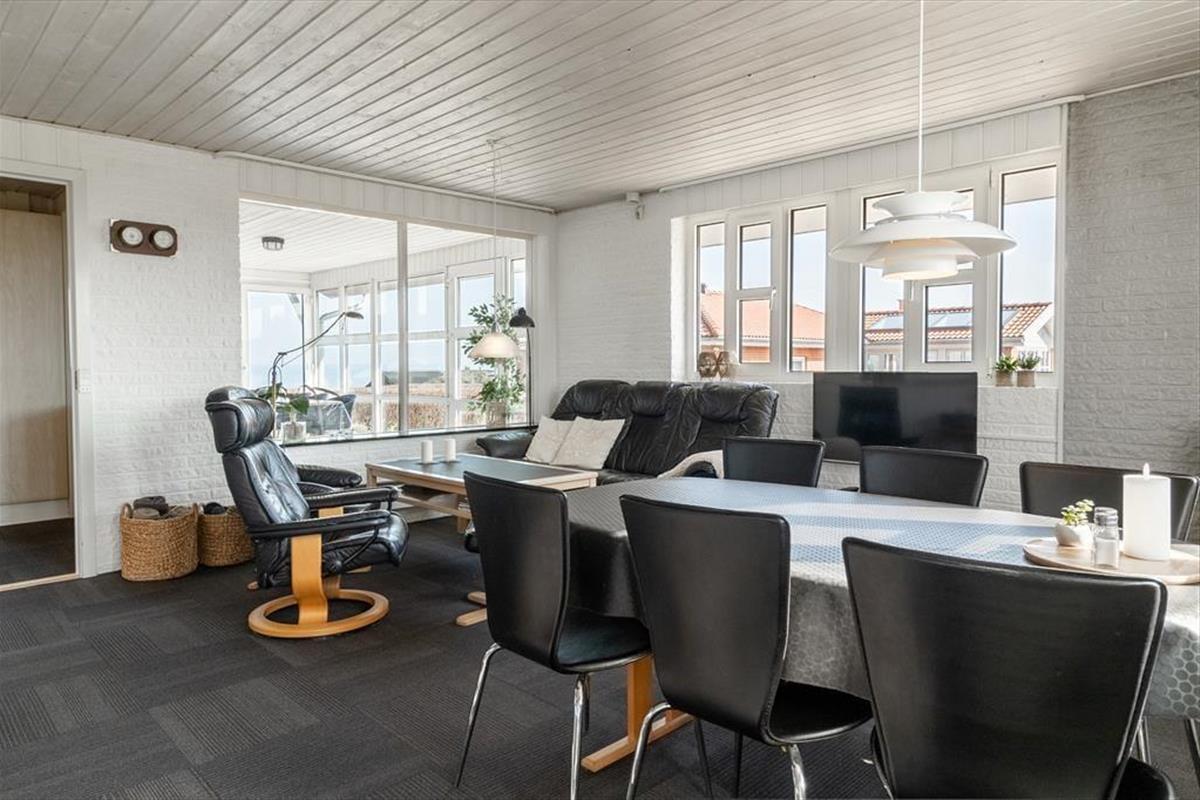 With its unique location at the end of the road and a fantastic panoramic view over Lem Vig, this holiday home is the perfect place to enjoy nature and outdoor living. Start your morning with a cup of coffee in the northeast-facing sunroom, where you can let your gaze drift across the fjord and watch the sun rise over the calm water. In the evening, you can move to the southwest-facing sunroom or relax on one of the two terraces, where you can enjoy the sunset and the rural idyll with grazing cows in the background. The covered section of the northeast-facing terrace allows you to stay outside even when the weather is a bit unpredictable. The house is also dog-friendly, so you can bring your four-legged friends along and let them enjoy the freedom of the scenic surroundings.