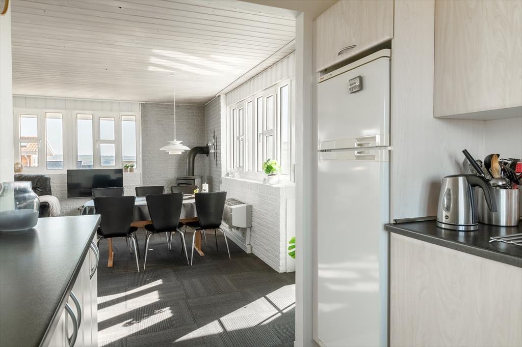 From the moment you step into this holiday home on Syrenvej 43, you will feel the tranquility wash over you. Here, you are welcomed by a cozy atmosphere, where the crackling of the wood-burning stove and the gentle daylight streaming through the large windows create the perfect setting for a relaxing holiday. The living room and kitchen are open-plan, offering plenty of space to gather for cooking or enjoy a board game on the sofa after a day in the fresh air. The bathroom is equipped with a lovely whirlpool bath, where you can unwind and let the day's experiences sink in. The house has three bedrooms, ensuring a restful night’s sleep, whether you are traveling with family or friends.