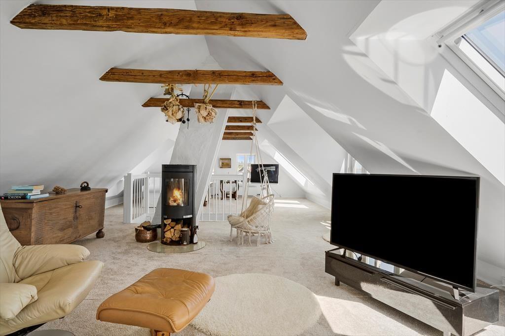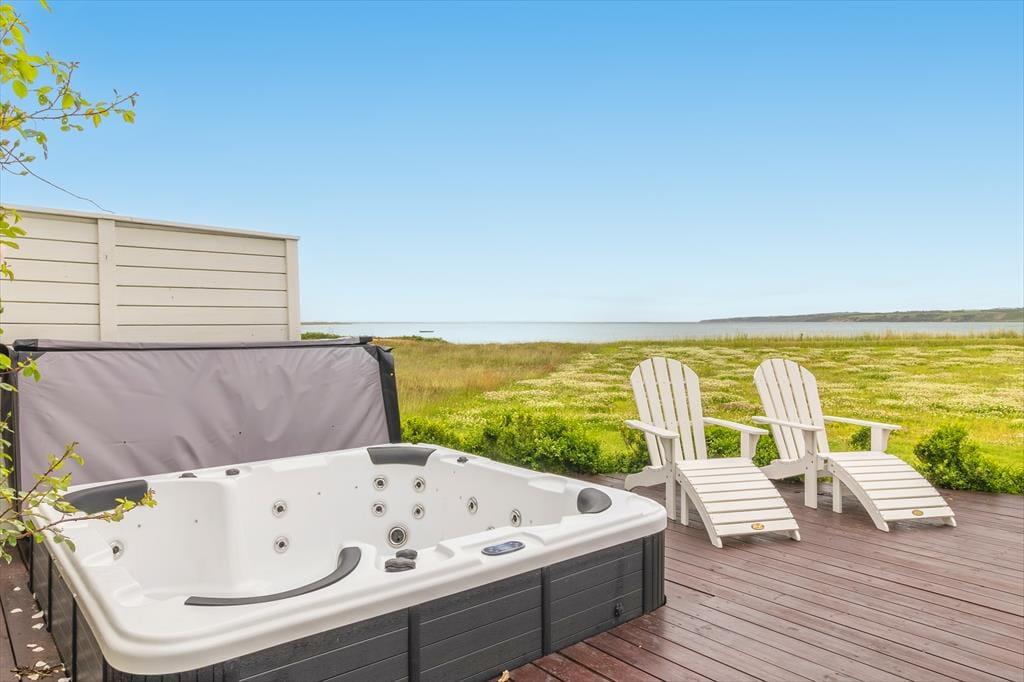 On Gjelleroddevej 56, right in the heart of the scenic Gjellerodde area, you’ll find a truly special holiday home – a real gem with direct access to the beach and a view that will take your breath away every single day. Here, you’ll enjoy not only an exceptional location just steps from the calm waters of the Limfjord, but also a charming and stylishly decorated holiday home spread over two floors. And when the sun sets over the fjord, you can enjoy the view from the outdoor spa on the terrace – with a glass of wine in hand and your feet in the warm water.