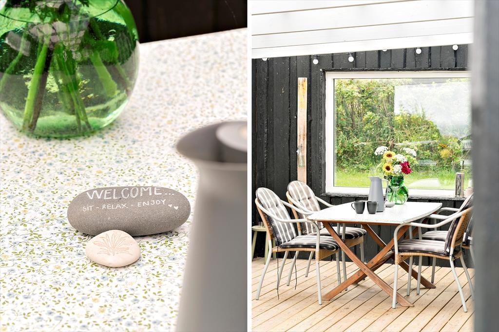 Outside, several different terrace settings invite you to enjoy life outdoors in all kinds of weather. The covered terrace offers shelter and shade on warm summer days and extends the evenings with candlelight, games, and conversation. The open terrace is ideal for sunbathing and admiring the view of the fjord, which glimmers between the trees and changes as the day goes on. Small, sheltered nooks around the house provide the perfect spot to create your own private oasis – maybe with a book, a cold drink, or simply your thoughts wandering with the rhythm of the waves. And with the beach just 100 metres away, it’s easy to start the day with a refreshing dip or let the kids build sandcastles while the sun warms your face and the holiday spirit settles in.