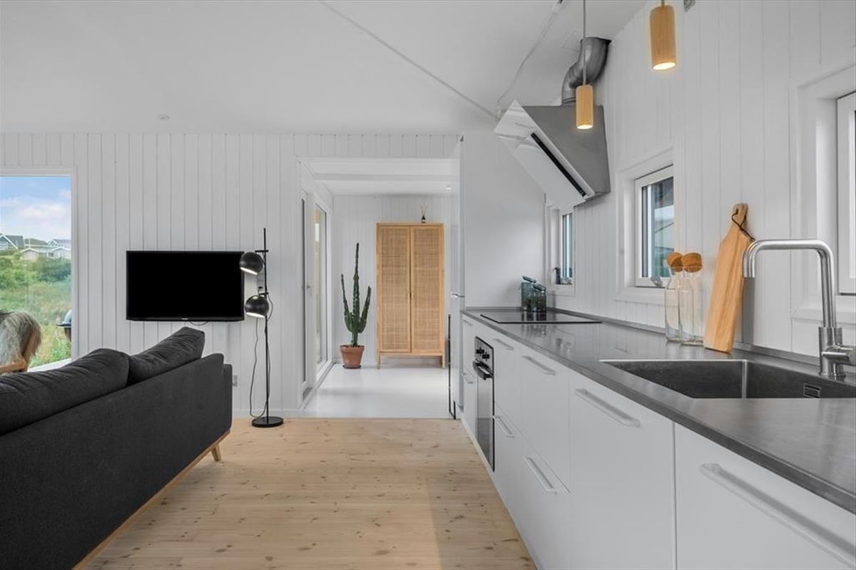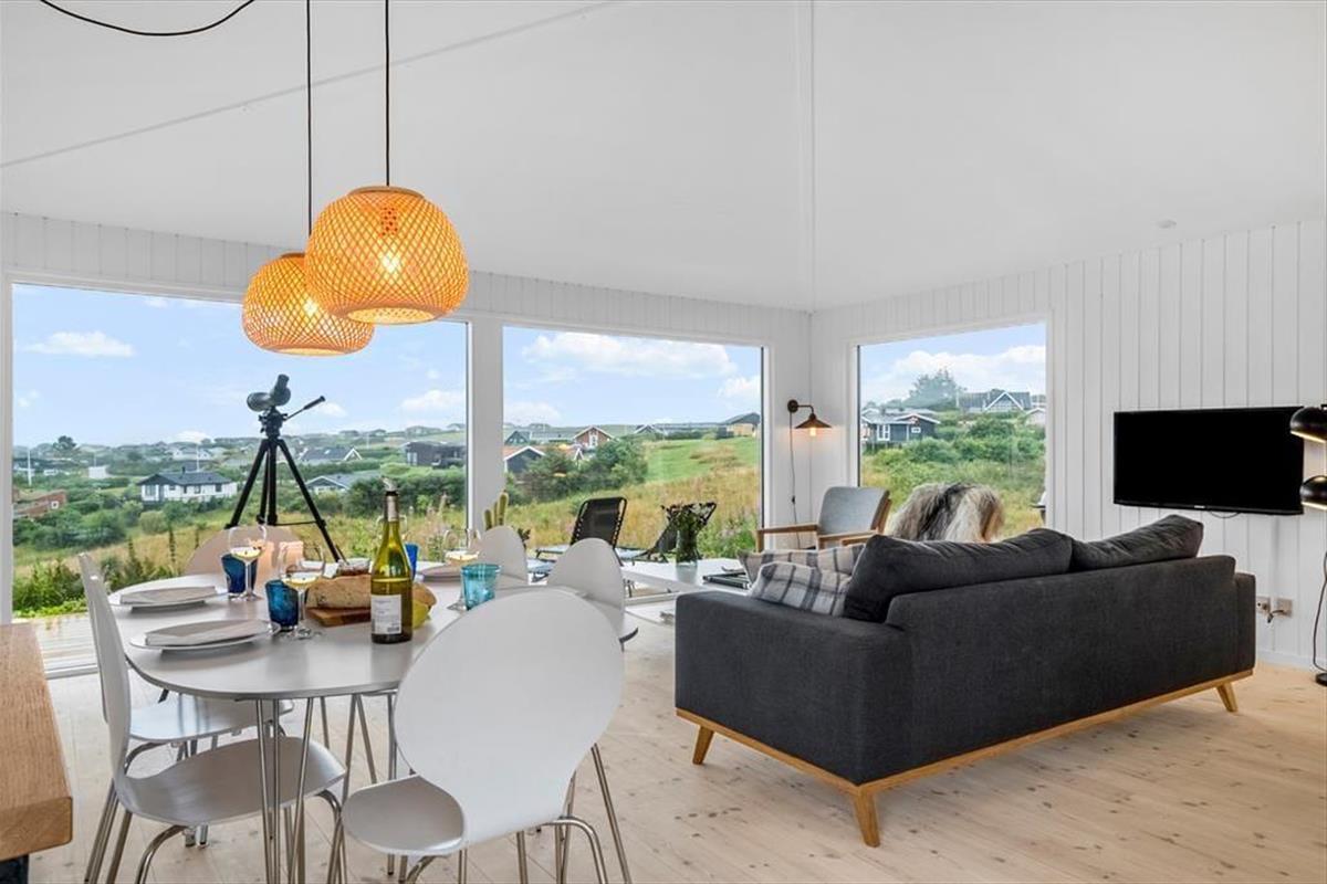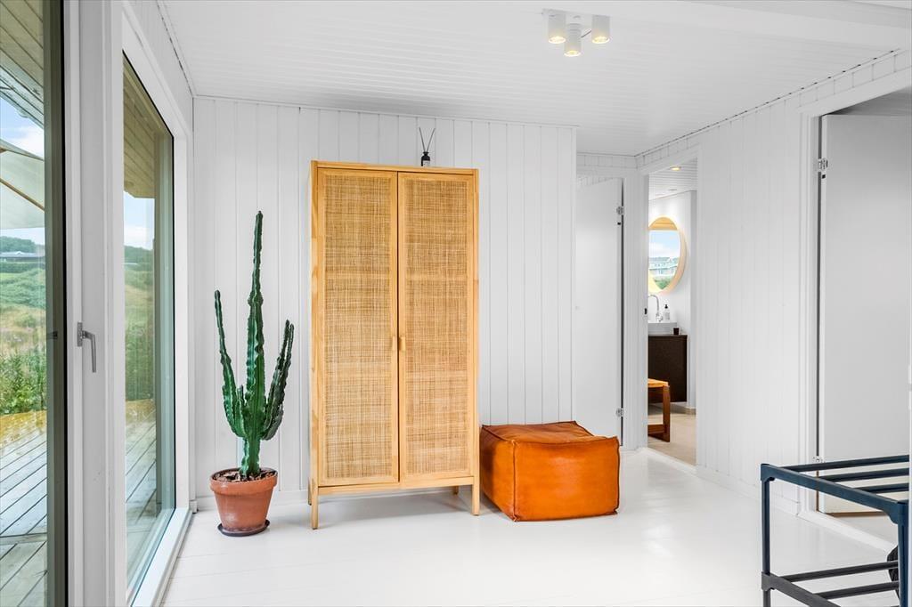 If you dream of peaceful days surrounded by beautiful nature and stunning views of the Limfjord, this newly renovated holiday home on Bellisvej 82 in the Gjellerodde area near 7620 Lemvig is an ideal choice. Not only will you find a bright and cosy retreat – you’ll also enjoy a sun-drenched terrace that wraps around the house, allowing you to soak up the sun from morning to evening while taking in the scenic views to the east, south, and west.