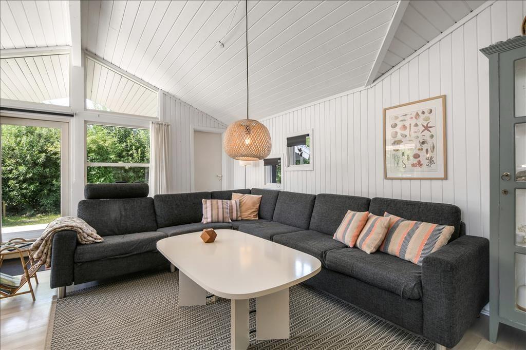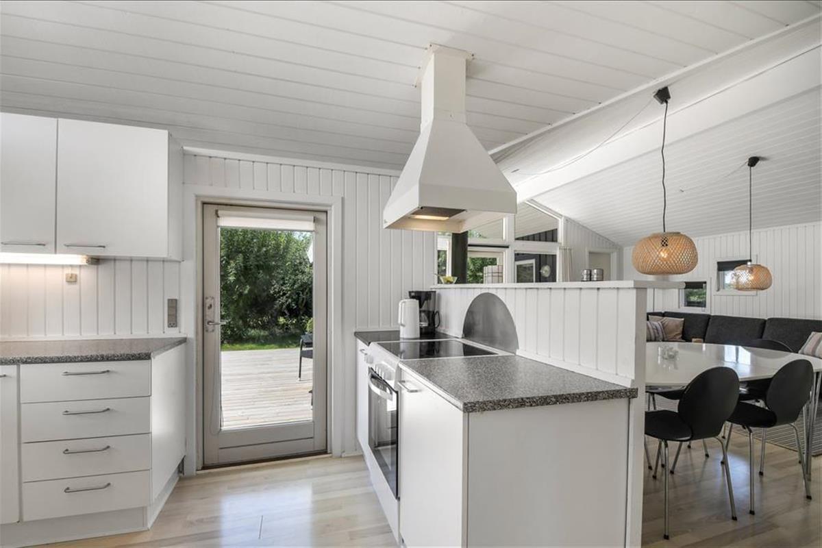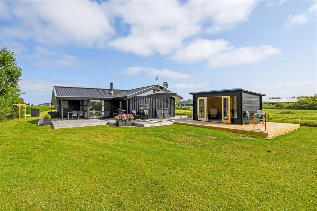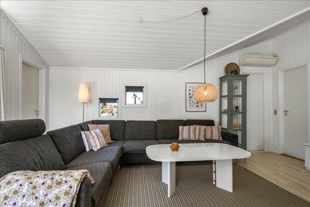 Step outside and you’ll find a lovely terrace environment where you can enjoy both sunshine and shelter – perhaps with a good book in a sun lounger as birdsong fills the background. The grounds offer plenty of space for play and ball games, and the large lawn and trampoline are sure to be a hit with the youngest family members. A charming little garden house adds extra atmosphere and might just become your favourite spot for afternoon coffee or a card game in the shade. In the evening, fire up the barbecue and gather for a delicious meal under the open sky – while the sun sets behind the fjord, casting its warm glow across the garden. Whether you're seeking peace and quiet or room for fun and games, everyone will find their own favourite holiday moment here.