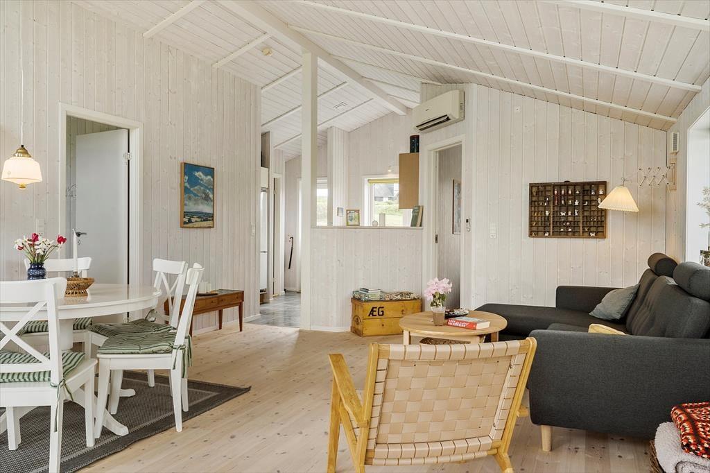 Step into the holiday home on Astersvej 2, and you’re immediately welcomed by a light and inviting atmosphere. The house is tastefully decorated with an open-plan living space that combines kitchen and lounge, making it easy to be together – whether you're cooking, playing cards, or simply relaxing on the sofa. The alcove in the living room serves as an extra cosy corner where you can steal a moment for yourself while the sunlight pours in through the windows and fills the room with peace. This is a holiday home made for both shared moments and quiet contemplation – with space for laughter, delicious meals, and slow mornings under a blanket with a cup of tea.