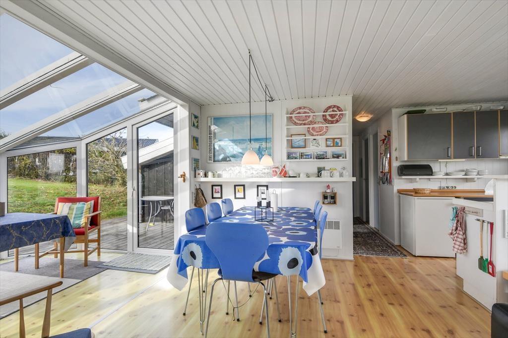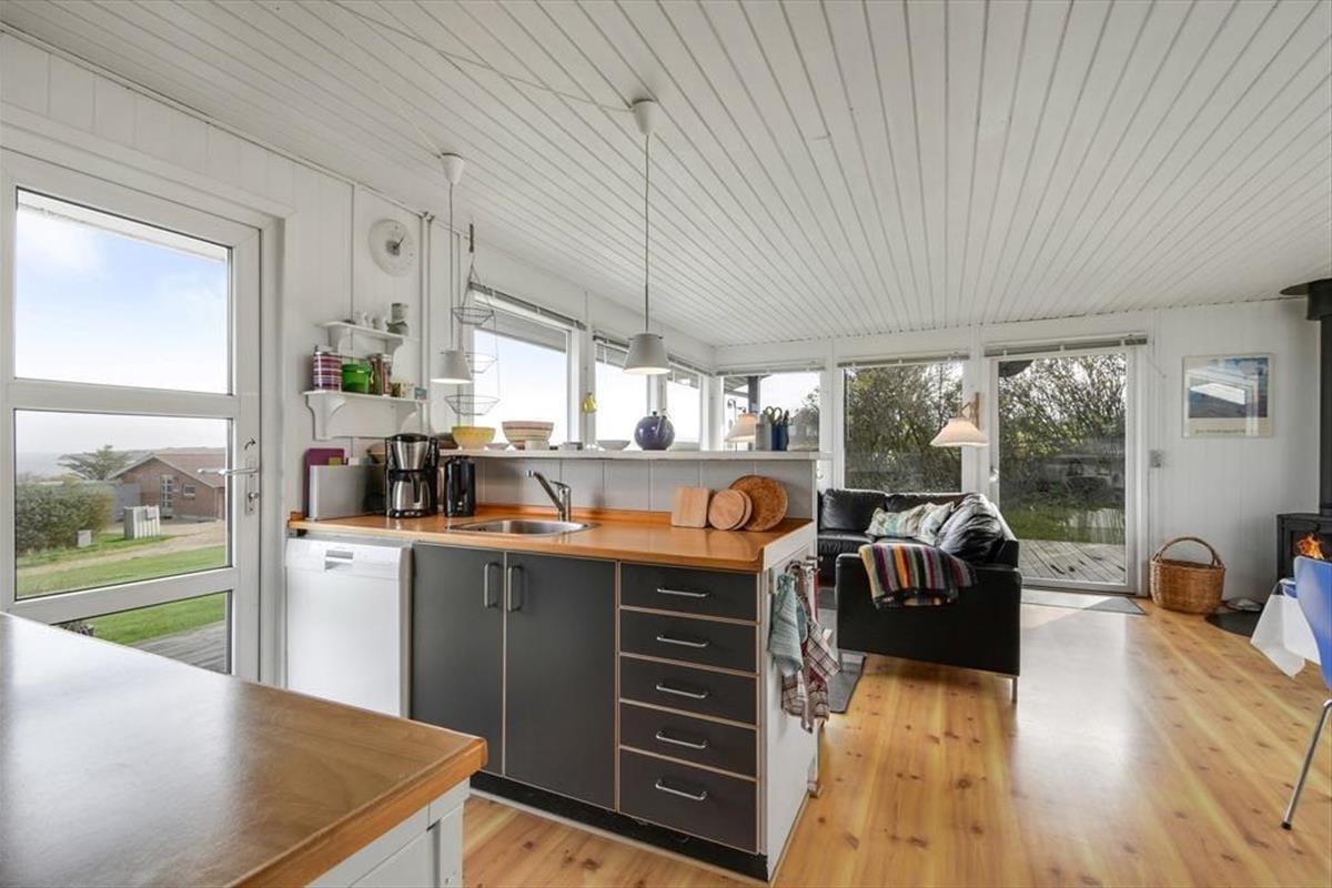 Step into the holiday home on Gyvelvej 30 and you’ll immediately feel a sense of calm. Large windows bring in the light and frame the scenic fjord views, tempting you to sit down and simply enjoy – perhaps with a warm cup of coffee in hand. The kitchen and living area are seamlessly connected, creating a natural gathering point for the day's shared moments. Here you can prepare meals together and enjoy them with panoramic views of the fjord as your backdrop. The warm and personal décor creates a cosy, homely feeling – with room for presence, laughter, and all the little moments that make a holiday special.