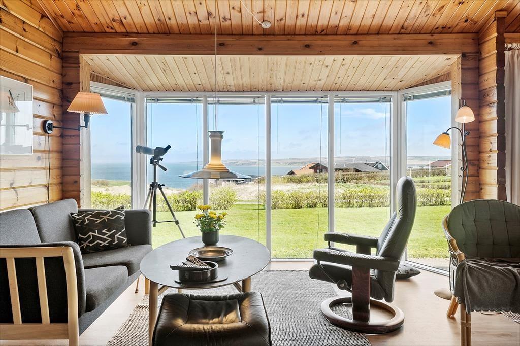 When you wake up in this charming log house on Bellisvej 56 in Gjellerodde, you're greeted by the sunrise over the Limfjord and a sense of peace that instantly makes your shoulders relax. Here, you’re invited to let your holiday unfold in a cosy and homely summer house that centres on the view, warmth and presence. Whether you're enjoying your morning coffee on the terrace or relaxing in front of the wood-burning stove, it's the ever-changing moods of nature that set the tone.