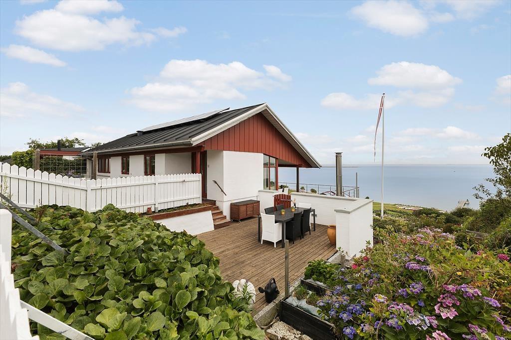 When the sun rises over the Limfjord and the morning light shimmers on the water's surface, it becomes clear why a stay at this holiday home on Syrenvej 95 is something truly special. With front-row views of the fjord and a spectacular terrace with panoramic views, you’re in for a holiday experience where nature and tranquillity take centre stage.