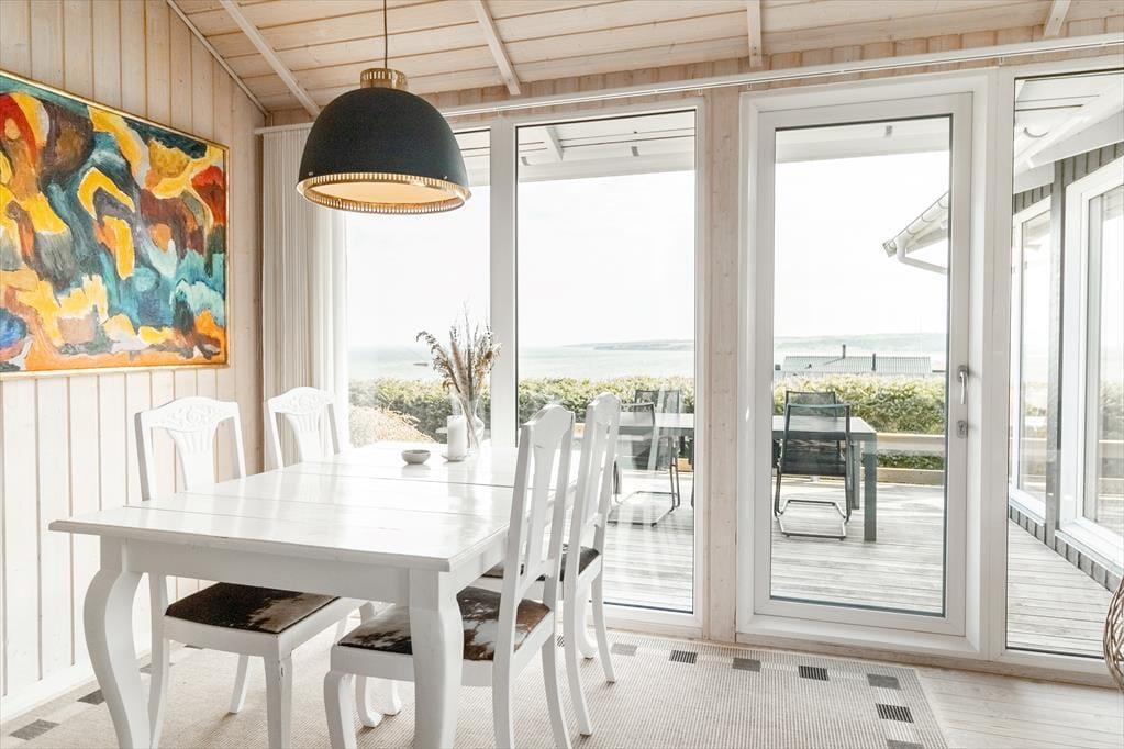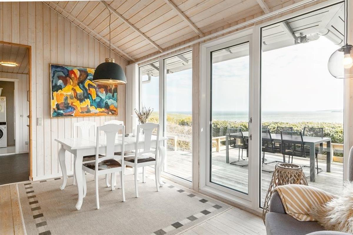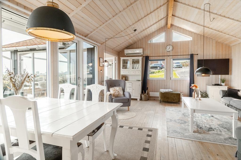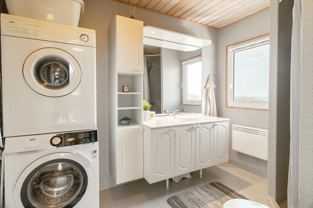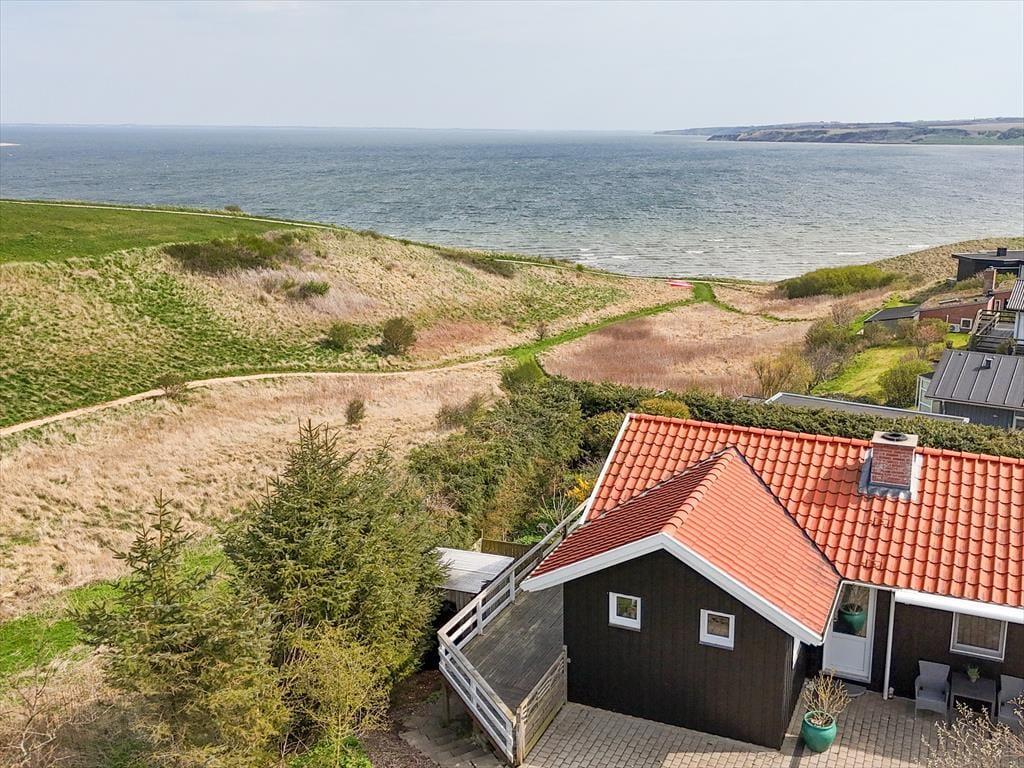 As you step into the architect-designed holiday home, the first things you notice are the light – and the silence. The house has been carefully renovated with respect for the original architecture and exudes consistent quality. Large panoramic windows face the Limfjord, allowing both daylight and the captivating landscape to fill the living room. It’s clear that every detail has been considered: From the open and inviting living area, where the wood-burning stove crackles warmly on cool evenings, to the two bedrooms and the charming annex – all with double beds and a sense of privacy and comfort. In the master bedroom, you’re treated to a breathtaking view – the perfect place to wake slowly and let your eyes rest on the shimmering surface of the fjord. The brand-new kitchen is openly connected to the living room, creating a natural setting for togetherness, cooking, and board games, while the heat pump ensures the perfect temperature at all times. The bathroom includes everything you need, including a convenient washer-dryer combo – making everyday life easy, even on holiday.