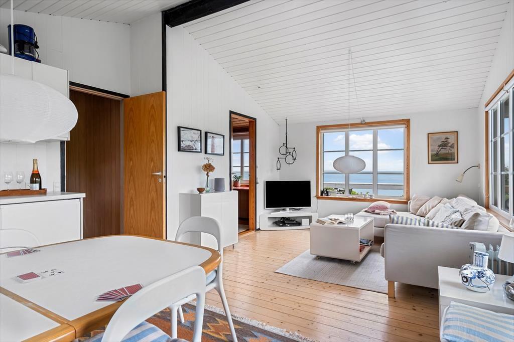 You are in for a truly special holiday experience when you stay at this charming holiday home on Violvej 98 in Gjellerodde. The location is outstanding – you’re just 60 metres from the calm waters of the Limfjord, with beautiful views of both the fjord and the gently undulating landscape. The house itself is a delightful wooden cabin with fine details and a warm, welcoming atmosphere that invites you to slow down, be present, and enjoy uninterrupted time together.