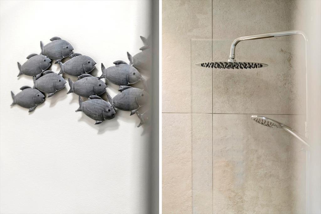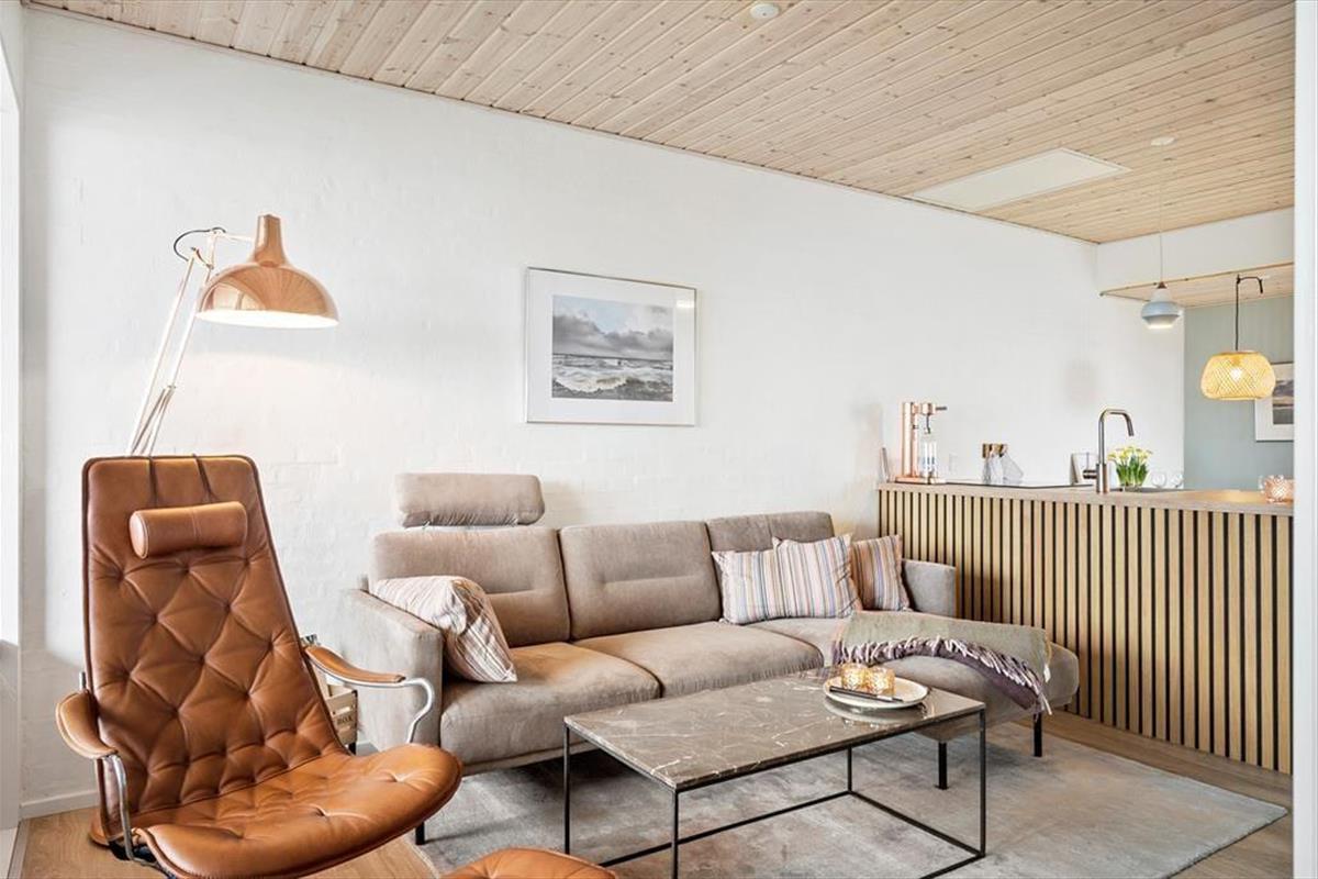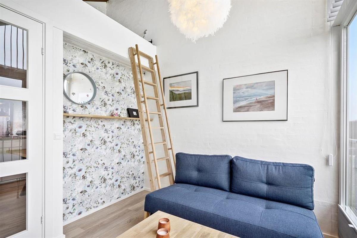 This bright and modern holiday apartment welcomes you with an interior that is both stylish and relaxed. The living space brings together kitchen and lounge in one, creating a lovely spot to gather, enjoy meals, and take in the view through the large windows. From the main room, there is access to a cosy mezzanine that both children and adults will appreciate – the perfect place for relaxation, play, or simply a little retreat from everyday life. The interior is kept in light tones and modern materials that enhance the feeling of ease and vacation comfort. Whether you're a couple or a small family looking for quality time in peaceful and comfortable surroundings, this apartment provides the perfect setting.