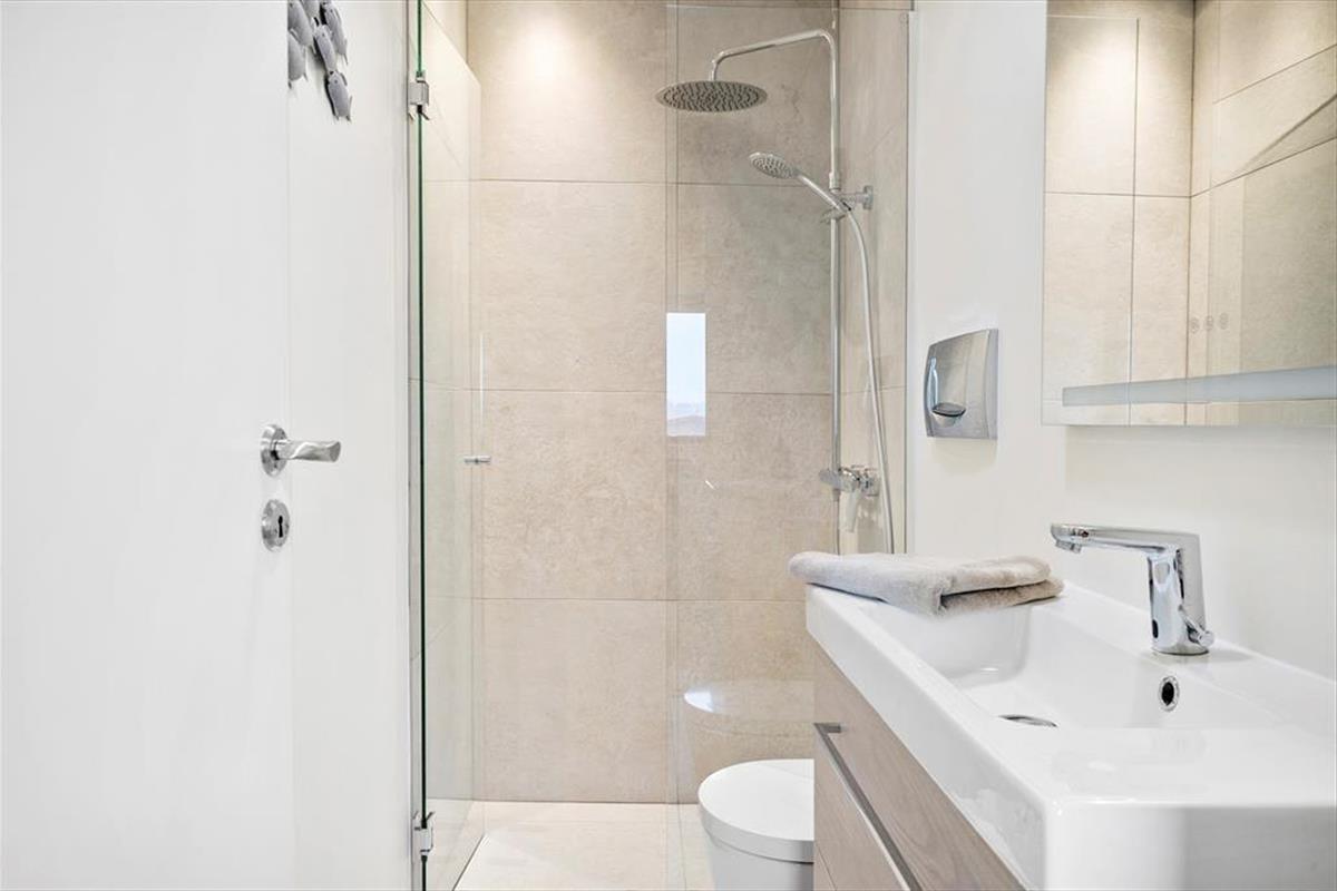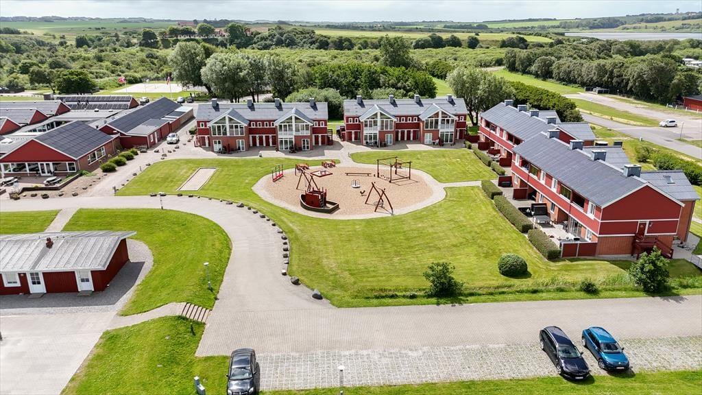 When the sun shines over Gjellerodde, life naturally moves outdoors – and from the apartment's balcony, you can enjoy an enchanting view over the fjord and the surrounding landscape. Start your day with a cup of coffee in the morning sun or wind down with a glass of wine as the sun sets over the water. The apartment is located in an area with large green communal areas that are freely available to guests. There you’ll find a large bouncy cushion and a playground – so the kids certainly won’t be bored. And as an added luxury, you’ll have free access to the local water park, which features an adult pool, children’s pool, spa, and sauna – all ready to pamper you. With both relaxation and fun just outside the door, you're set for many delightful hours in the open air.