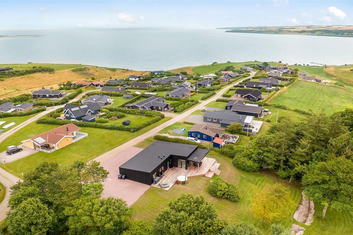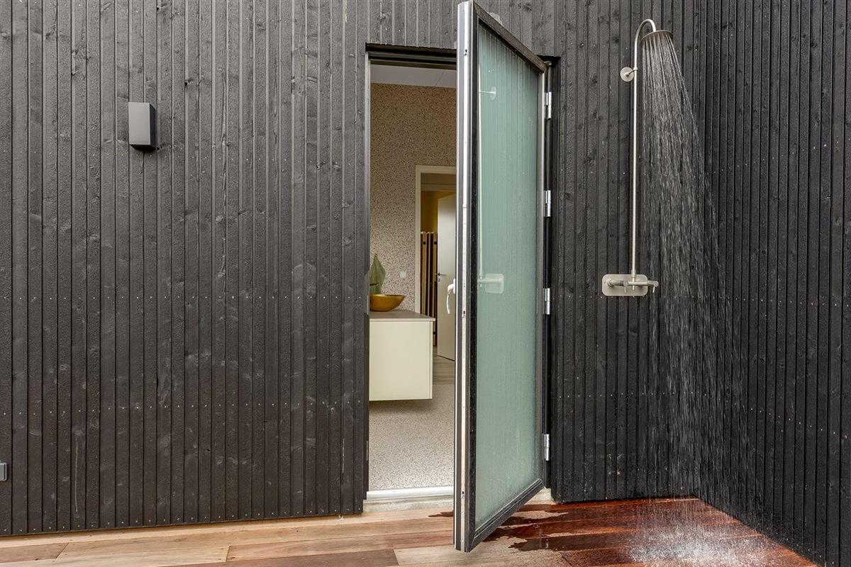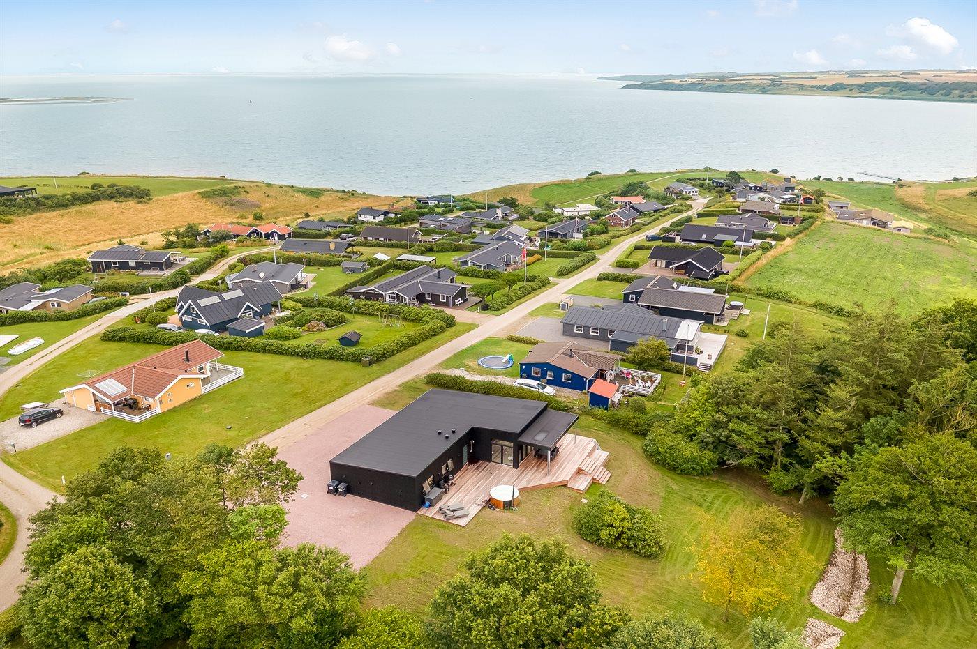 De vakantiewoning is gelegen op een 2965 m² groot natuural grond. Afstand tot de fjord 300 m. Dichtstbijzijnde winkel 5000 m. Er is een golfbaan op een afstand van 4000 m. Bij de vakantiewoning hoort terras. Daarnaast is er een overdekt terras. Afstand tot speelplaats 500 m. Buitendouche. Het huis heeft een stopcontact voor het opladen van een elektrische auto. Parkeerplaats bij het huis.
