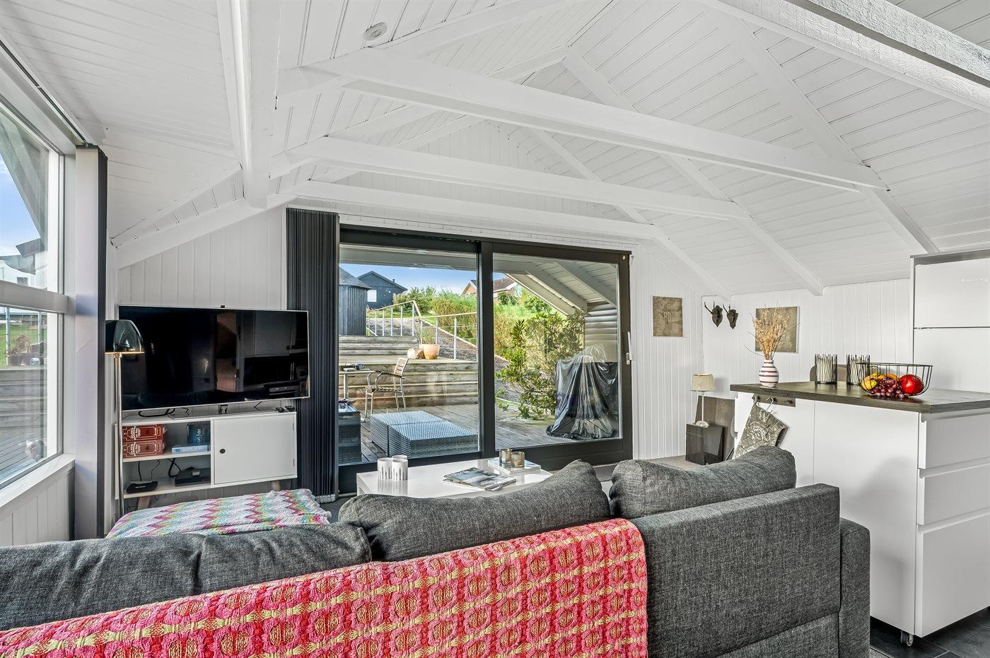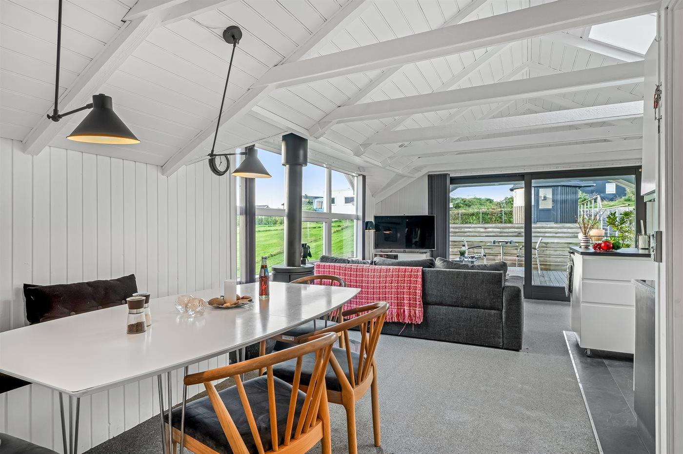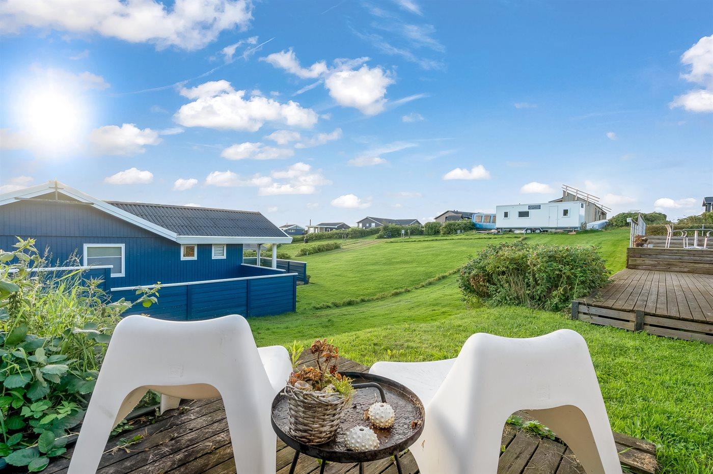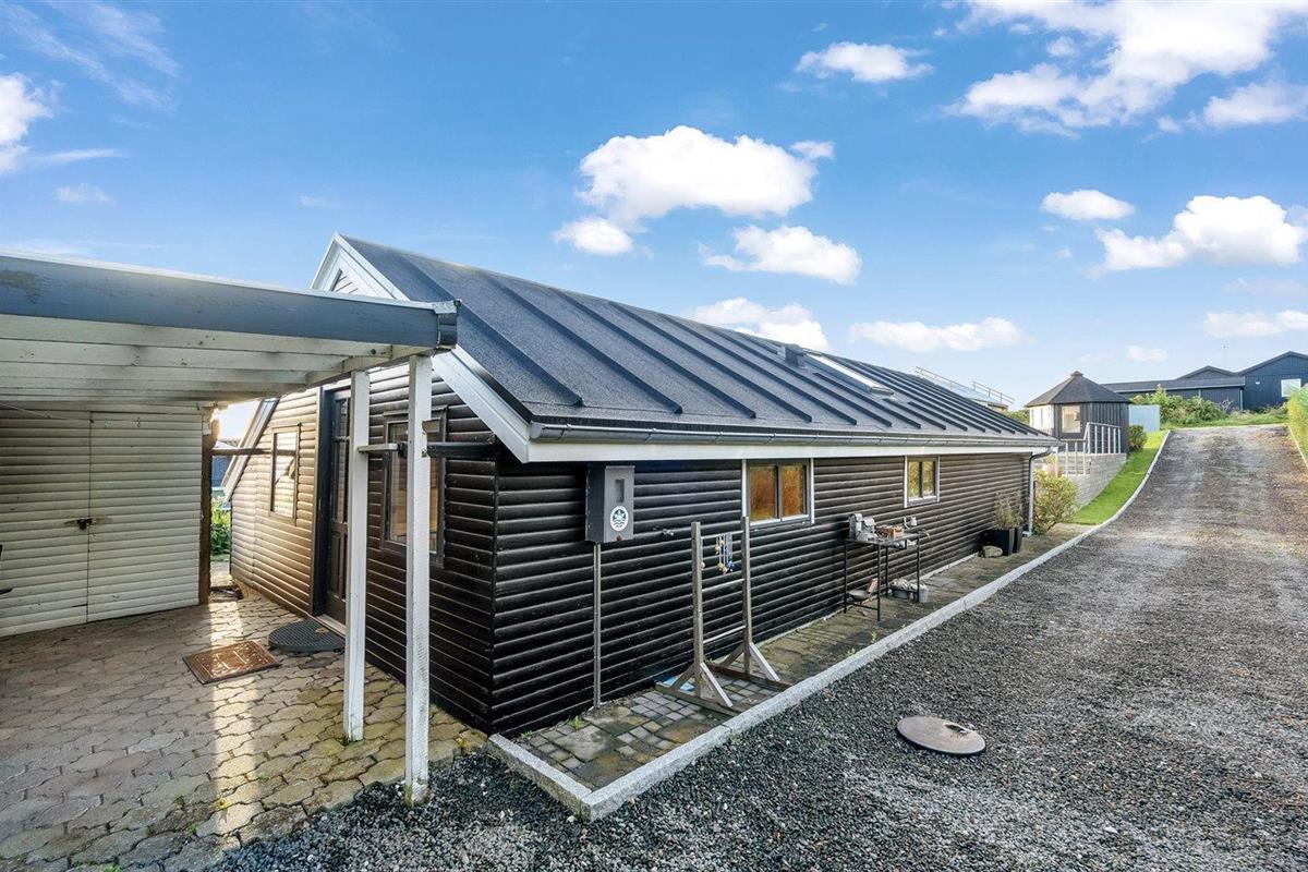 De vakantiewoning is gelegen op een 830 m² groot natuural grond. Afstand tot de fjord 250 m. Dichtstbijzijnde winkel 250 m. Bij de vakantiewoning hoort 50 m² terras. Daarnaast is er een 8 m² groot overdekt terras. Gereedschapsruimte. Parkeerplaats bij het huis.
