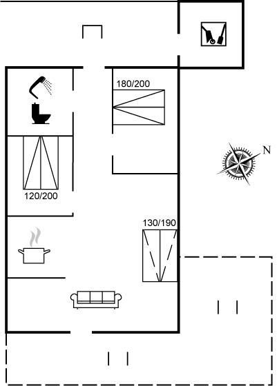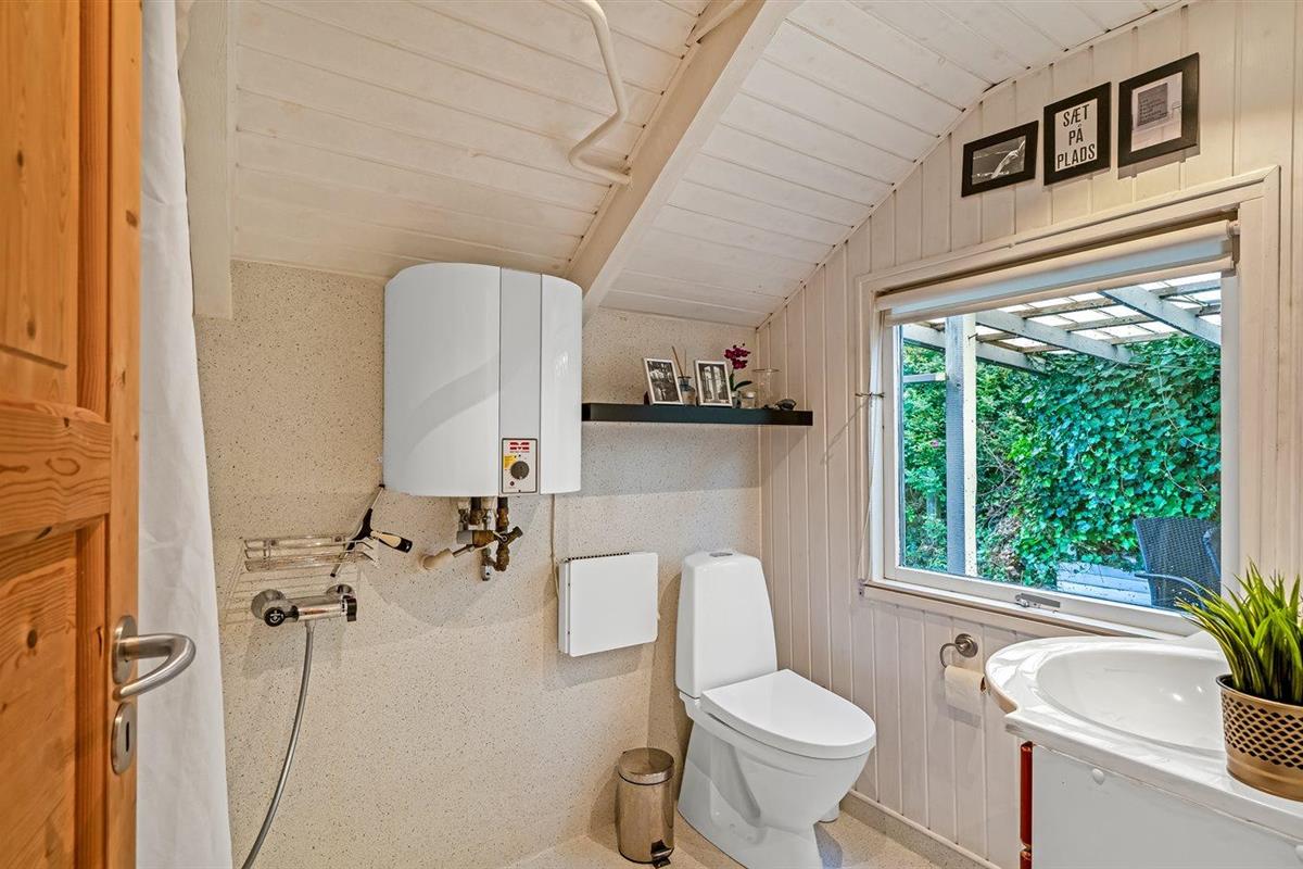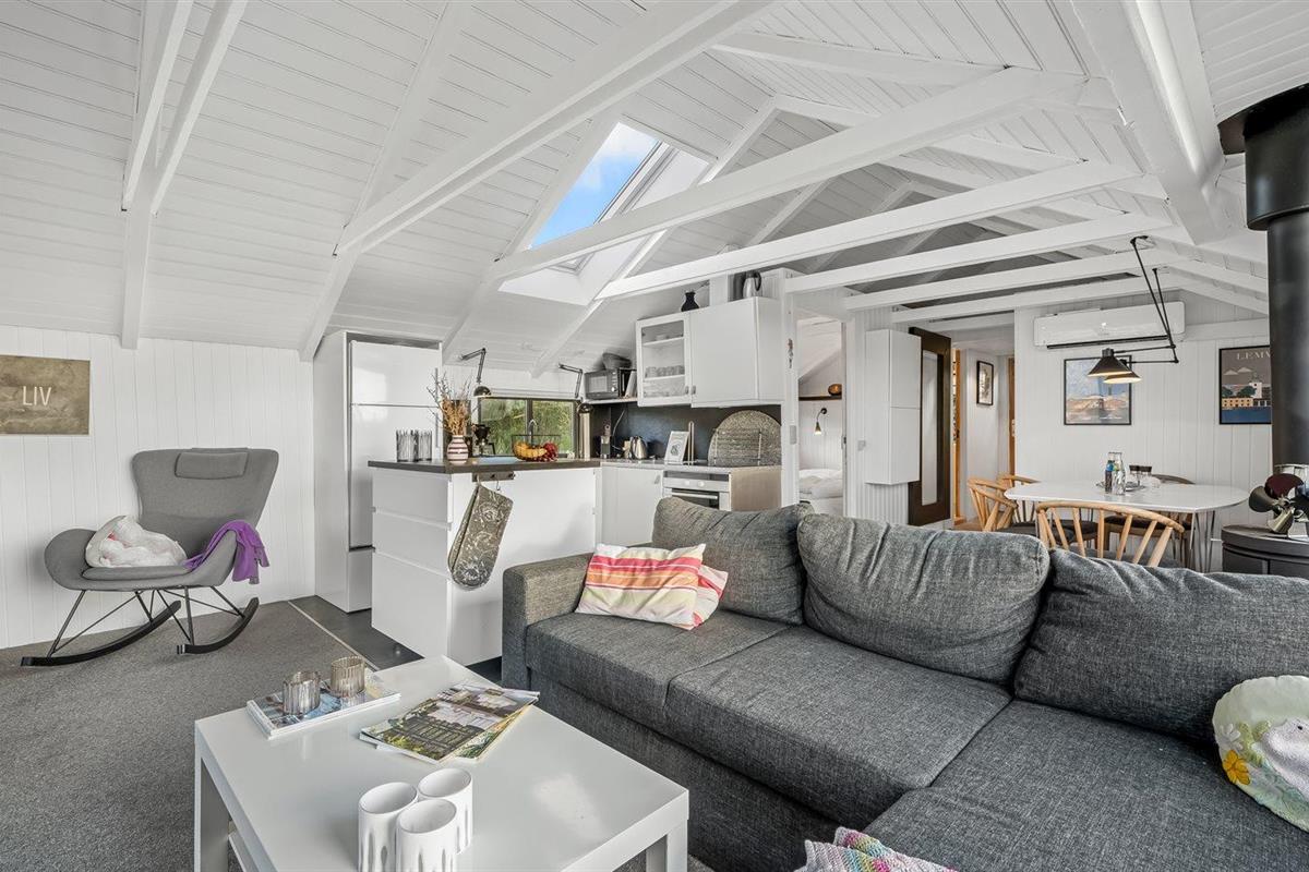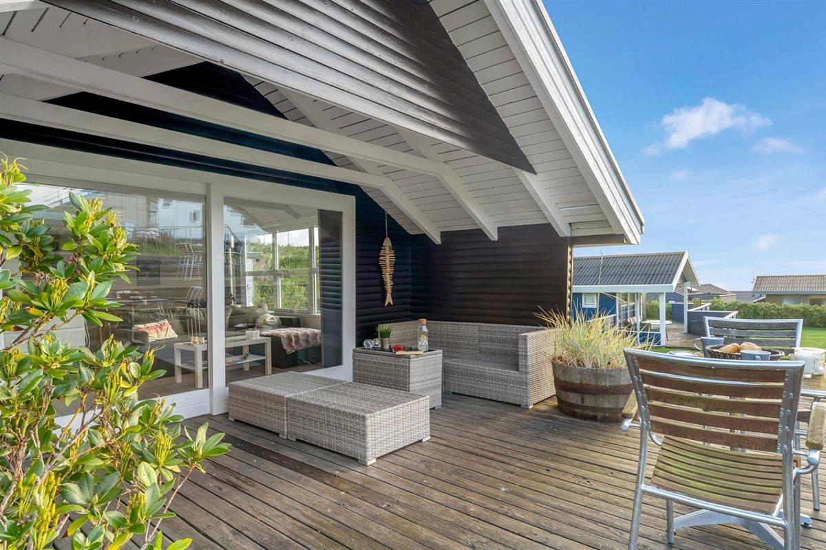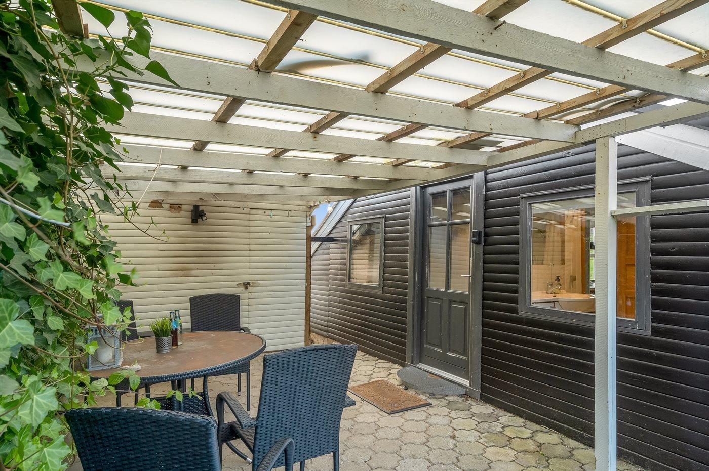 De vakantiewoning is gelegen op een 830 m² groot natuural grond. Afstand tot de fjord 250 m. Dichtstbijzijnde winkel 250 m. Bij de vakantiewoning hoort 50 m² terras. Daarnaast is er een 8 m² groot overdekt terras. Gereedschapsruimte. Parkeerplaats bij het huis.