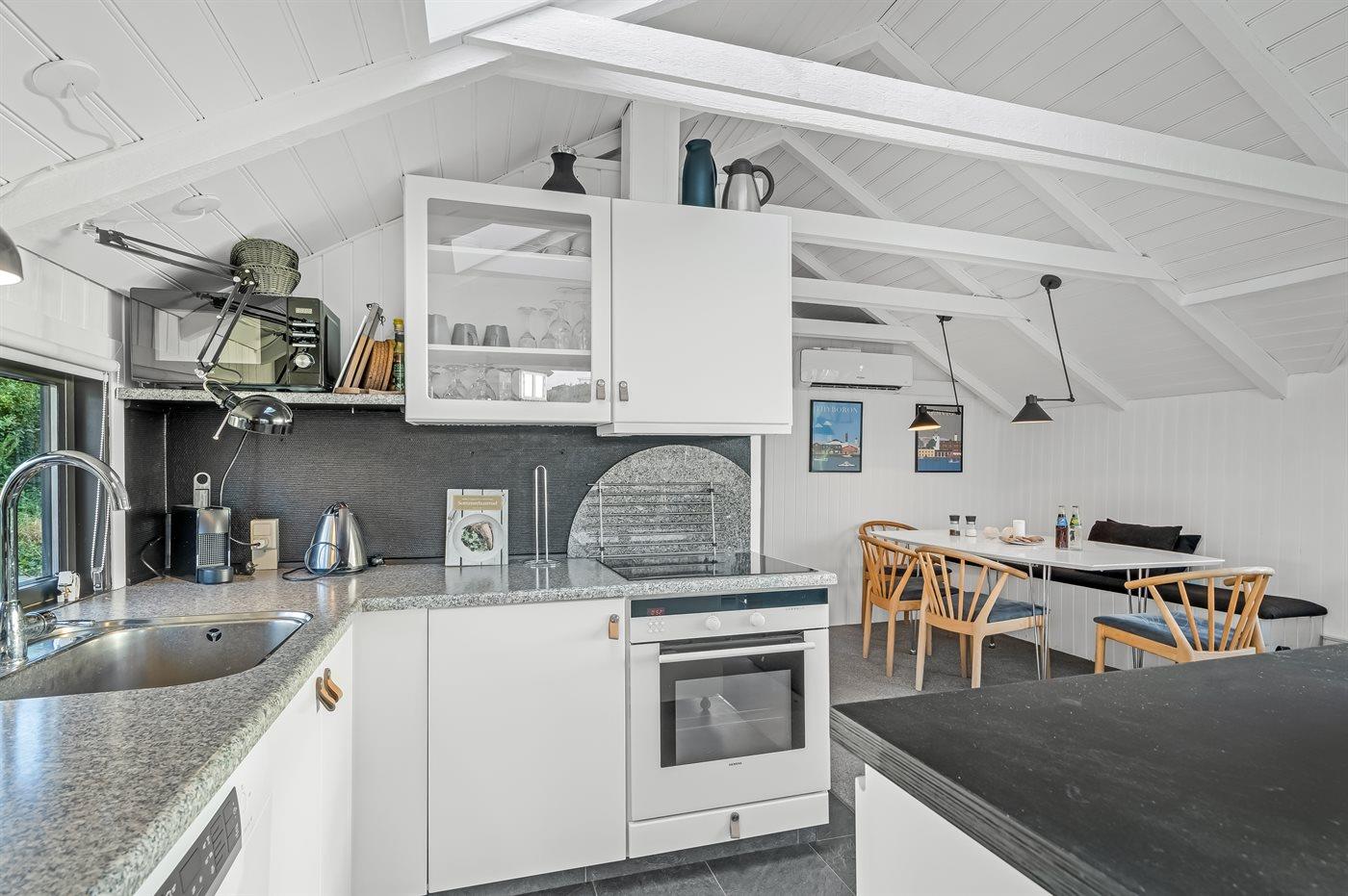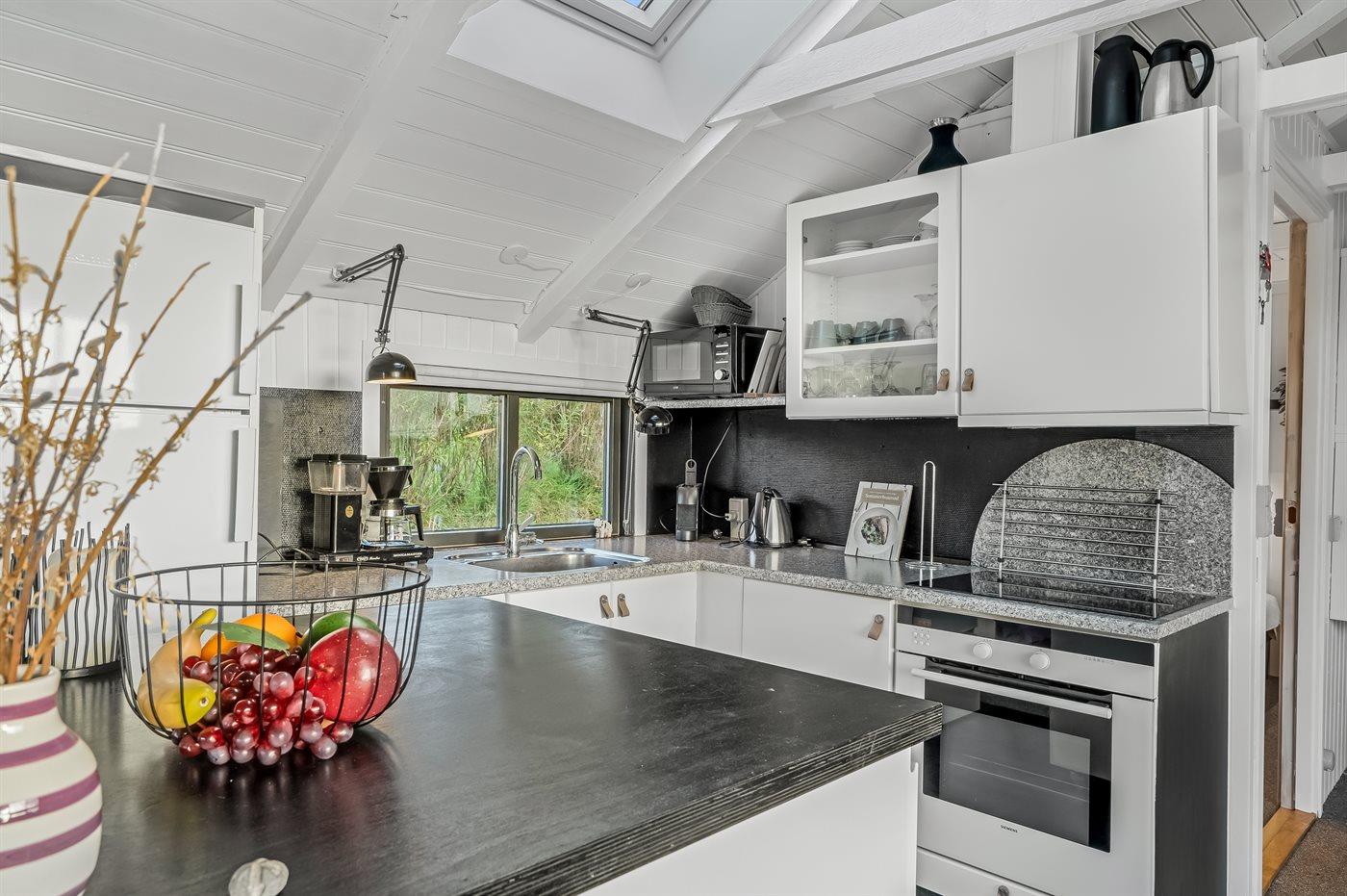 De keuken is uitgerust met koelkast Er is 4 inductiekookplaten, heteluchtoven, magnetron en vaatwasser.