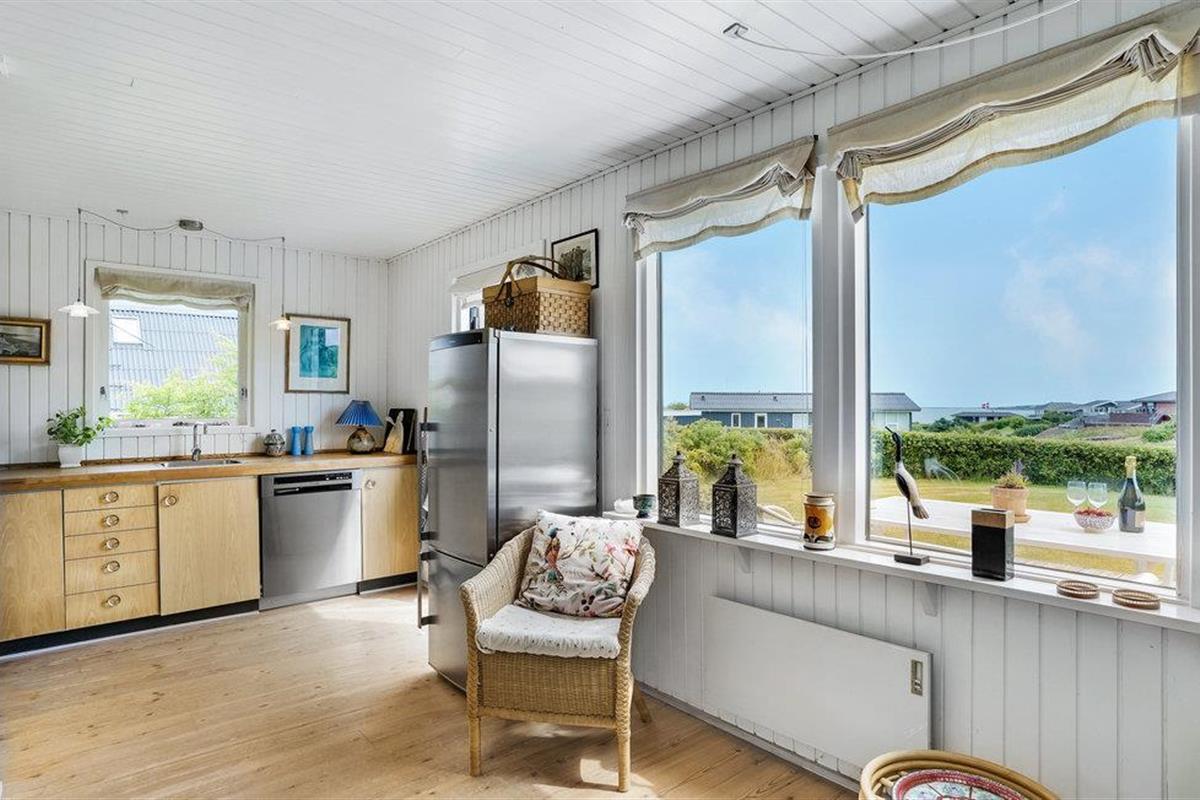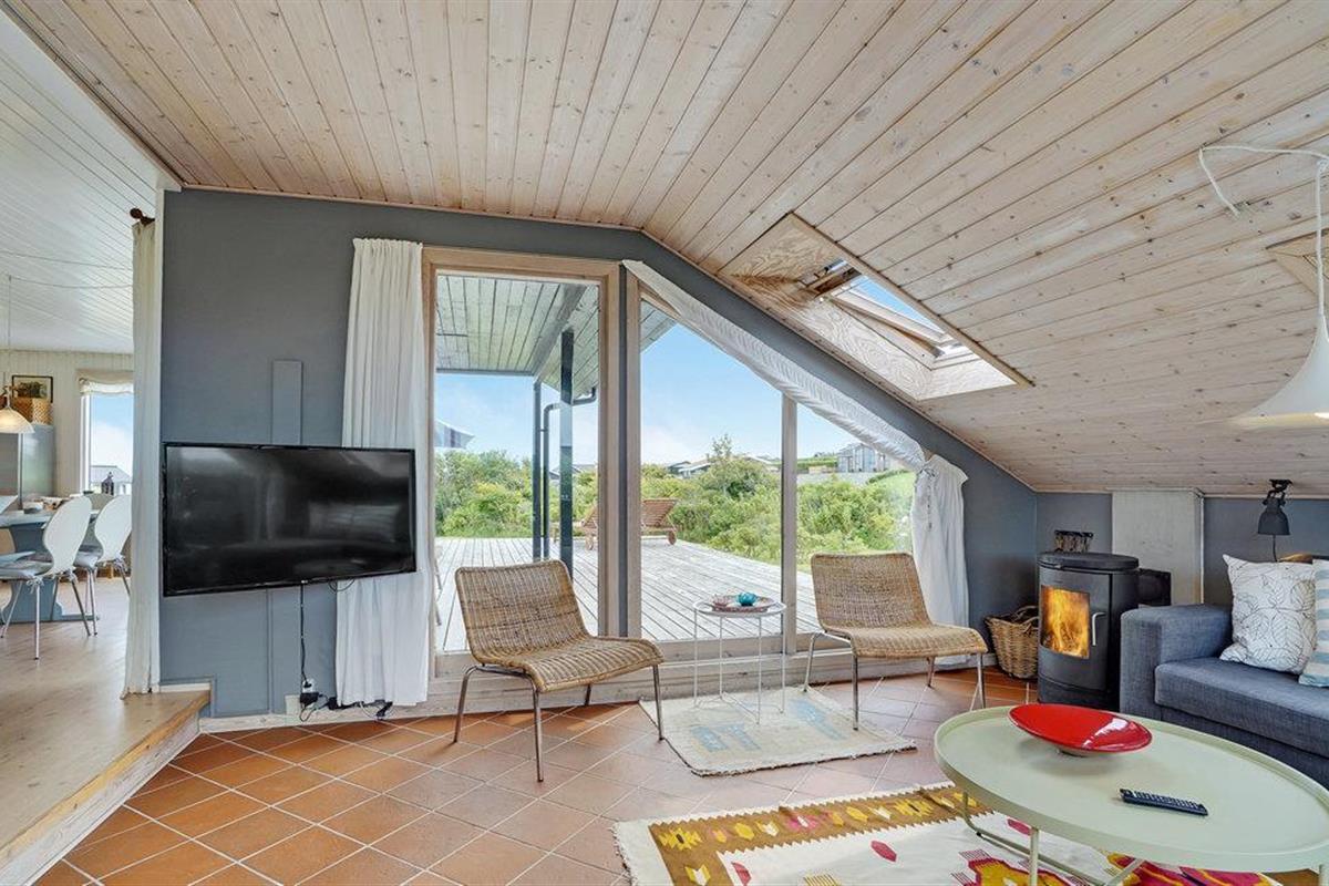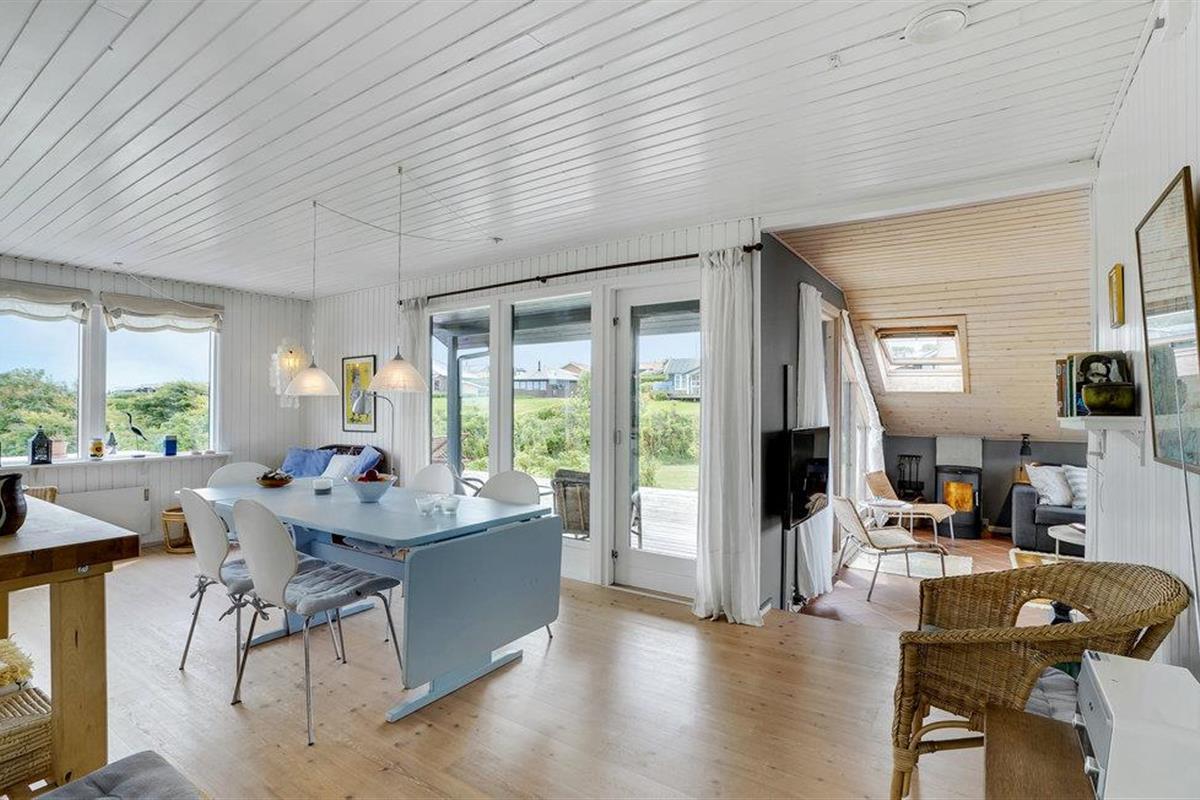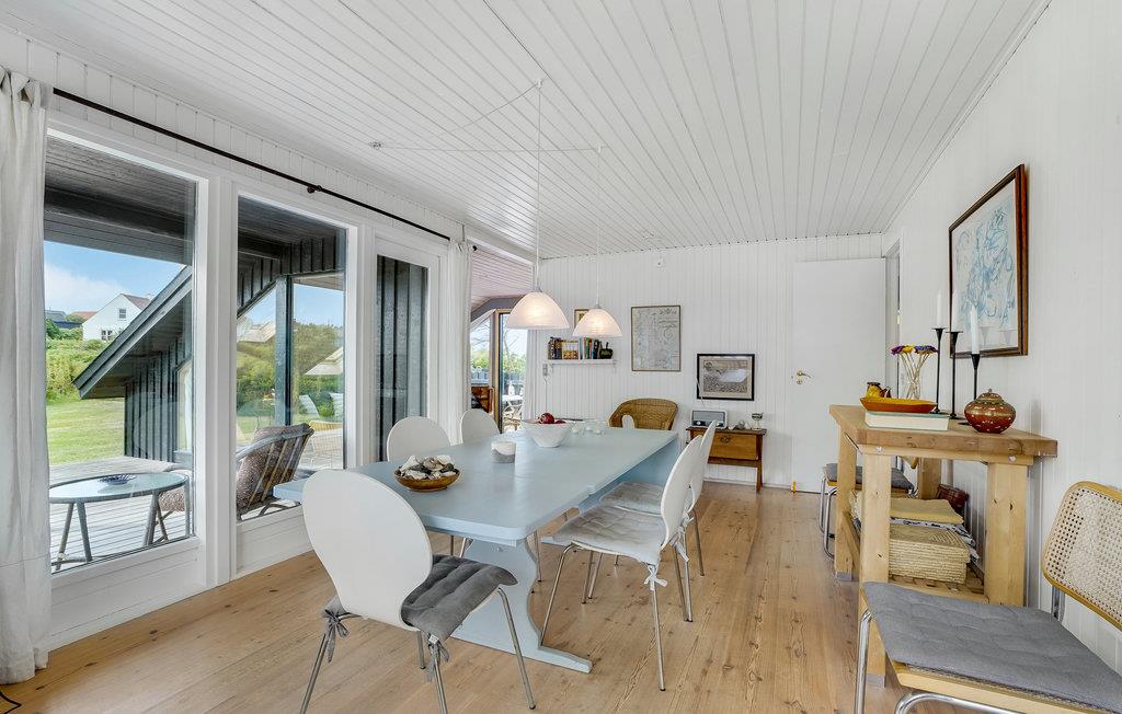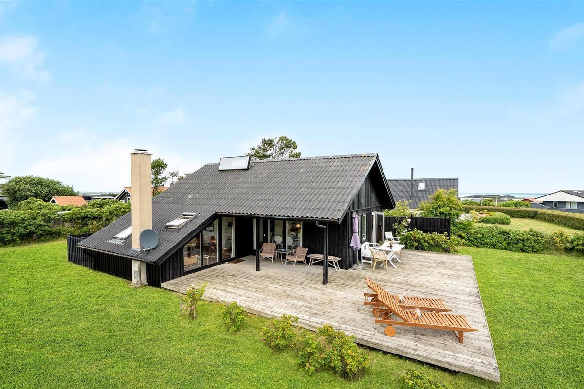 Dit hoge vakantiehuis met een goed uitzicht ligt in Gjeller Odde, een gezinsvriendelijk gebied met goede zwemmogelijkheden aan het einde van de Nissum Bredning, een zijtak van de Limfjord. Het huis is erg gezellig en heeft naast de eetkamer met open verbinding naar de keuken ook een mooie tv-kamer met open haard. Er zijn twee slaapkamers in het huis, die verbonden zijn met de badkamer. Vanaf de grote terrassen rondom het huis heeft u op verschillende plaatsen een prachtig uitzicht op de baai en de Limfjord.