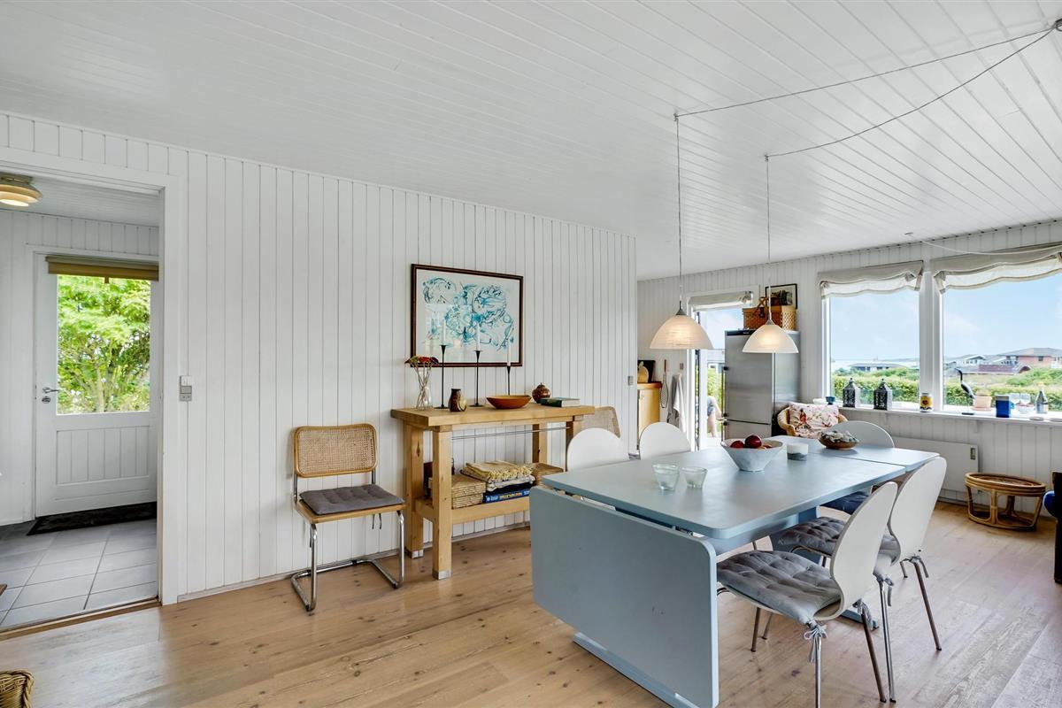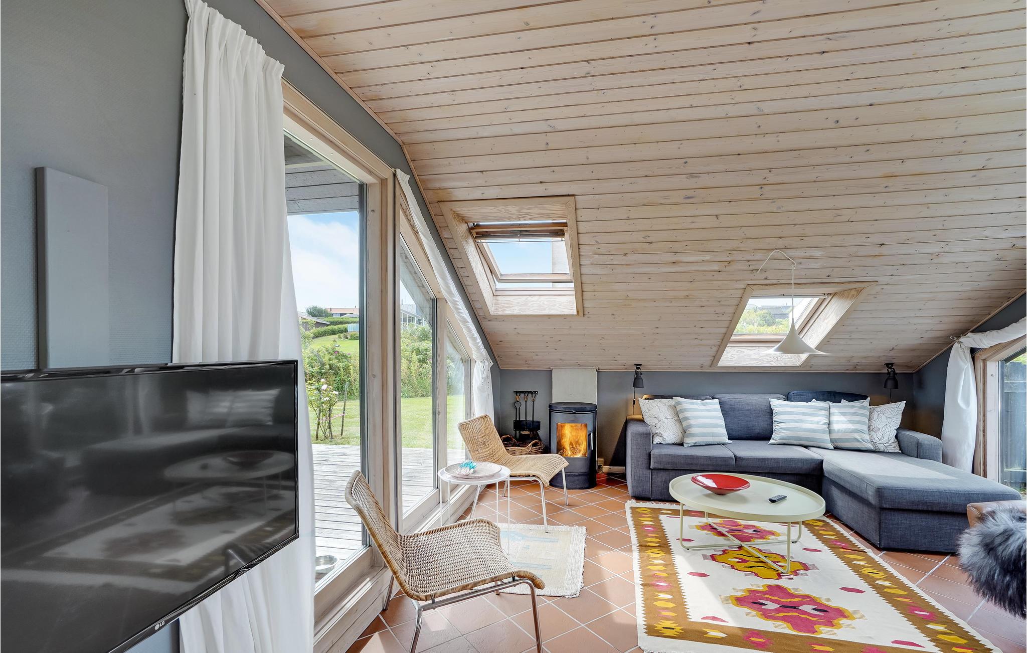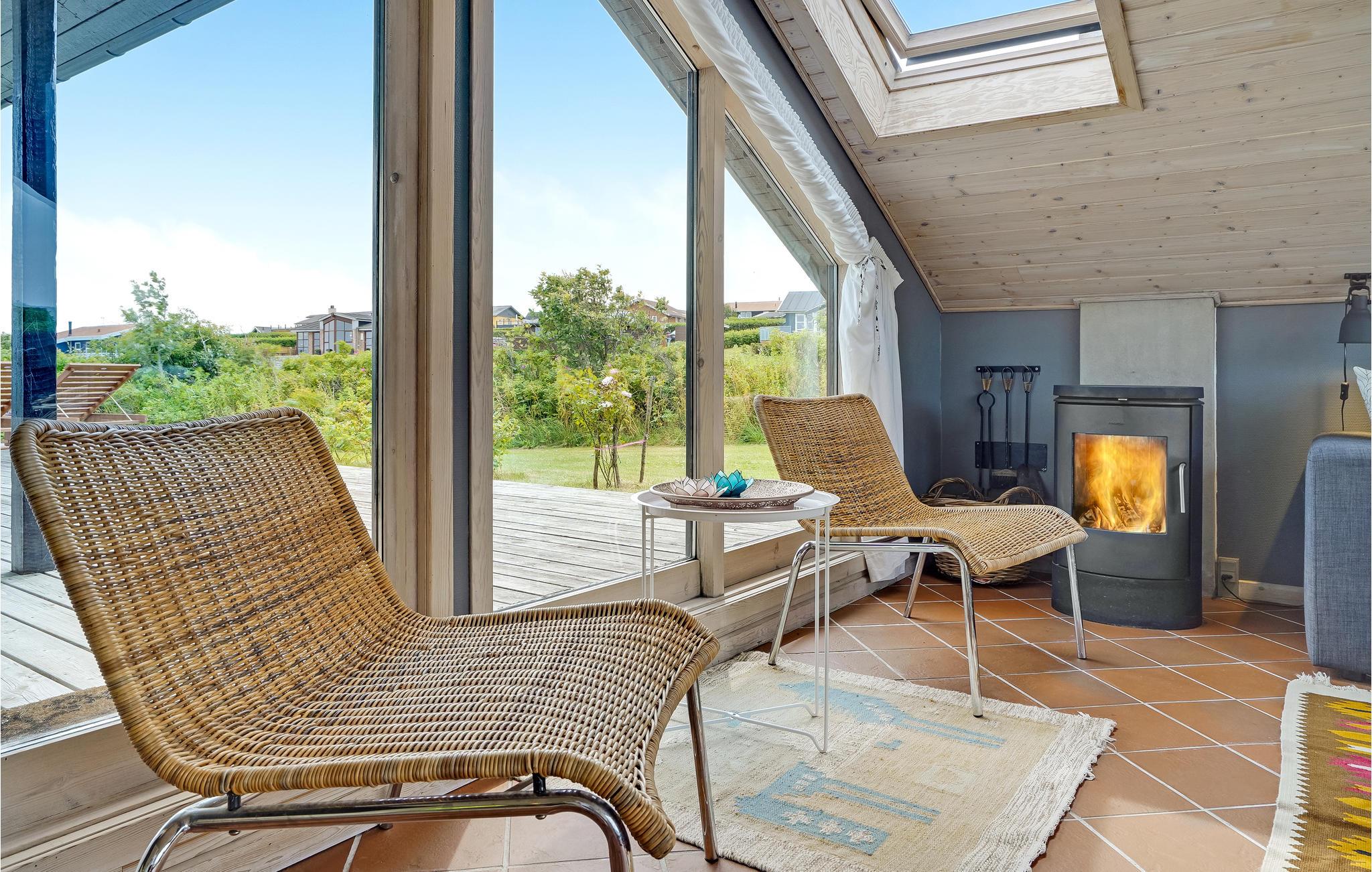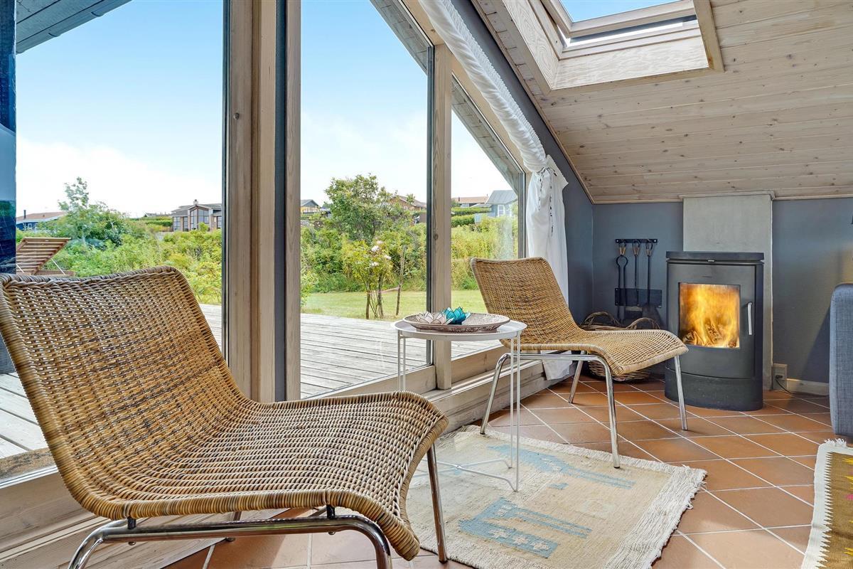 Dit hoge vakantiehuis met een goed uitzicht ligt in Gjeller Odde, een gezinsvriendelijk gebied met goede zwemmogelijkheden aan het einde van de Nissum Bredning, een zijtak van de Limfjord. Het huis is erg gezellig en heeft naast de eetkamer met open verbinding naar de keuken ook een mooie tv-kamer met open haard. Er zijn twee slaapkamers in het huis, die verbonden zijn met de badkamer. Vanaf de grote terrassen rondom het huis heeft u op verschillende plaatsen een prachtig uitzicht op de baai en de Limfjord.