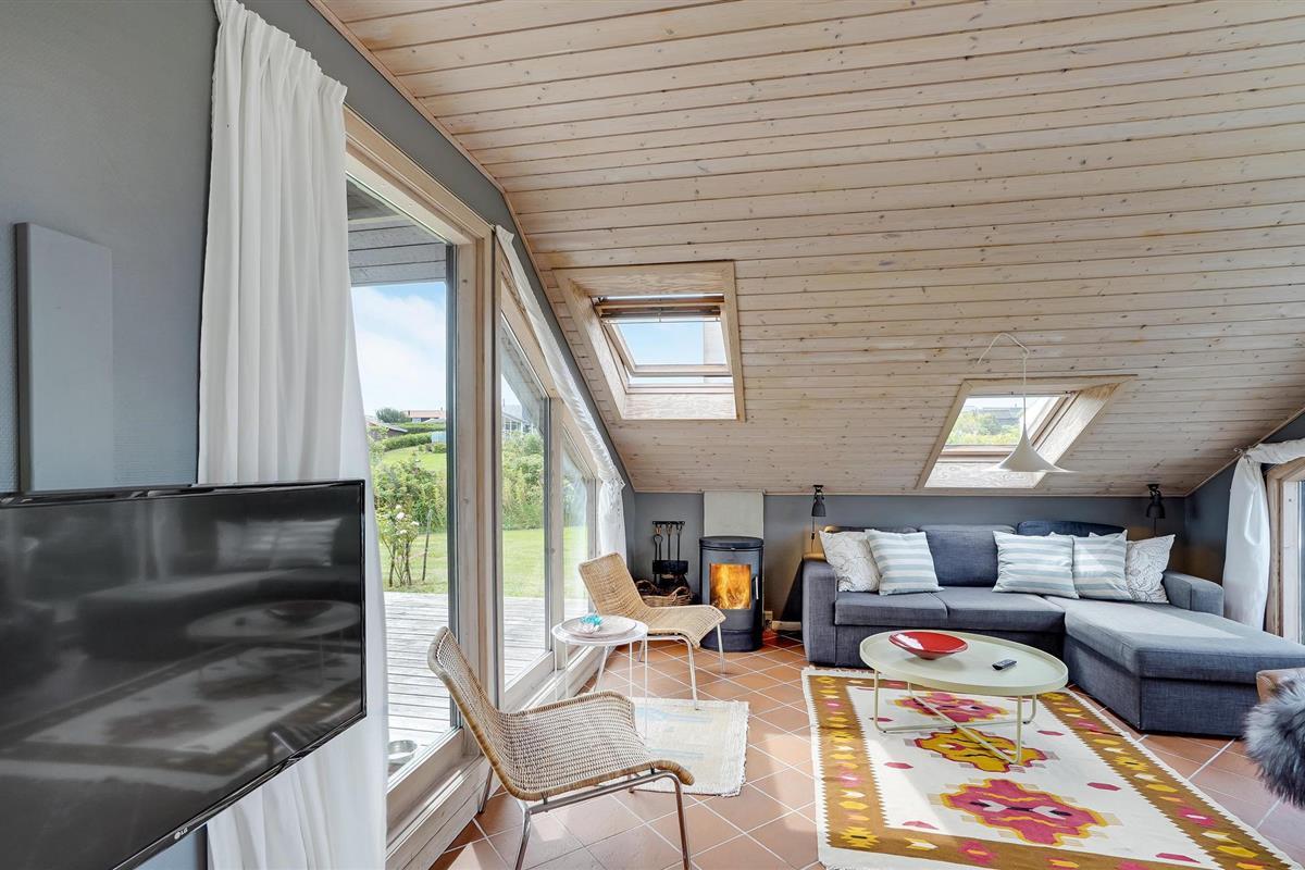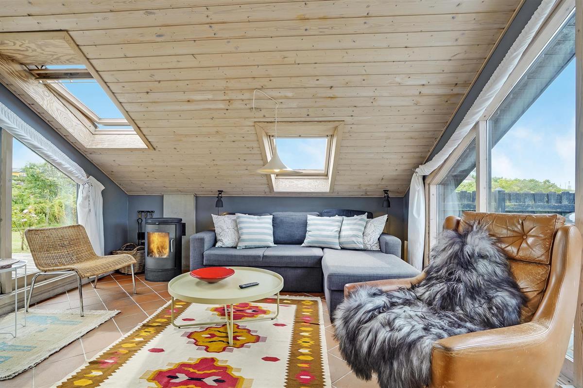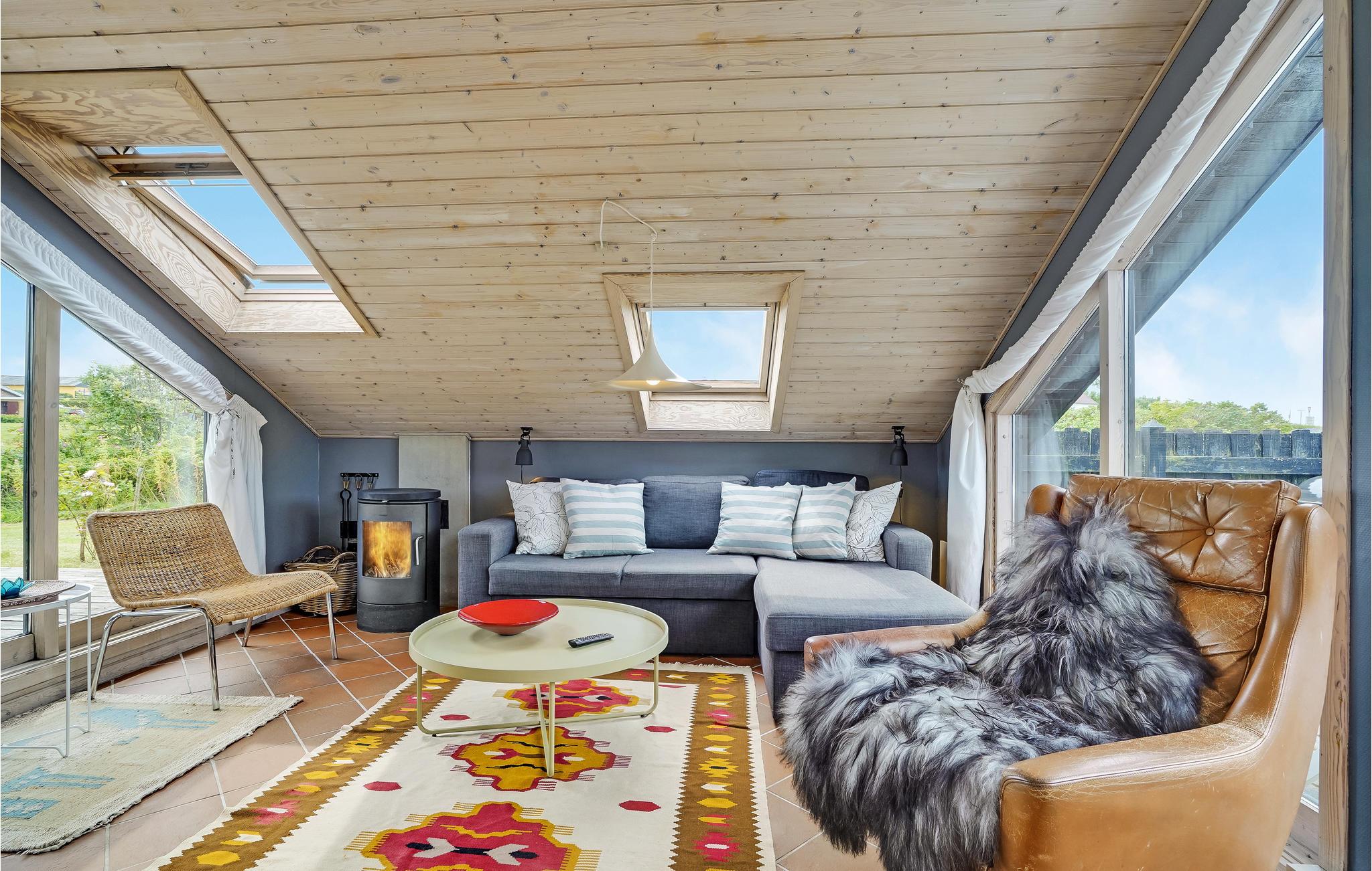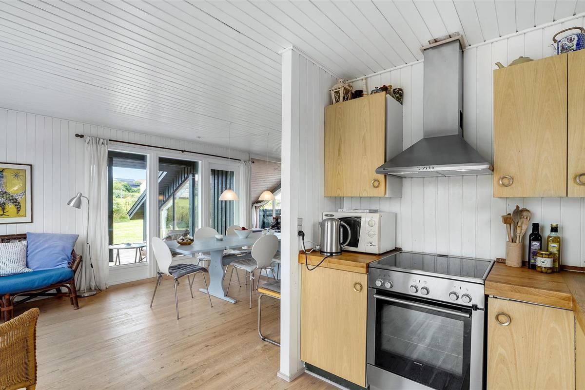 Dit hoge vakantiehuis met een goed uitzicht ligt in Gjeller Odde, een gezinsvriendelijk gebied met goede zwemmogelijkheden aan het einde van de Nissum Bredning, een zijtak van de Limfjord. Het huis is erg gezellig en heeft naast de eetkamer met open verbinding naar de keuken ook een mooie tv-kamer met open haard. Er zijn twee slaapkamers in het huis, die verbonden zijn met de badkamer. Vanaf de grote terrassen rondom het huis heeft u op verschillende plaatsen een prachtig uitzicht op de baai en de Limfjord.