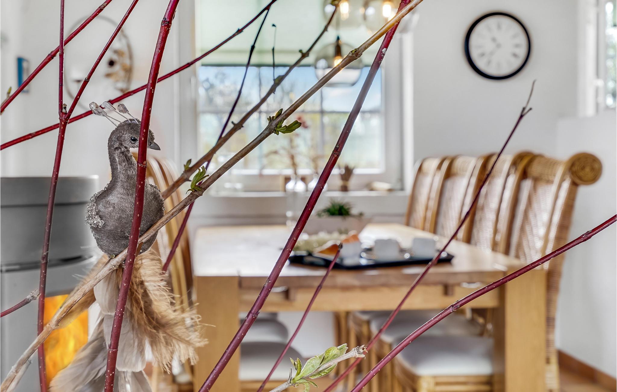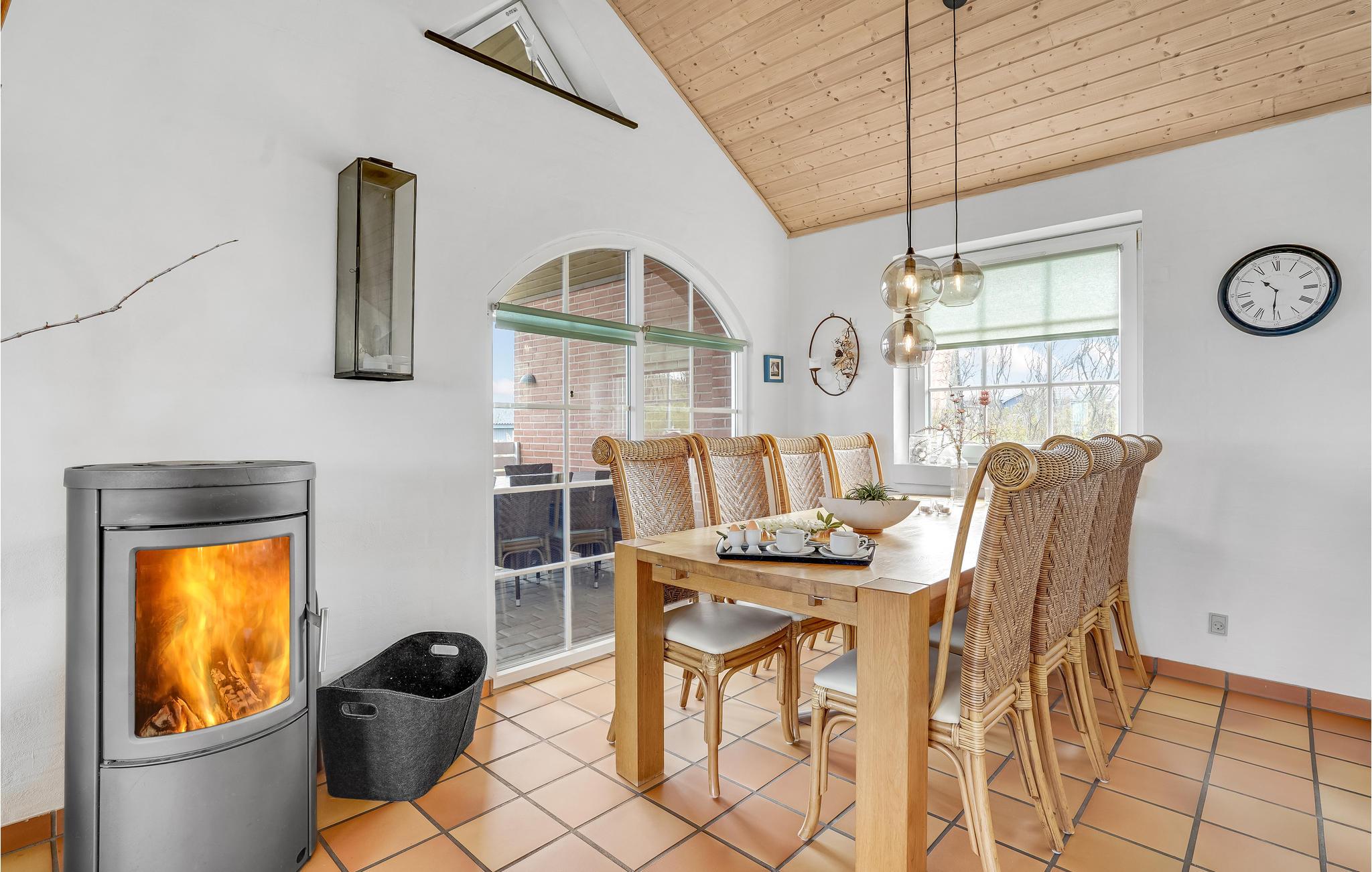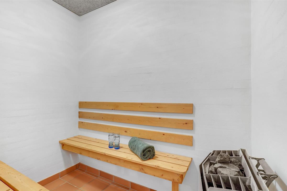 Het huis maakt indruk met zijn grote ramen in het woongedeelte, waardoor veel daglicht de kamers binnenkomt. Zo oogt het vakantiehuis licht en uitnodigend en is het een aangename plek om uw vakantie door te brengen. Ontspan in de sauna van het huis of maak het u samen comfortabel bij de open haard op een koelere middag.