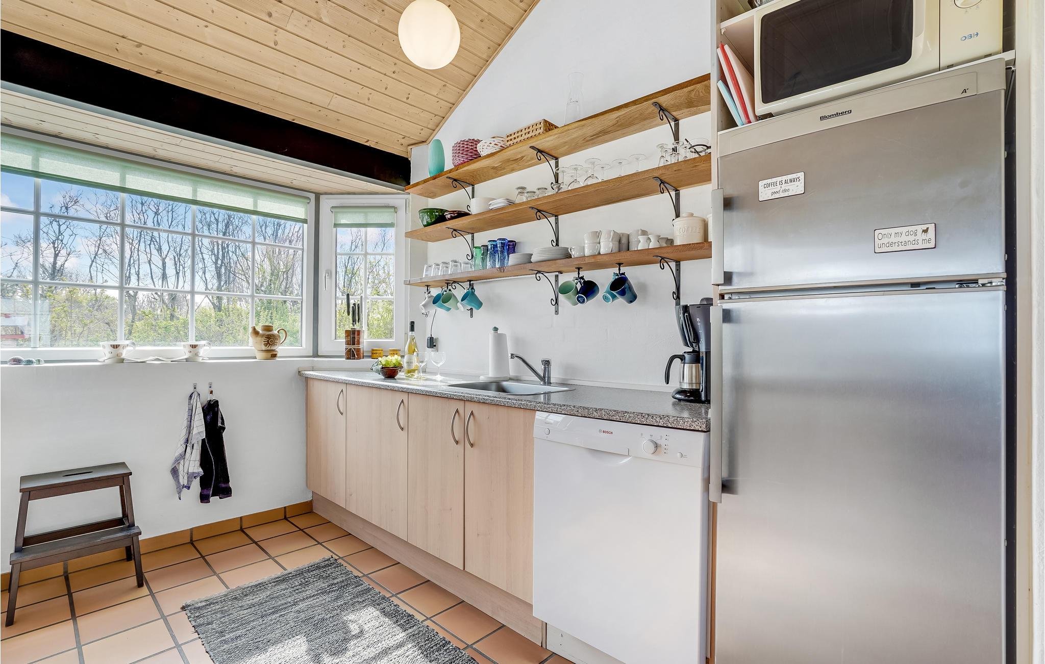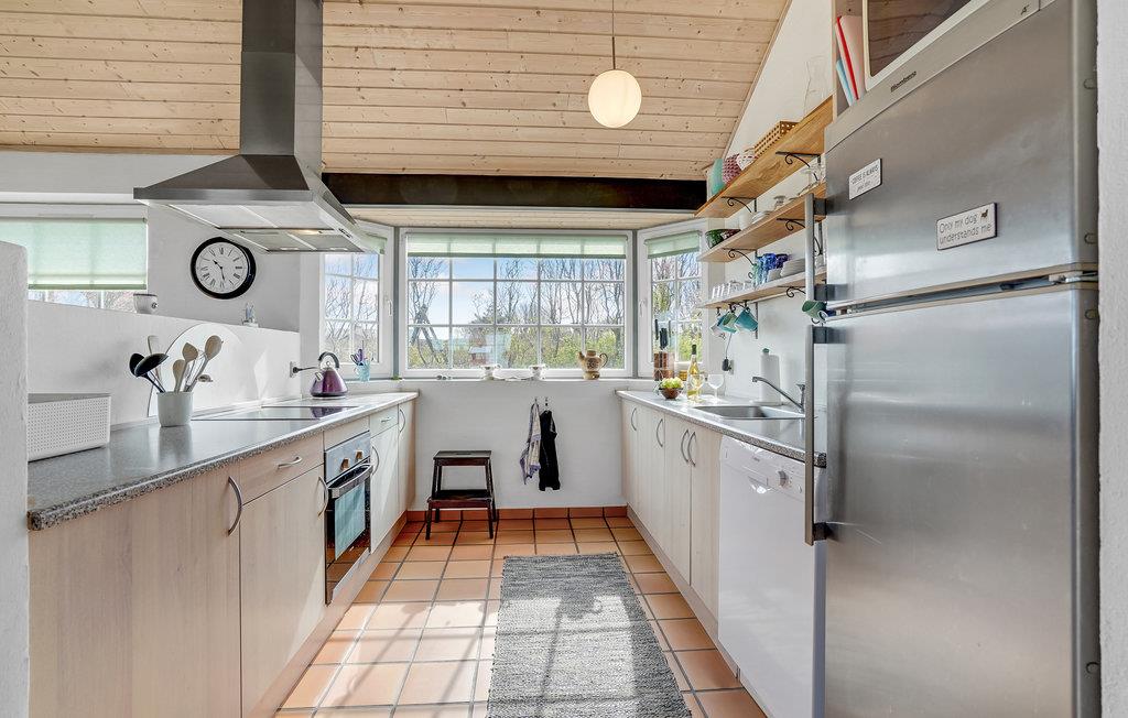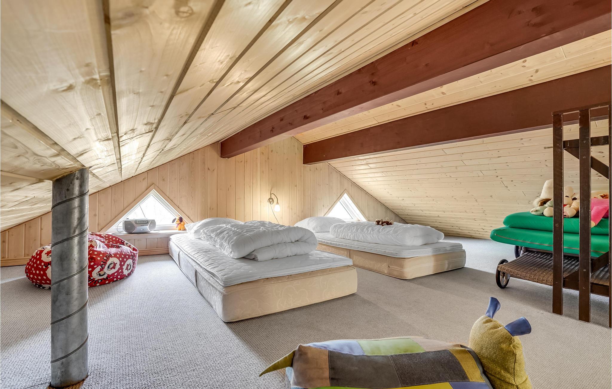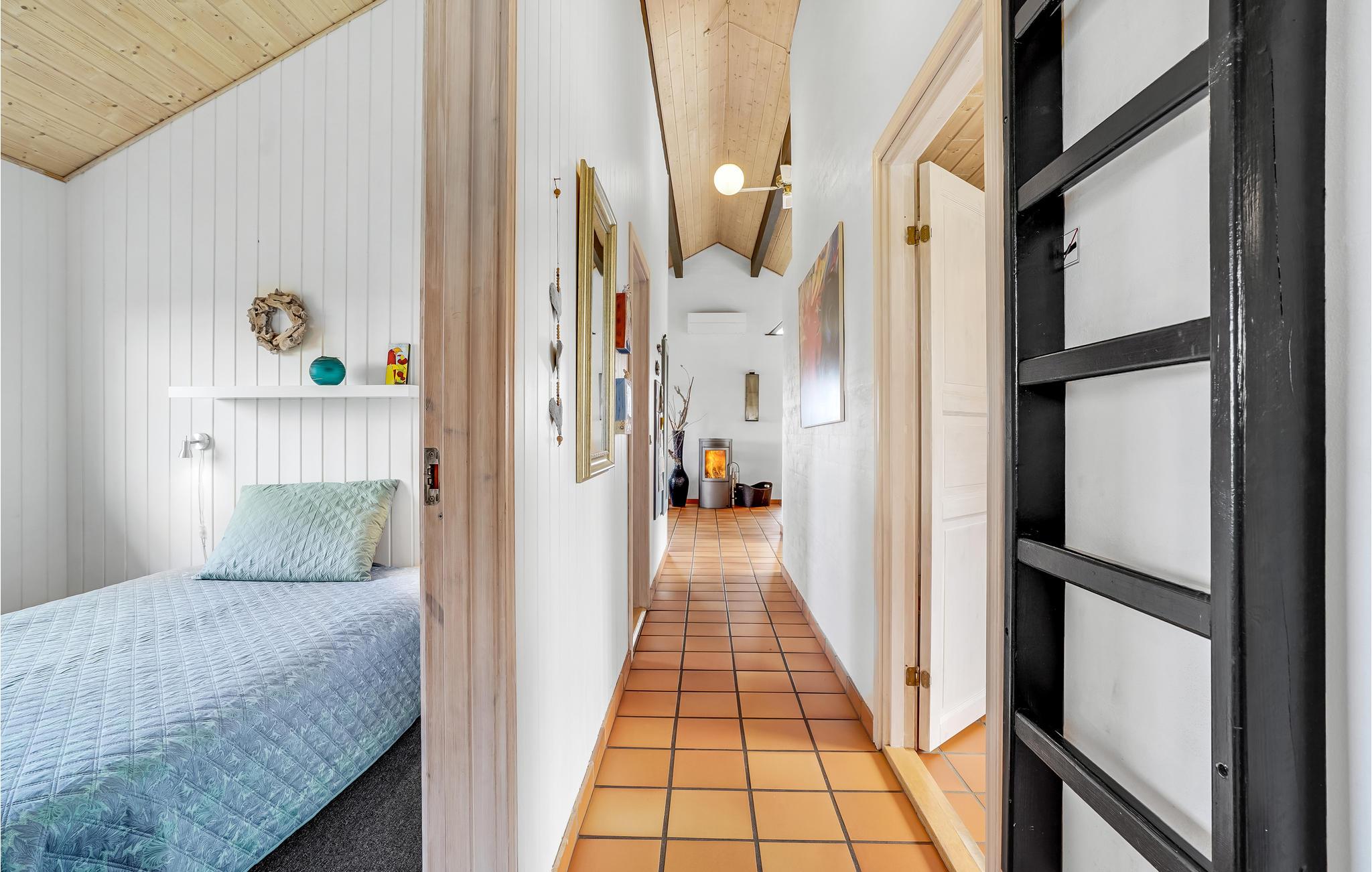 Het huis maakt indruk met zijn grote ramen in het woongedeelte, waardoor veel daglicht de kamers binnenkomt. Zo oogt het vakantiehuis licht en uitnodigend en is het een aangename plek om uw vakantie door te brengen. Ontspan in de sauna van het huis of maak het u samen comfortabel bij de open haard op een koelere middag.