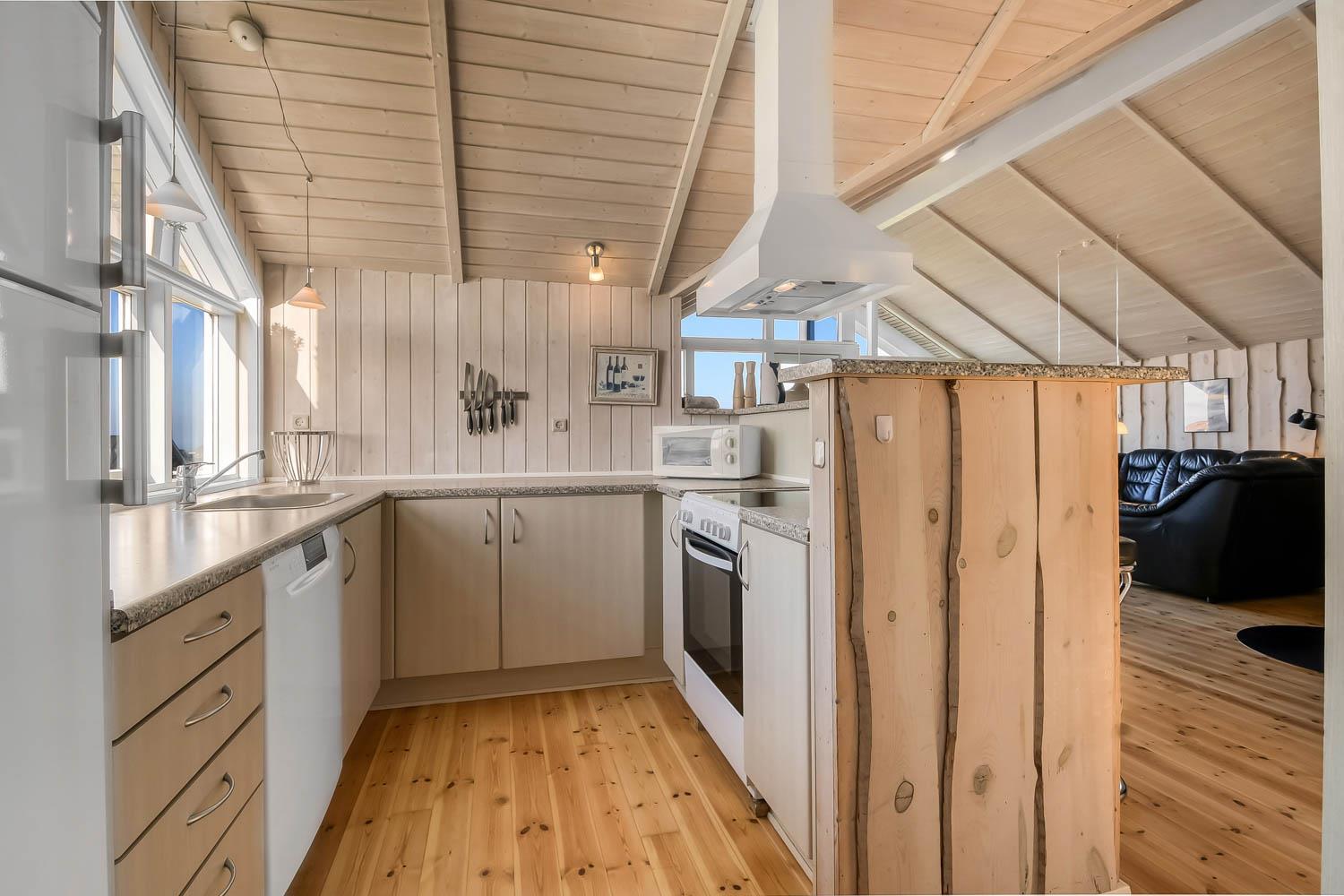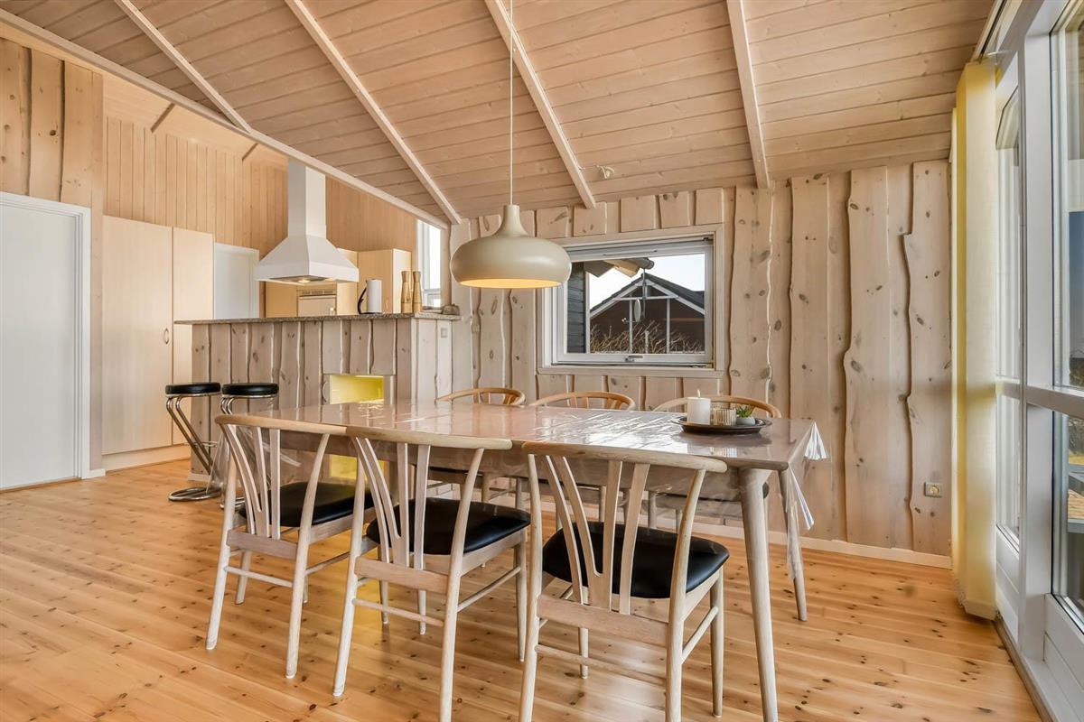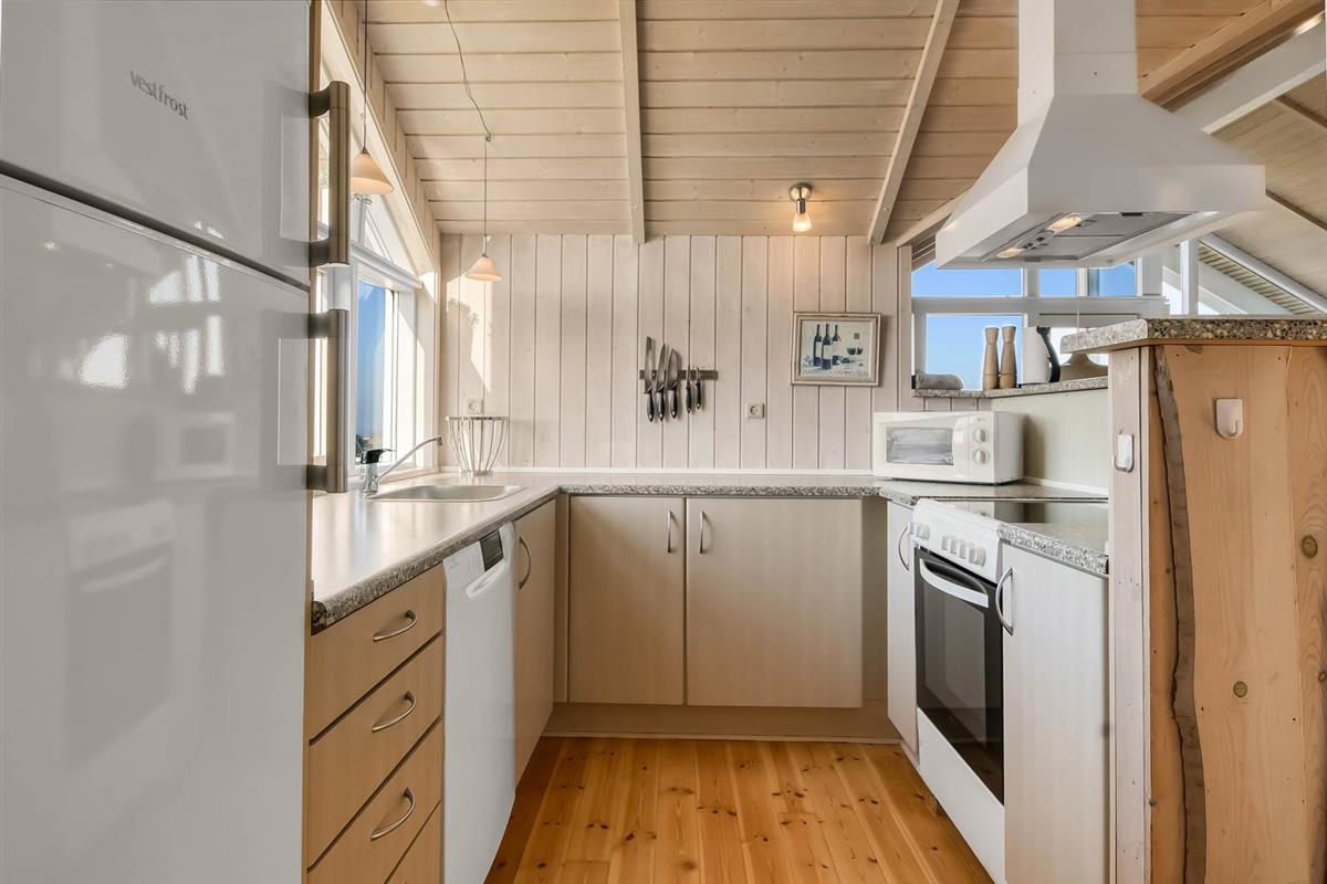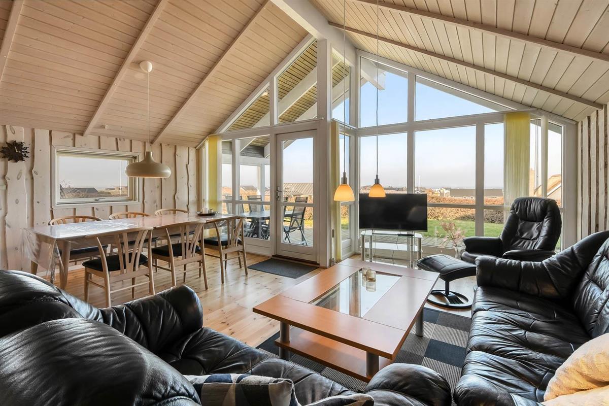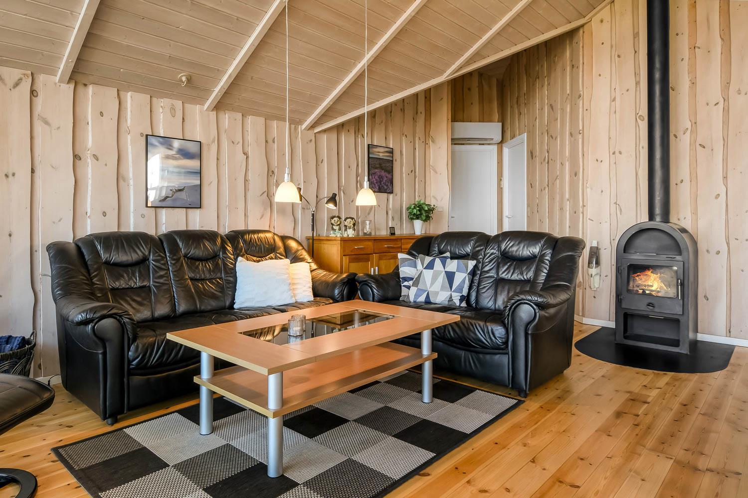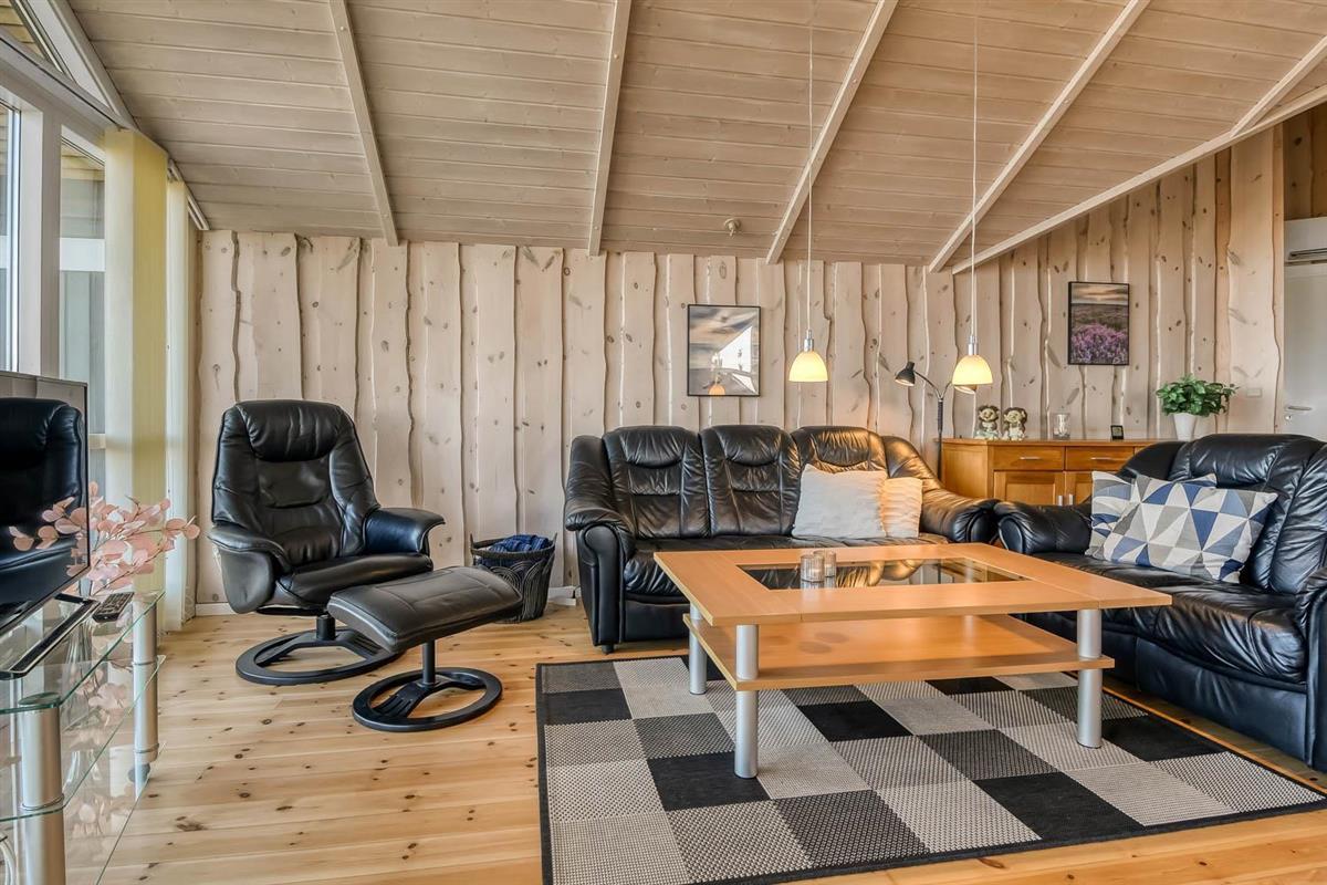 Sehr schönes und gepflegtes Ferienhaus auf 87 m2 mit 3 guten Schlafräumen: 1DB + 1DB + 1DB. Ein schöner Flur mit Platz zum Ablegen, Waschmaschine und Trockner heißt Sie wilkommen. Der Wohnraum ist mit der Küche kombiniert. Die Decke ist geöffnet mit grossen Fensterpartien, die das Haus hell und freundlich machen. Der Wohnraum ist mit guten Ledermöbeln, Esstisch, TV mit dänischen und deutschen Programmen ausgestattet. Entspannen Sie sich vor dem Kaminofen, der zusammen mit der Wärmepumpe hilft Ihre Nebenkosten zu reduzieren. Die Küchenecke ist hell und freundlich und hat einen Herd mit Cerankochfeld, Mikrowelle, Abzugshaube, Kühlschrank mit Gefrierfach, Geschirrspüler und alles an Geschirr und Kochgeschirr. Praktische harte Fussböden im Wohnraum, der Küchenecke und den Schlafräumen. Grosses schönes Badezimmer mit Dusche, Toilette, Waschbecken, Fliesenboden mit Fussbodenheizung, Whirlpool und direktem Zugang zur Sauna. Extra Toilette mit Waschbecken und Fussbodenheizung. Kinderstuhl für die Kinder. Freier Zutritt zum Lemvig Idræts & Kulturcenter mit Schwimmhalle u.a. siehe unter www.lemvig-idraets-og-kulturcenter.dk - Nichtraucher-Haus. Max. 1 Haustier ist erlaubt.
