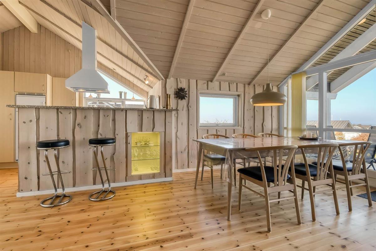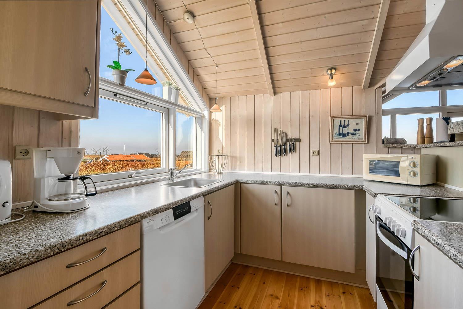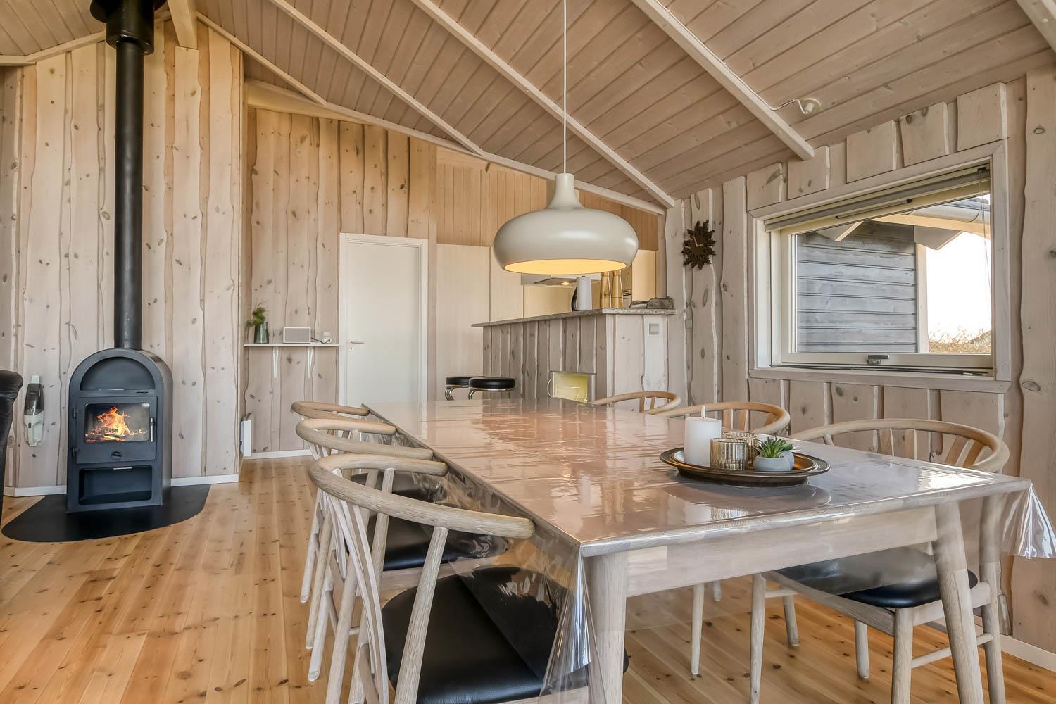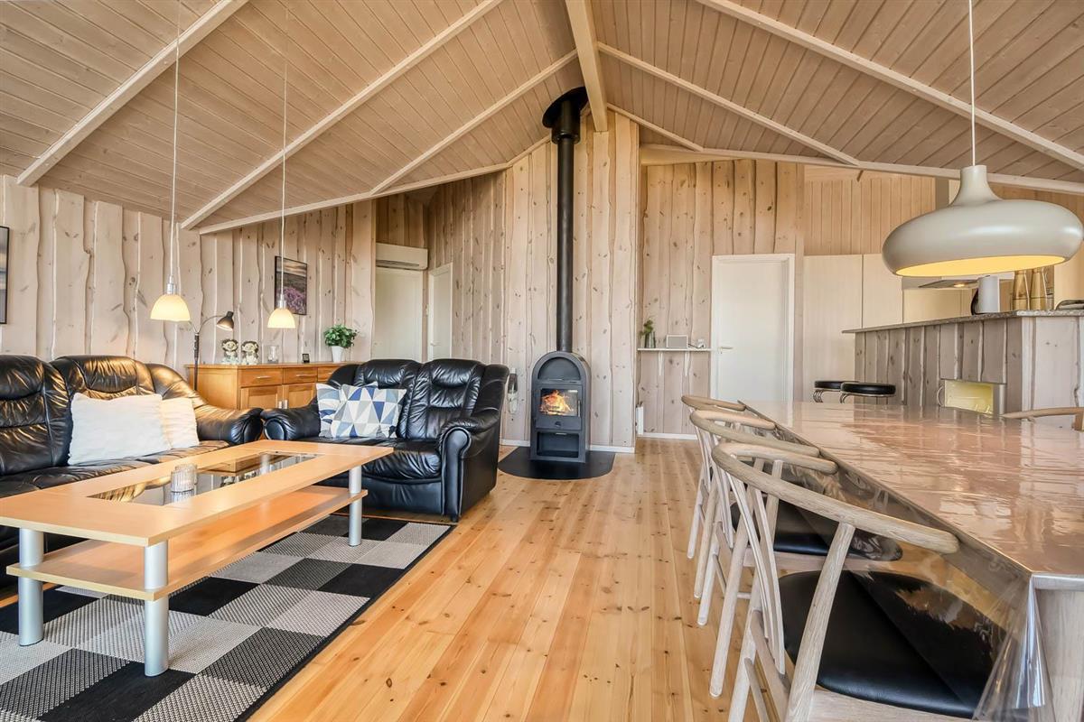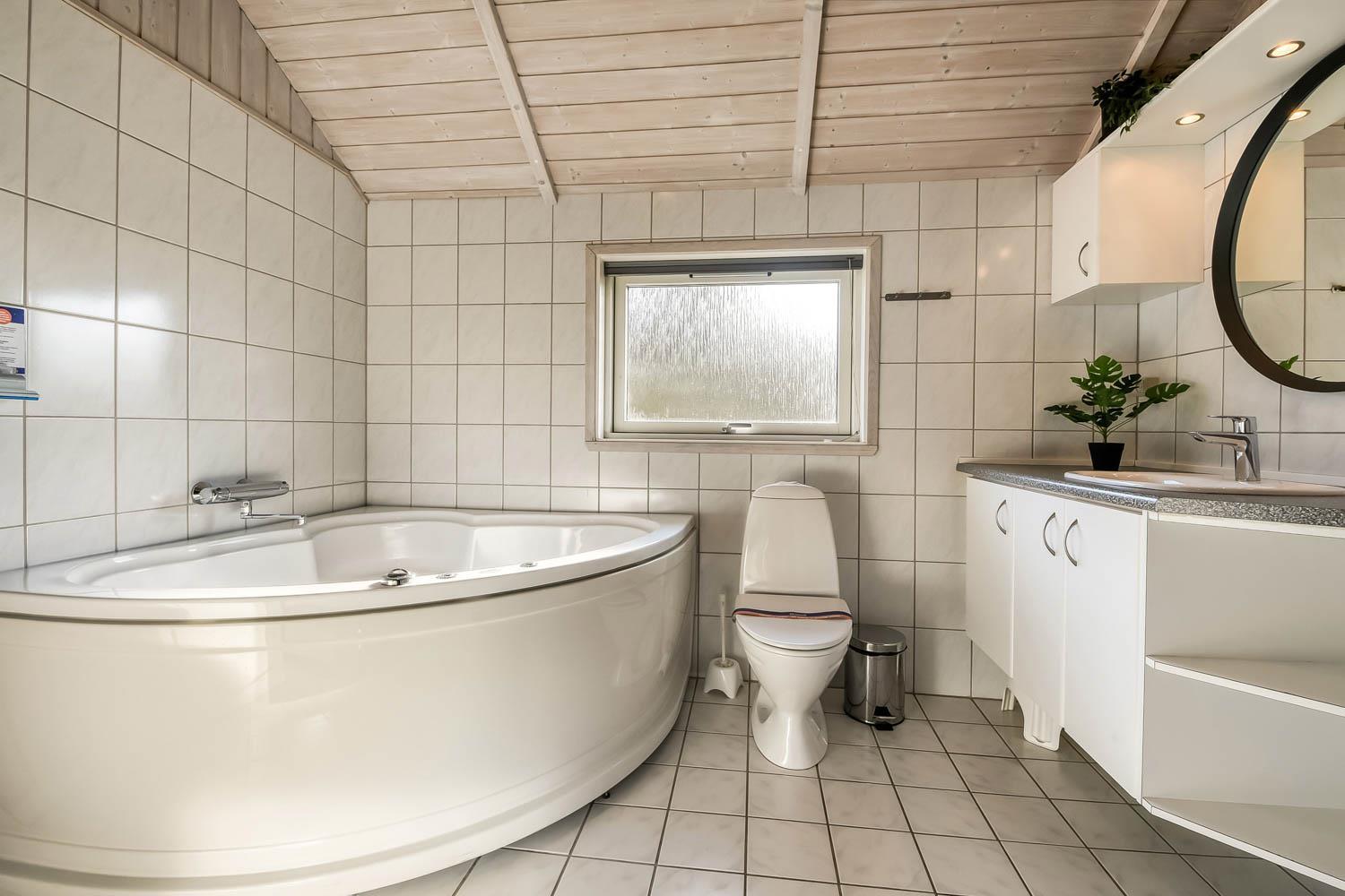 Sehr schönes und gepflegtes Ferienhaus auf 87 m2 mit 3 guten Schlafräumen: 1DB + 1DB + 1DB. Ein schöner Flur mit Platz zum Ablegen, Waschmaschine und Trockner heißt Sie wilkommen. Der Wohnraum ist mit der Küche kombiniert. Die Decke ist geöffnet mit grossen Fensterpartien, die das Haus hell und freundlich machen. Der Wohnraum ist mit guten Ledermöbeln, Esstisch, TV mit dänischen und deutschen Programmen ausgestattet. Entspannen Sie sich vor dem Kaminofen, der zusammen mit der Wärmepumpe hilft Ihre Nebenkosten zu reduzieren. Die Küchenecke ist hell und freundlich und hat einen Herd mit Cerankochfeld, Mikrowelle, Abzugshaube, Kühlschrank mit Gefrierfach, Geschirrspüler und alles an Geschirr und Kochgeschirr. Praktische harte Fussböden im Wohnraum, der Küchenecke und den Schlafräumen. Grosses schönes Badezimmer mit Dusche, Toilette, Waschbecken, Fliesenboden mit Fussbodenheizung, Whirlpool und direktem Zugang zur Sauna. Extra Toilette mit Waschbecken und Fussbodenheizung. Kinderstuhl für die Kinder. Freier Zutritt zum Lemvig Idræts & Kulturcenter mit Schwimmhalle u.a. siehe unter www.lemvig-idraets-og-kulturcenter.dk - Nichtraucher-Haus. Max. 1 Haustier ist erlaubt.