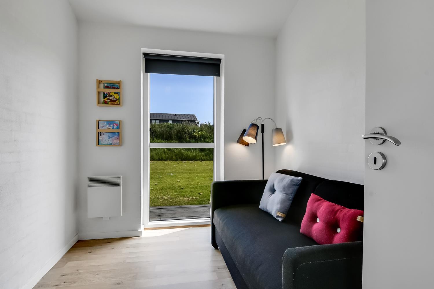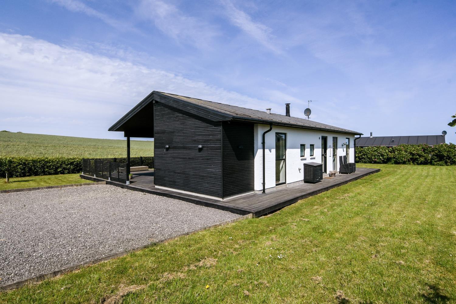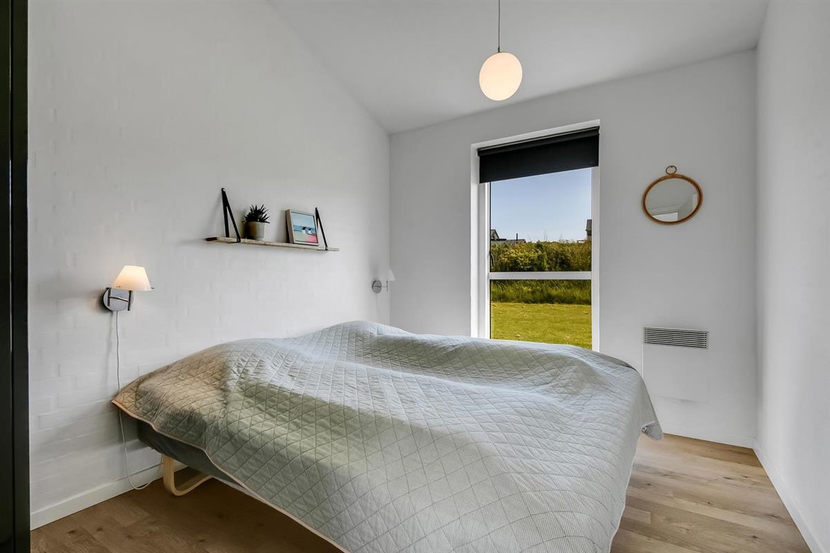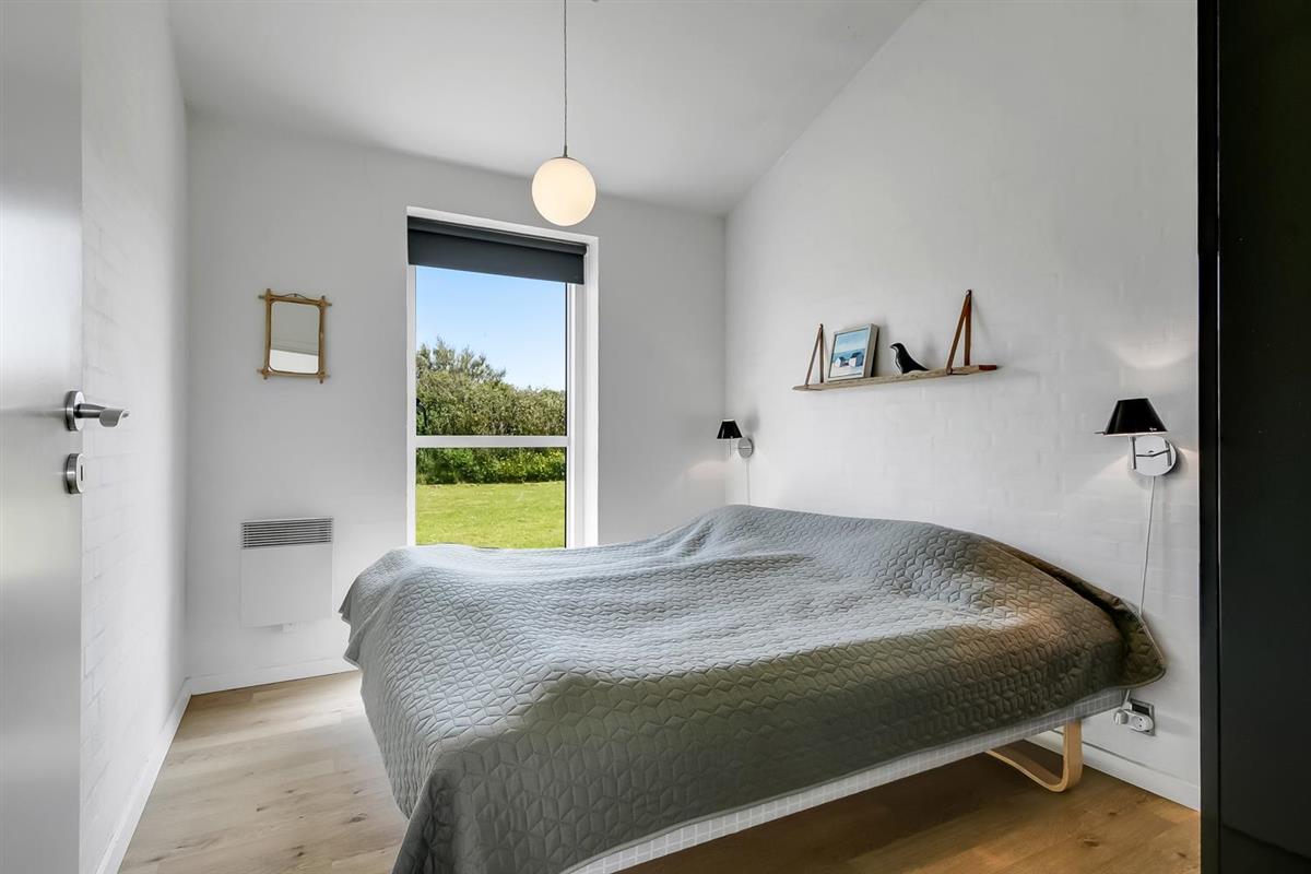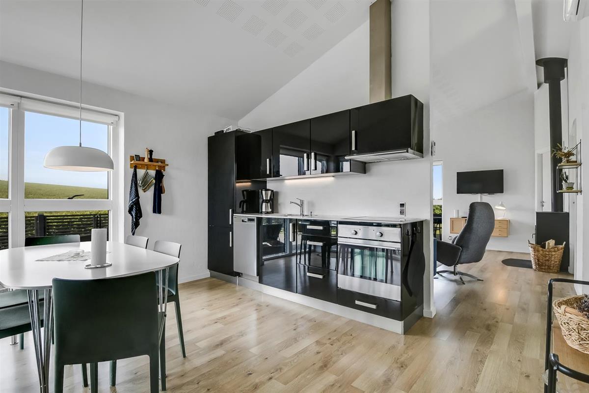 Schon wenn Sie auf das Haus zufahren, können Sie sehen, dass es ein sehr gepflegtes Ferienhaus ist. Es gibt einen kombinierten Wohnraum und Küche; die Küche ist mit einer Wand vom Wohnraum getrennt und bei der Küche steht auch der Esstisch. Schöner heller Wohnraum mit guten Ledermöbeln und Holzboden; hier gibt es TV mit dänischen und deutschen Programmen und einen DVD-Player, außerdem gibt es einen Brennofen, der zusammen mit der Wärmepumpe für eine gute Wärme sorgt, auch an den kalten Tagen; beide helfen dabei, die Nebenkosten-Rechnung niedriger zu machen. Die Küche ist gut ausgestattet und hat Herd mit Cerankochfeld, Abzugshaube, eingebauten Ofen, Geschirrspüler, Mikrowelle und einen Gefrier-/Kühlschrank - hier gibt es auch einen Holzboden -. Das Badezimmer ist mit Toilette, Dusche, Waschbecken, Whirlpool, Waschmaschine und Trockner ausgestattet. Drei gute Schlafräume: 1DB + 1DB + 1DB Schlafcouch. Für die kleinsten Gäste gibt es ein Kinderbett. Ein sehr modernes und einladendes Ferienhaus. Nichtraucher-Haus. 1 Haustiere erlaubt.