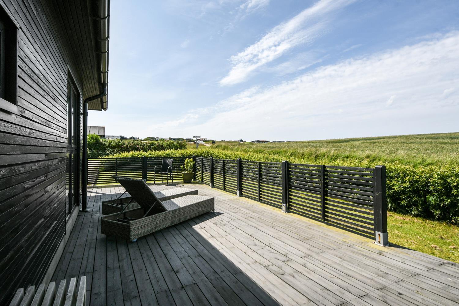 Das Haus liegt auf einem etwa 840 qm großen Naturgrundstück mit Rasen. Vom Grundstück aus gibt es einen schönen Blick auf den Limfjord. Es gibt eine überdachte und eine offene Terrasse mit Gartenmöbeln und Grill. Es sind nur 350 m zum Limfjord, wo es einen kinderfreundlichen Strand mit Badesteig gibt. Dicht an dem Strand liegt der Spielplatz aus Holz, den man frei benutzen kann. Die Handelsstadt Lemvig können Sie in wenigen Minuten mit dem Auto erreichen und hier gibt es Restaurants, Geschäfte und einen kleinen Spielplatz an der Hafenpromenade. Ein sehr schönes Haus in einer Gegend mit vielen guten Möglichkeiten zum Wandern, Laufen oder Fahrrad fahren