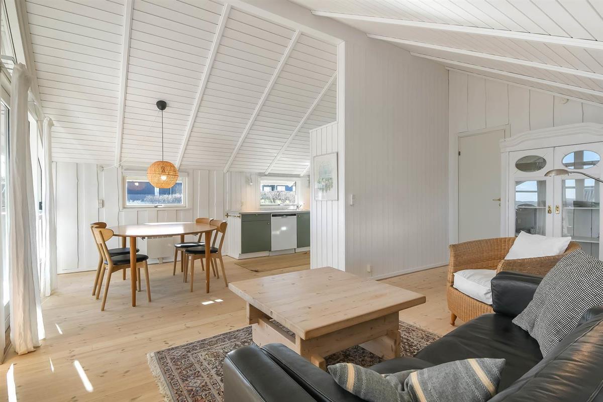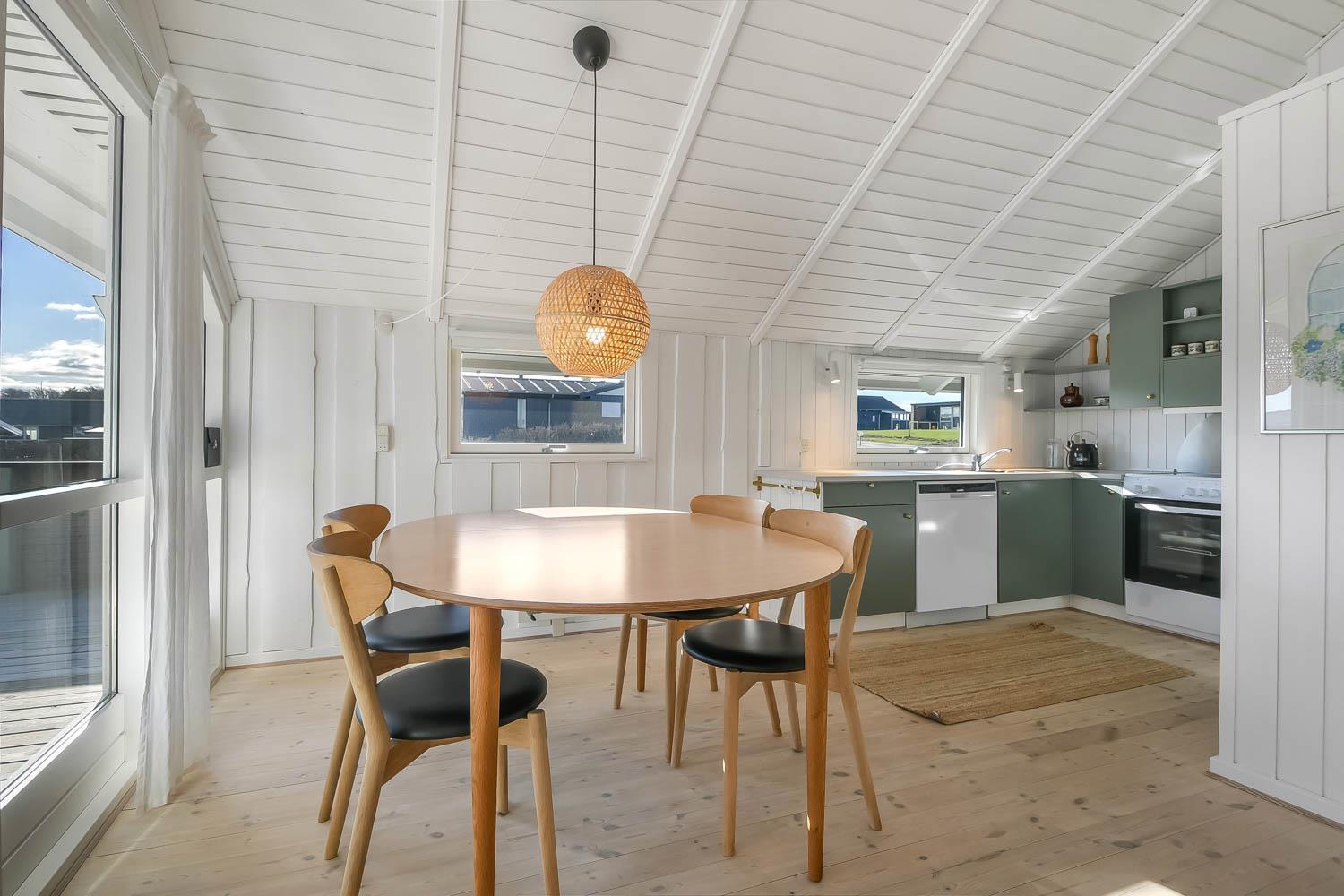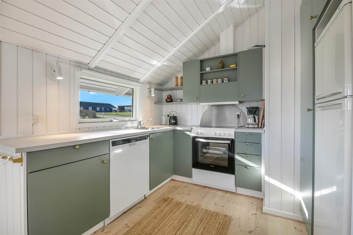 Ferienhaus auf etwa 72 m2 im Jahr 1998 erbaut und teilweise in 2022 renoviert. Kombinierter Wohn-/Essraum mit offenen Decken und grossen Fensterpartien mit schönem Blick zum Limfjord. Wohnraum mit gemütlicher Möblierung, Smart-TV mit dänischen und deutschen Programmen und der Möglichkeit für Streaming von TV / Radio / Apps über Chromcast, wofür Sie selber ein Abonnement haben. Dicht an der Küche steht der Esstisch. Die Küche ist mit E-Herd, Abzugshaube, Geschirrspüler und Kühlschrank mit Gefrierfach. Ausserdem gibt es 2 Schlafräume: 1DB + 1DB mit neuen Böden. Badezimmer: Toilette, Waschbecken, Dusche und Fliesenboden mit Fussbodenheizung. Rauchen ist nicht erlaubt. Max. 2 Haustiere sind erlaubt.