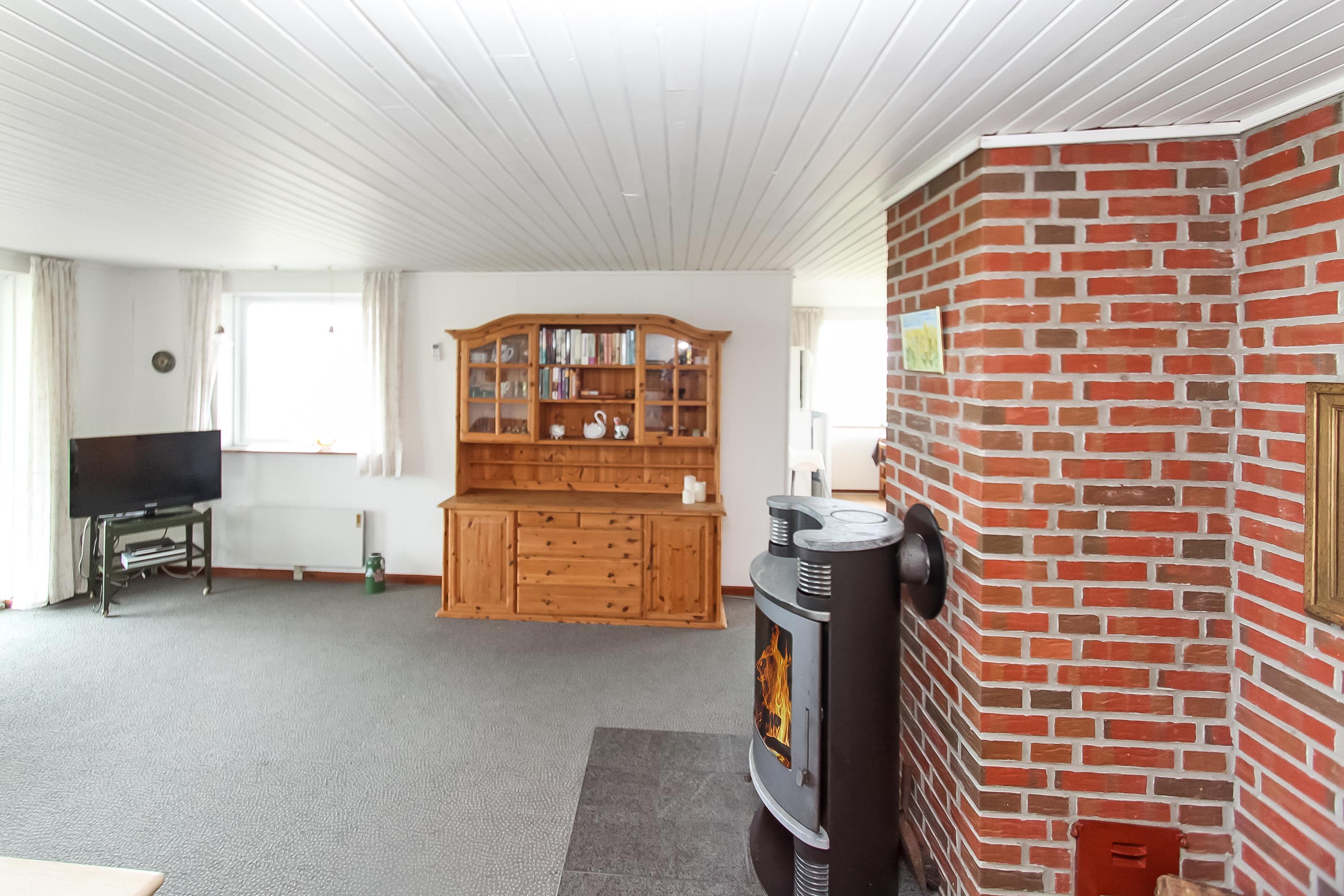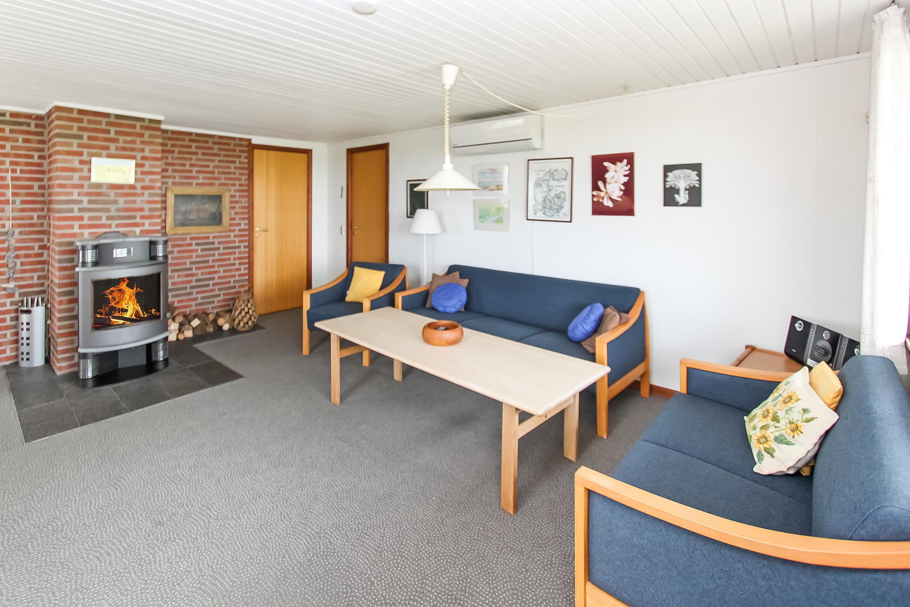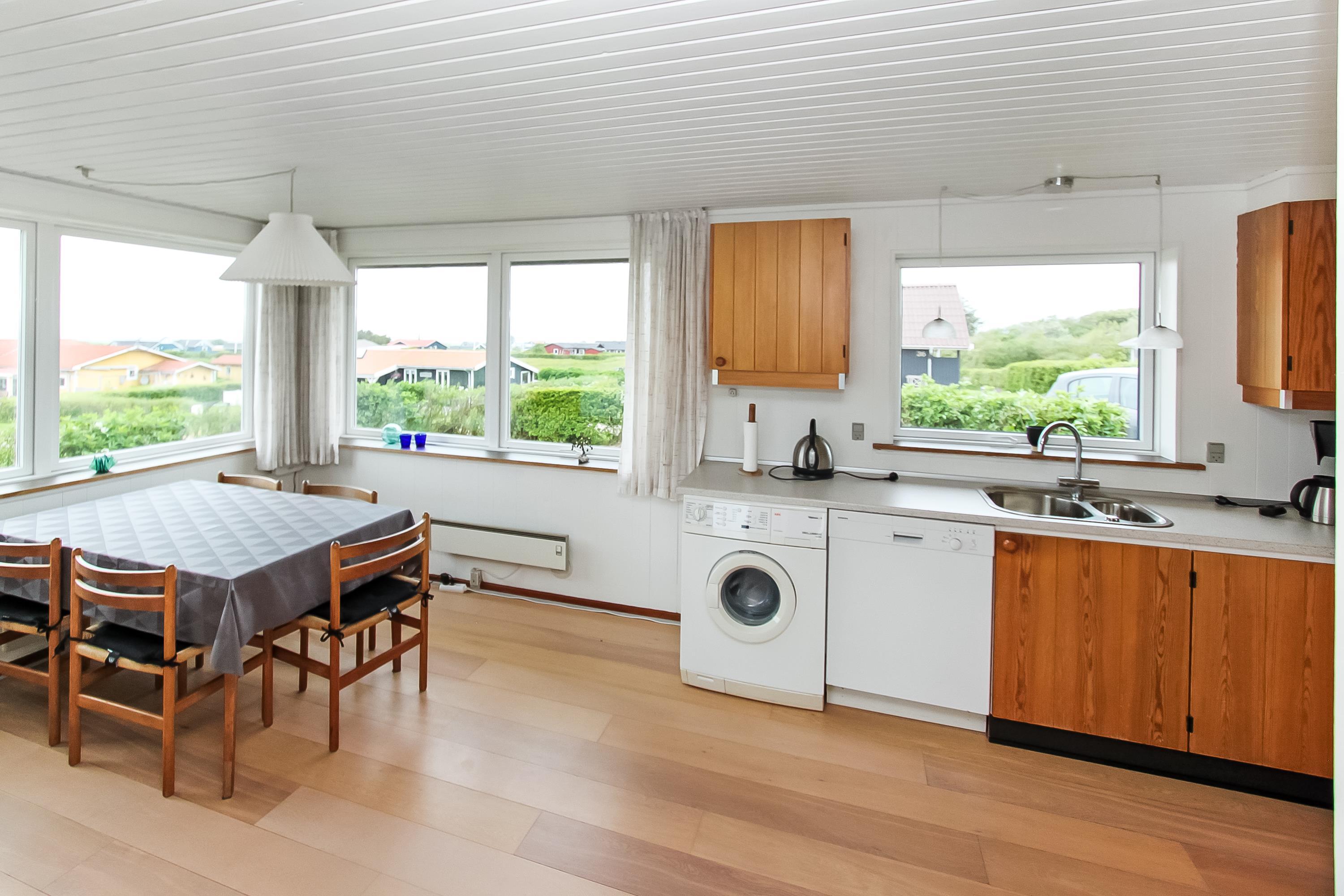 Mit seinen 80 m² ist das Haus sowohl komfortabel als auch funktional eingerichtet. Das Wohnzimmer ist mit bequemen Polstermöbeln, Teppichböden, einem Fernseher mit dänischen und deutschen Programmen sowie einem gemütlichen Kaminofen und einer energieeffizienten Wärmepumpe ausgestattet, die das ganze Jahr über für angenehme Wärme sorgt. Der Esstisch befindet sich in unmittelbarer Nähe zur gut ausgestatteten Küche, die über einen Glaskeramikherd, einen Kühlschrank mit 90-Liter-Gefrierfach, eine Spülmaschine und eine Waschmaschine verfügt.