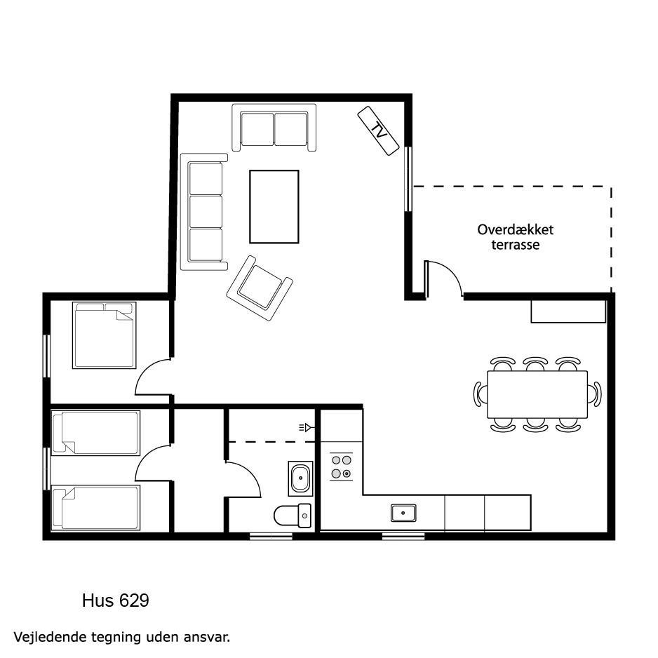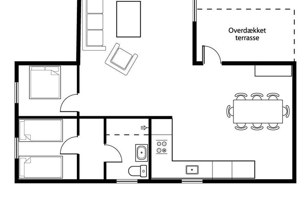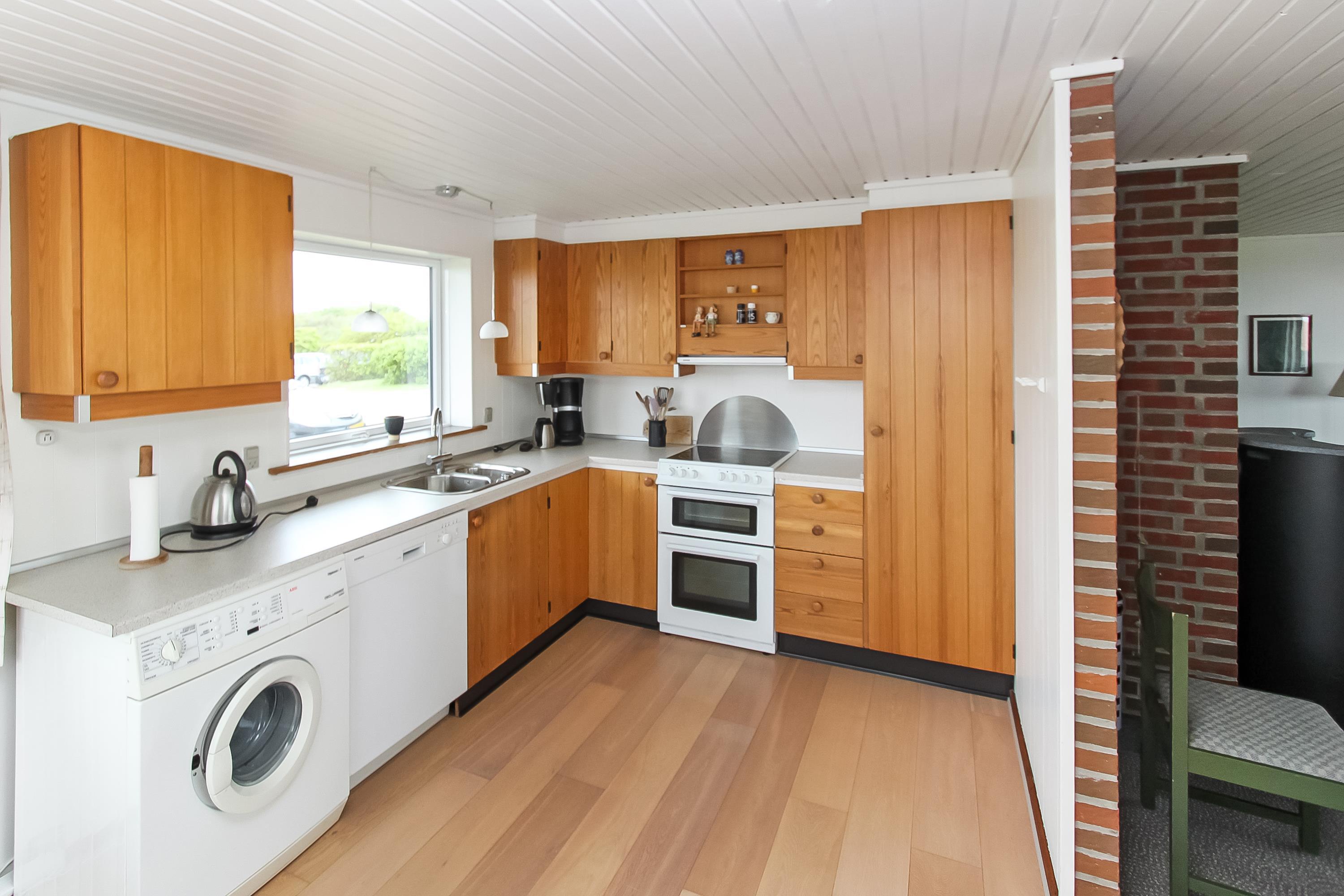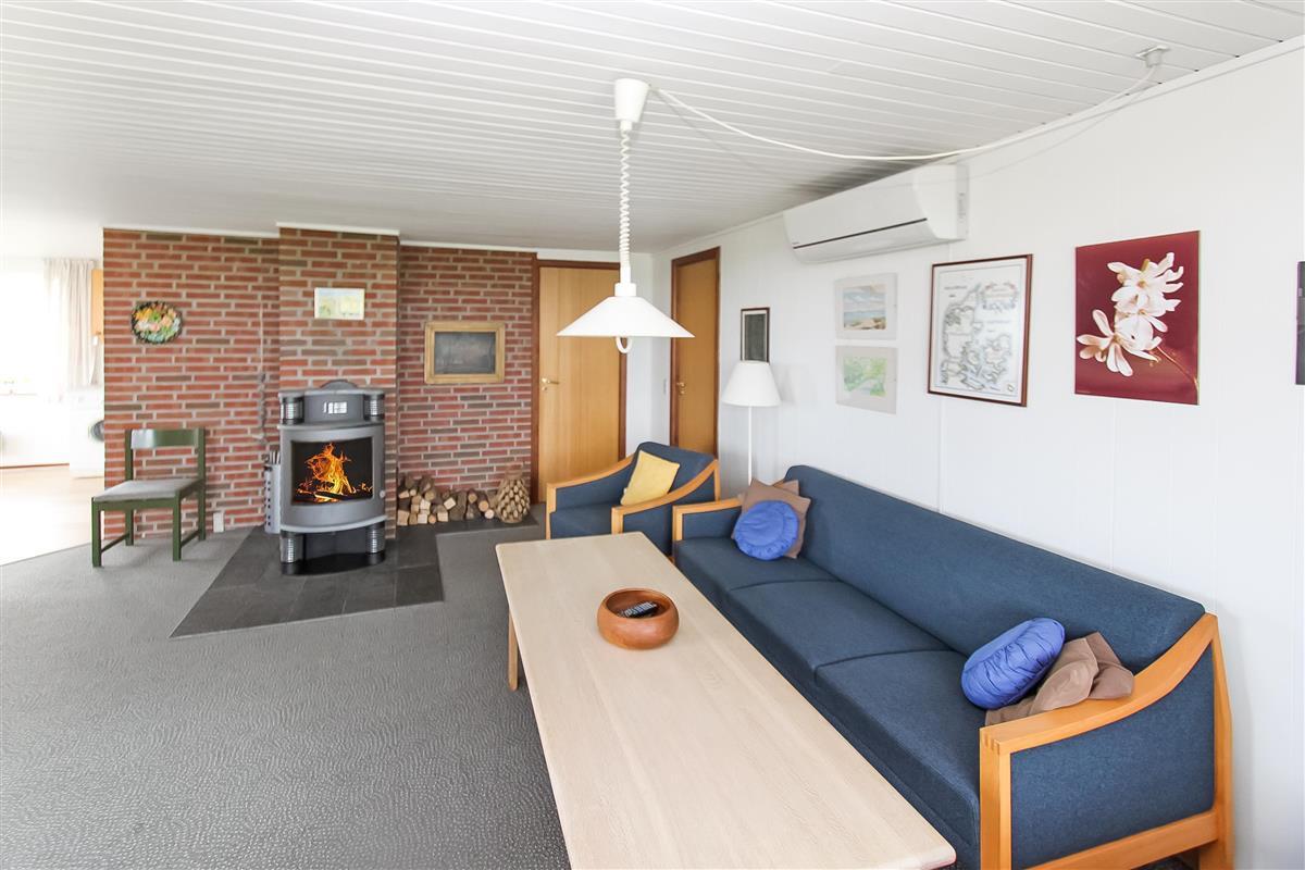 Mit seinen 80 m² ist das Haus sowohl komfortabel als auch funktional eingerichtet. Das Wohnzimmer ist mit bequemen Polstermöbeln, Teppichböden, einem Fernseher mit dänischen und deutschen Programmen sowie einem gemütlichen Kaminofen und einer energieeffizienten Wärmepumpe ausgestattet, die das ganze Jahr über für angenehme Wärme sorgt. Der Esstisch befindet sich in unmittelbarer Nähe zur gut ausgestatteten Küche, die über einen Glaskeramikherd, einen Kühlschrank mit 90-Liter-Gefrierfach, eine Spülmaschine und eine Waschmaschine verfügt.