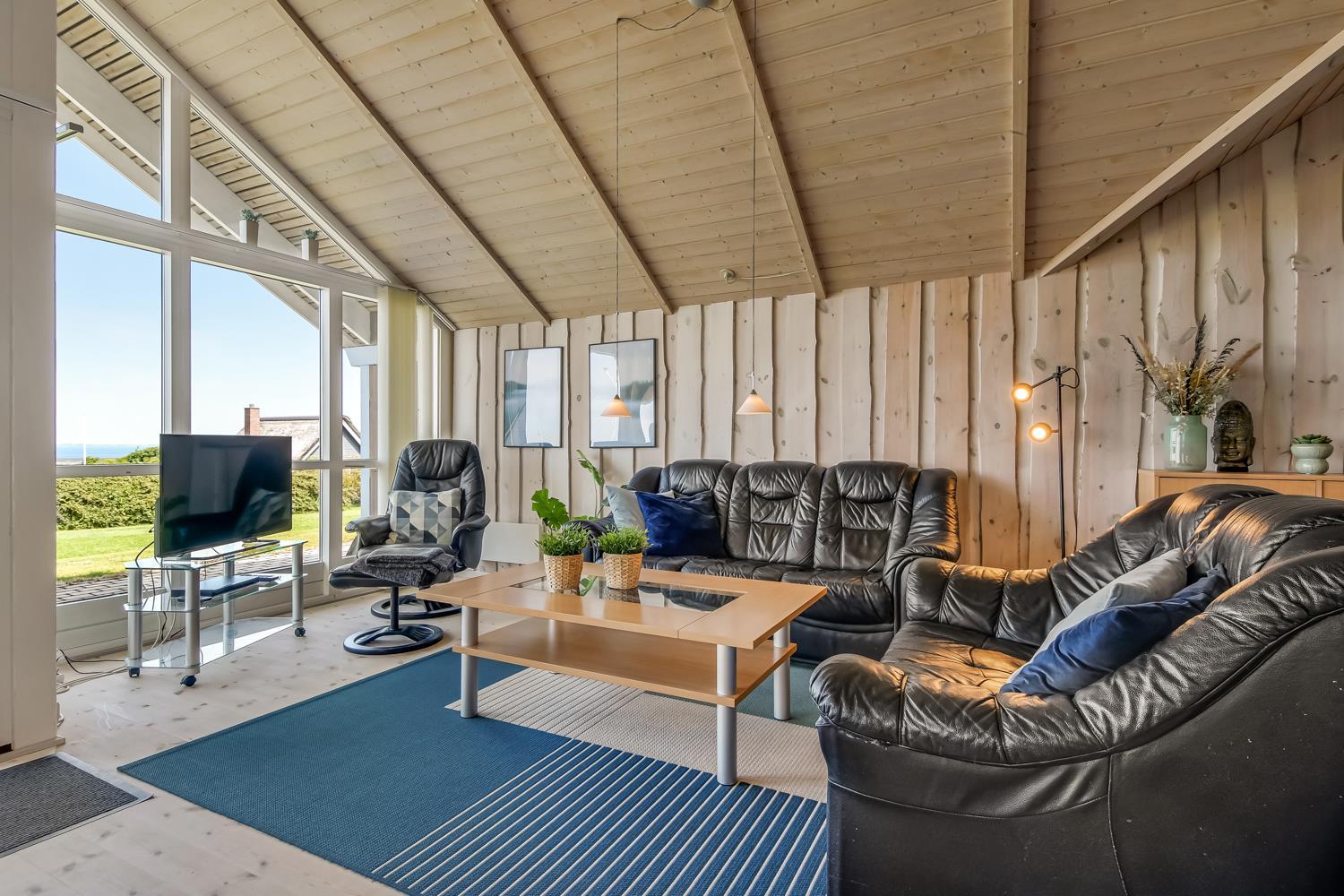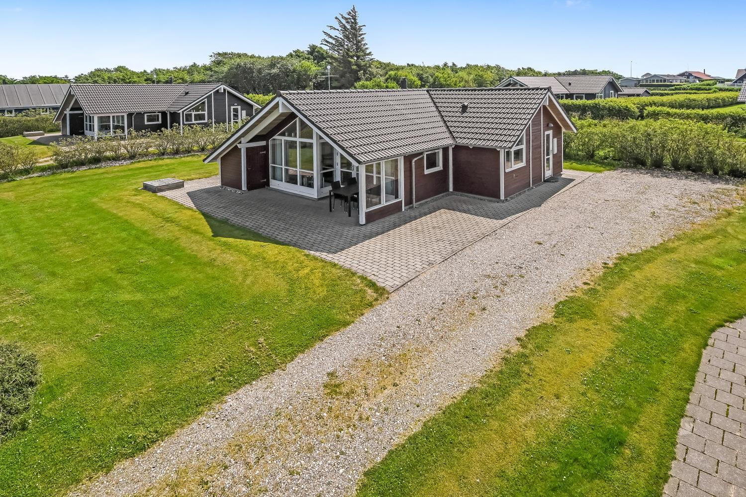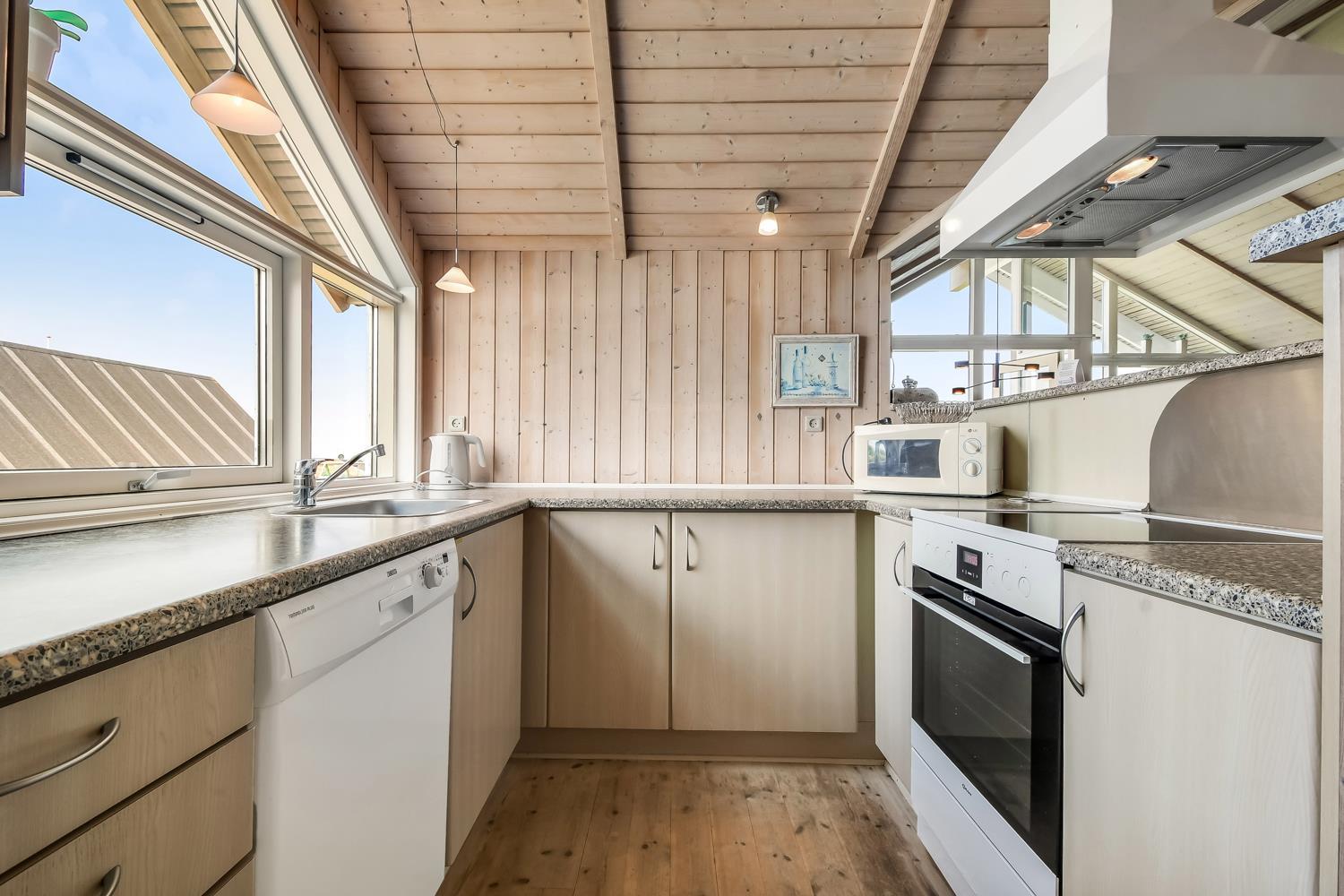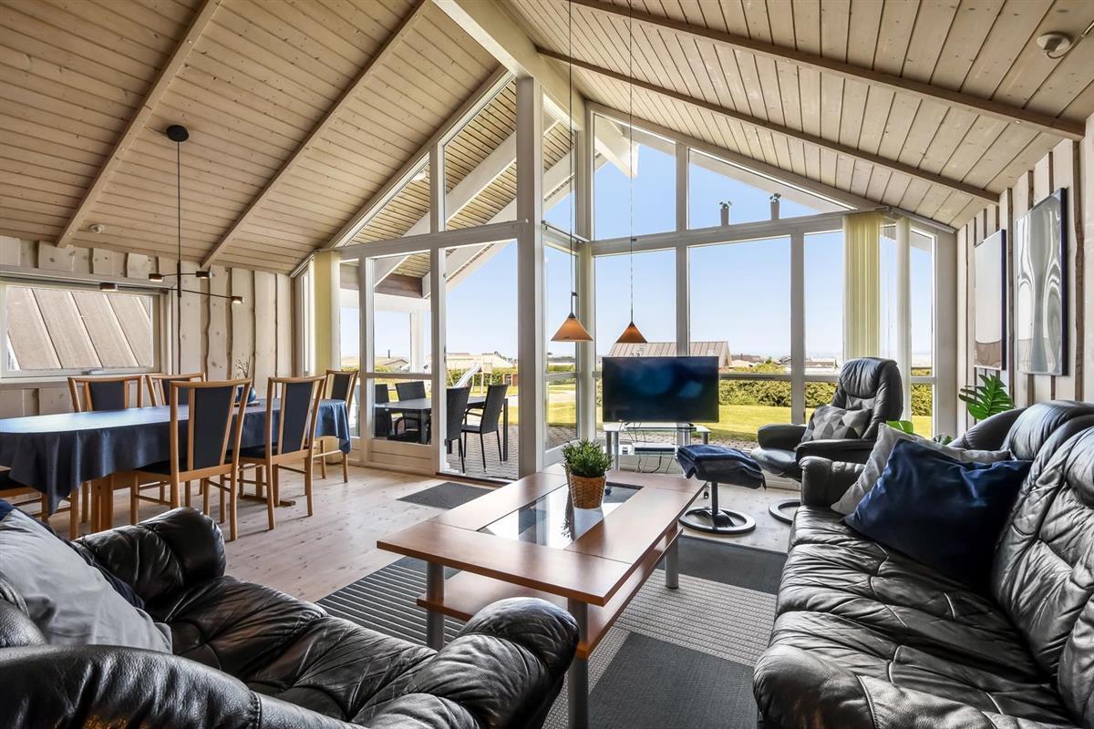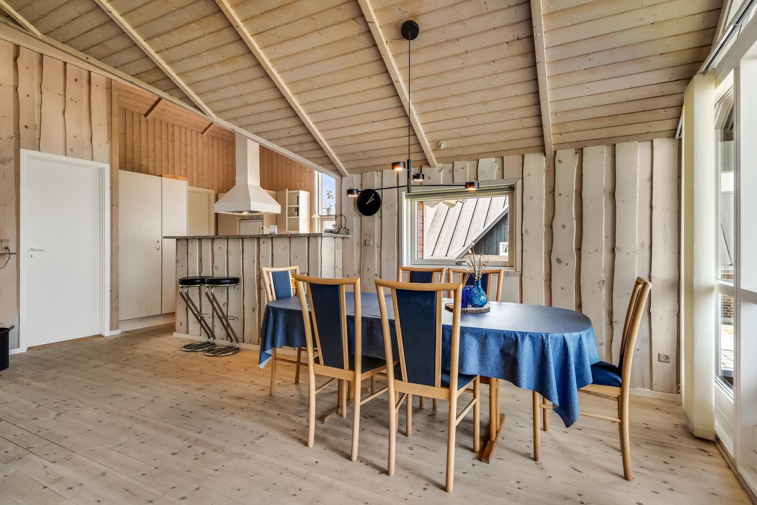 Sehr gepflegtes und schönes Ferienhaus auf 87 m2 mit 3 gutenSchlafräumen: 1DB + 1DB + 1E. Ein schöner Flur mit Ablegeplatz, Waschmaschine und Trockner heißt Sie wilkommen. Kombinierter Wohnraum mit der Küchenecke; die Decken sind bis oben geöffnet und mit grossen Fensterpartien, die das Haus hell und freundlich machen. Der Wohnraum ist mit Ledermöbeln, Esstisch, TV mit dänischen und deutschen Programmen und der Möglichkeit für Streaming von deutschen und dänischen Programmen mit Chromecast, wenn Sie selber ein Abonnement haben und ein Handy oder ein anderes internetfähiges Gerät. CD Æ/ DVD / Radio. Entspannen Sie sich vor dem Kaminofen, der zusammen mit der Wärmepumpe hilft die Nebenkosten niedriger zu halten. Küche mit Herd mit Cerankochfeld, Mikrowelle, Abzugshaube, Kühlschrank mit Gefrierfach, Geschirrspüler und alles an Geschirr und Kochgeschirr. Praktische harte Fussböden im Wohnraum, der Küchenecke und den Schlafräumen. Grosses schönes Badezimmer mit Dusche, Toilette, Waschbecken, Fliesenboden mit Fussbodenheizung, Whirlpool und direkten Zugang zur Sauna. Extra Badezimmer mit Toilette, Wascbecken und Fussbodenheizung. Kinderstuhl für die Kinder. Freier Zutritt zum Lemvig Idræts & Kulturcenter mit Schwimmhalle usw. Siehe www.lemvig-idraets-og-kulturcenter.dk Nichtraucher-Haus. Max. 1 Haustier ist erlaubt.