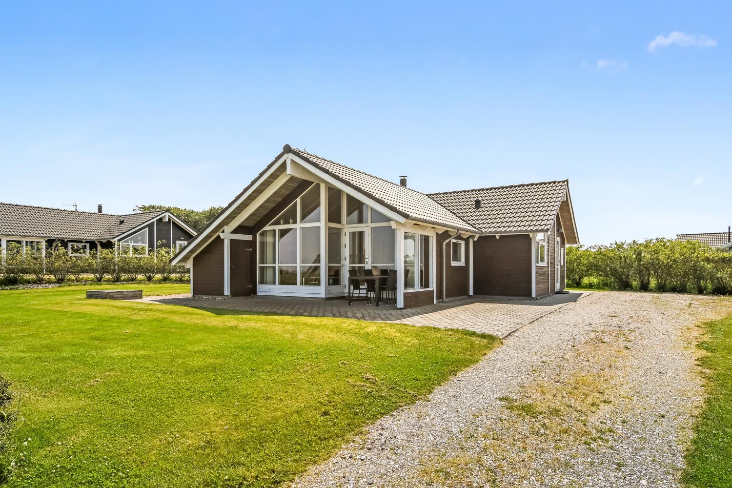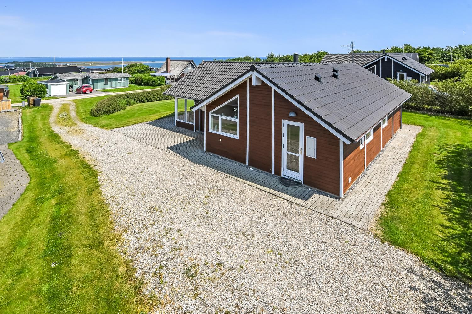 Auf einem etwa 955 m2 grossen, gepflegten Grundstück liegt dieses Haus, bloss 300 m vom Limfjord entfernt. Grosse, teilweise überdachte Terrassenanlage mit Gartenmöbeln, Sonnenliegen und Grill. Die Terrasse geht um das ganze Haus herum, so es gibt immer eine Stelle in der Sonne. Ein schönes Ferienhaus für jede Jahreszeit. Vom Haus aus geht ein Wegsystem direkt zum Wasser, das Sie in wenigen Minuten erreichen können. Etwa 400 m vom Haus entfernt liegt der neue schöne Holzspielzplatz mit Fussballplatz und Rutsche. Lemvig ist nur 4 km vom Haus entfernt und hier gibt es viele Geschäfte, Fischrestaurant, Museum usw. Nehmen Sie das Auto für eine Tour nach Thyborøn, die Fahrt dauert nur etwa 20 Min. Hier gibt es verschiedene Aktivitäten wie Fischauktion, Sea War Museum oder besuchen Sie das Jyllands Akvarium, wo die Kinder Fische und Krabben sehen und berühren können. Sie können den Tag mit einem Eis abschließen und einen Gang am Hafen entlang machen um die Fischerkutter ansehen.