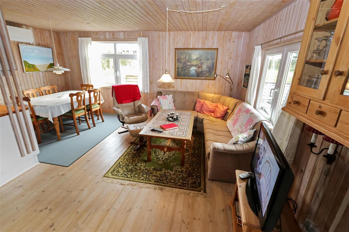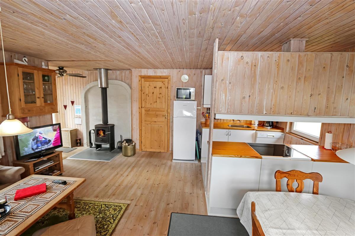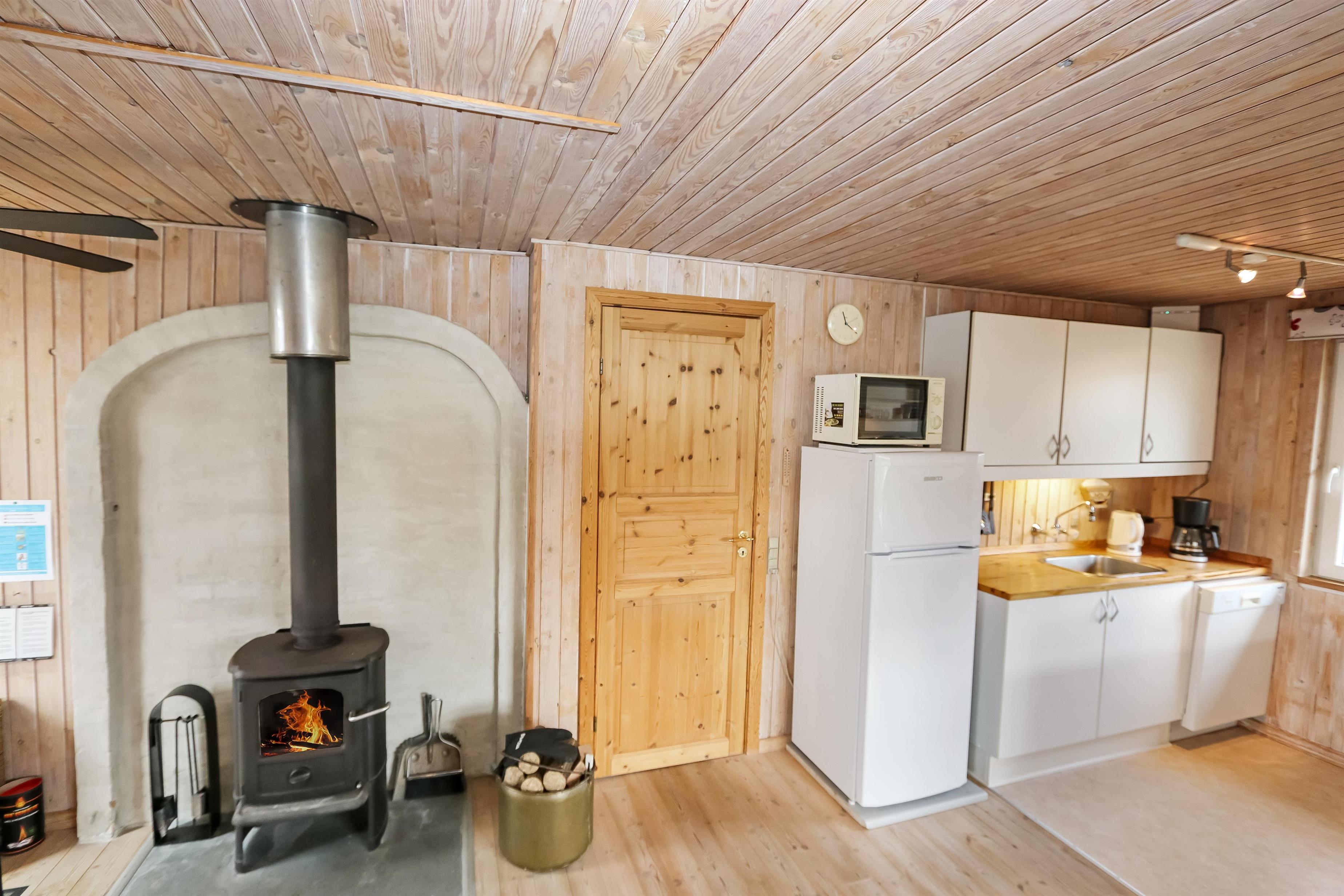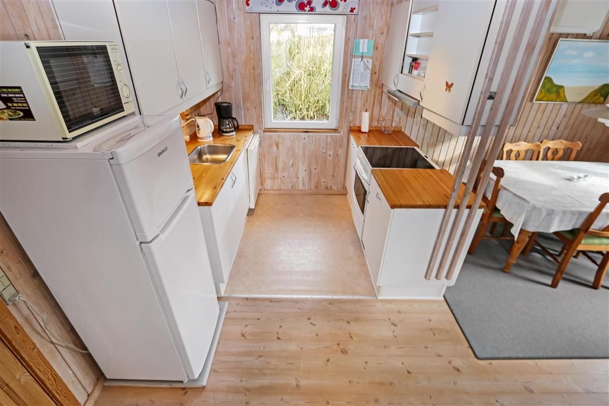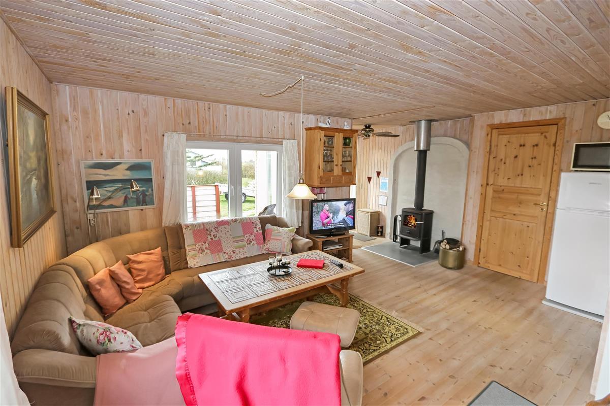 Holzferienhaus mit etwa 95 m². Der Wohnraum ist gemütlich eingerichtet, mit z.B. schönen Möbeln, TV mit dänischen und deutschen Programmen, einem Kaminofen, einer Wärmepumpe und praktischen Holzböden. 3 Schlafräume: 1DB + 1DB + 1E mit Holzboden. Gemütliche Küchenecke mit Herd mit Cerankochfeld, Mikrowelle, Kühlschrank mit Gefrierfach, Geschirrspüler und praktischer Linoleumboden. Von dem kombinierten Wohnraum/Küchenecke können Sie den schönen Blick über die Landschaft und den Limfjord geniessen. Badezimmer mit Toilette, Dusche, Waschbecken und Waschmaschine. Kinderbett und Kinderstuhl. Rauchen ist nicht erlaubt im Haus. Haustier nicht erlaubt. Ein richtig unglaublich gemütliches Ferienhaus.