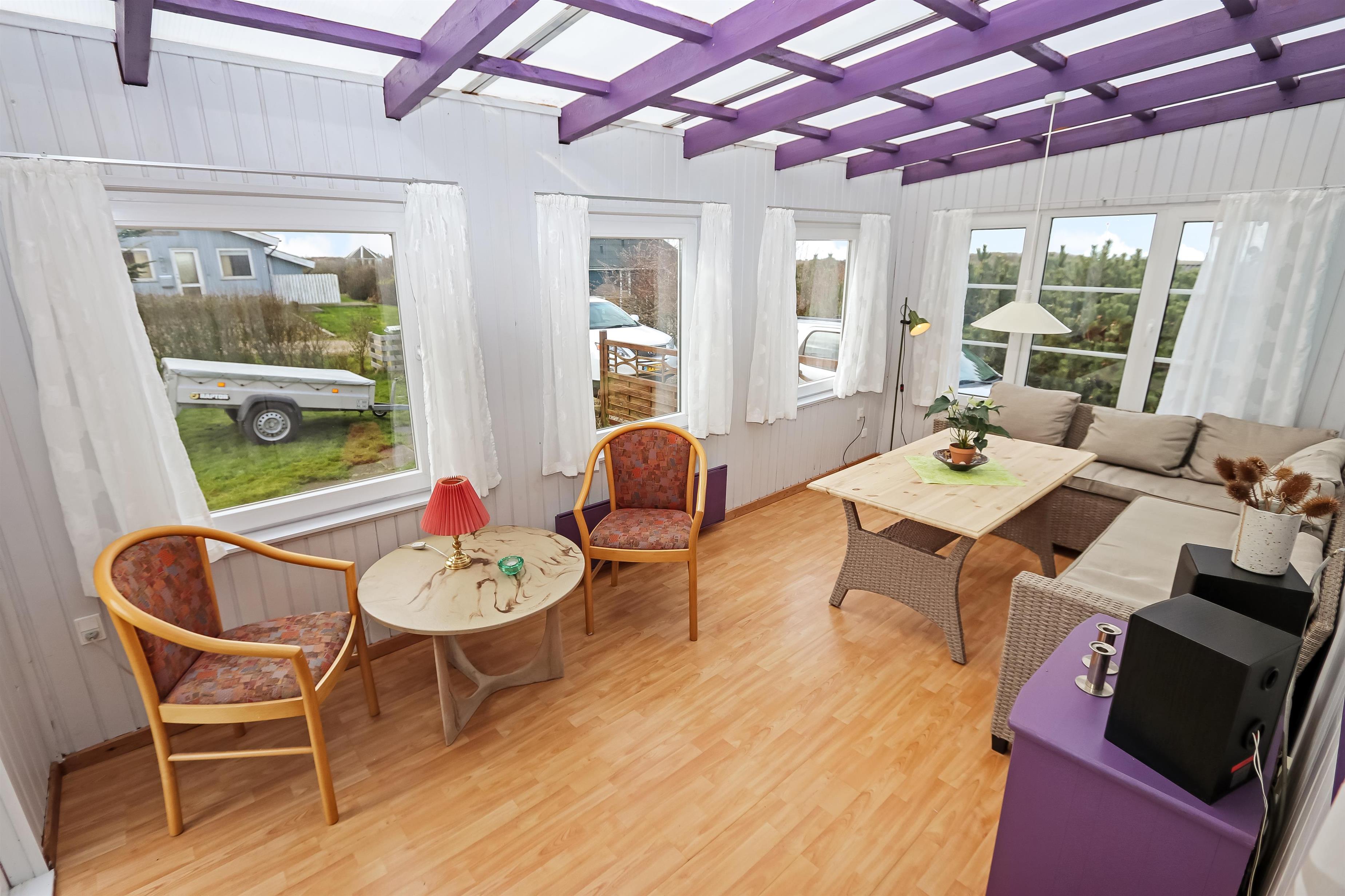 Wenn Sie das Auto direkt beim Haus geparkt haben, begrüsst Sie eine geschlossene Terrasse. Eine schöne Gartenstube macht das Haus ganz speziell. Von der Terrasse und der Gartenstube gibt es einen schönen Ausblick und die Gartenstube ist fantastisch, egal wie das Wetter ist. Auf dem gepflegten Grundstück gibt es immer die Möglichkeit eine windgeschützte Stelle zu finden. Gartenmöbel, Sonnenstühle und Grill sind vorhanden und können nach Bedarf aufgestellt werden. Auf dem Grundstück gibt es einen Unterschlupf, so Sie haben die möglichkeit in die freien zu übernachten. Das Haus liegt hoch und abgelegen an einem Stichweg auf einem gepflegten Grundstück von etwa 972 m². Vom Haus aus gibt es ein schönes Wegestystem, das Sie in wenigen Minuten direkt zum Wasser führt. Etwa 300 m vom Haus entfernt liegt ein schöner neuer Naturspielplatz aus Holzgeräten, mit Fussballtoren und Rutsche, und es ist auch nicht weit zum Einkauf oder zum Strand in Gjellerodde. Die Stadt Lemvig ist nur vier Kilometer entfernt. Sie ist eine lebhafte Handelsstadt mit vielen Geschäften , einem Fischrestaurant, einem Museum usw.