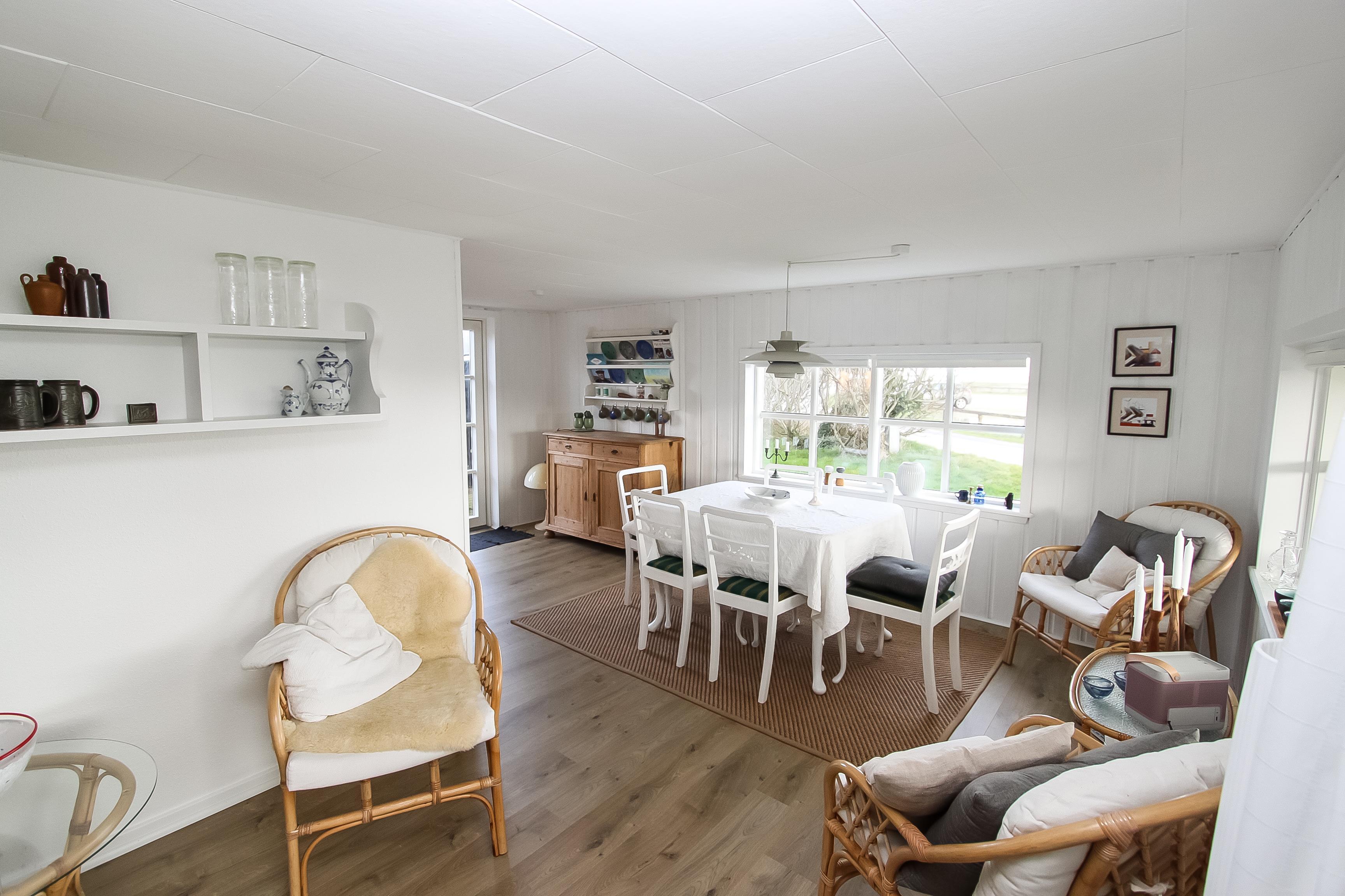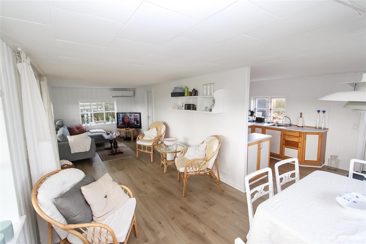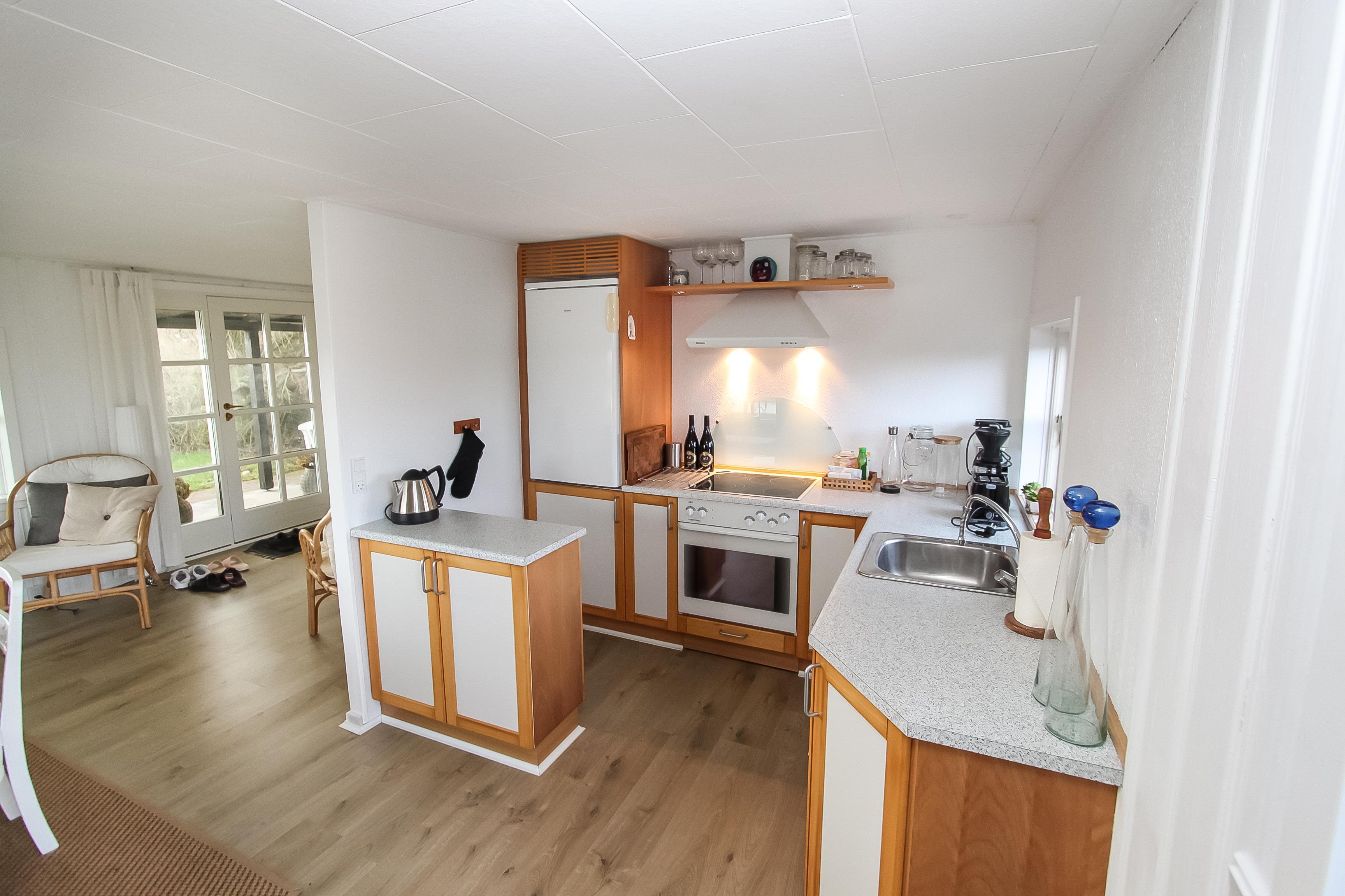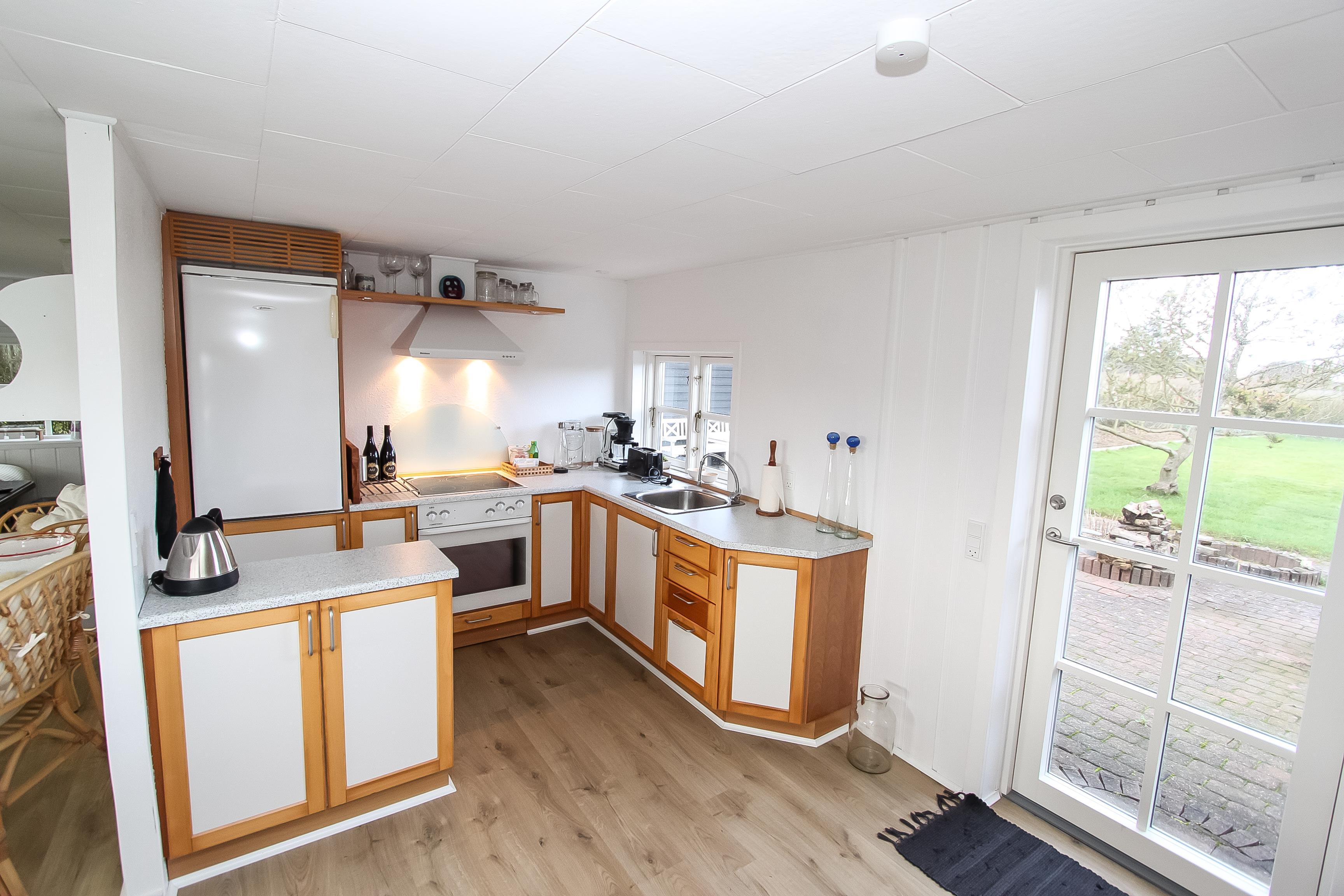 Holzferienhaus mir etwa 49 m². Das Haus ist gemütlich eingerichtet mit z.B. schönen Polstermöbeln und praktischem Holzboden im ganzen Haus. 1 Schlafraum: 1DB. Wohnraum mit TV mit dänischen und deutschen Programmen, DVD-Spieler, Bluetooth Lautsprecher für streaming von Musik und Radioprogrammen. Gemütliche Küchenecke mit Herd mit Cerankochfeld, Abzugshaube, eingebautem Ofen und Kühlschrank mit Gefrierfach. Von dem kombinierten Wohnraum/Küchenecke können Sie den schönen Blick über das Wasser geniessen. Kleines Badezimmer mit Toilette, Dusche und Waschbecken. Rauchen ist nicht gestattet. Haustiere sind nicht erlaubt. Ein sehr gemütliches richtiges Ferienhaus in fantastischer Lage.