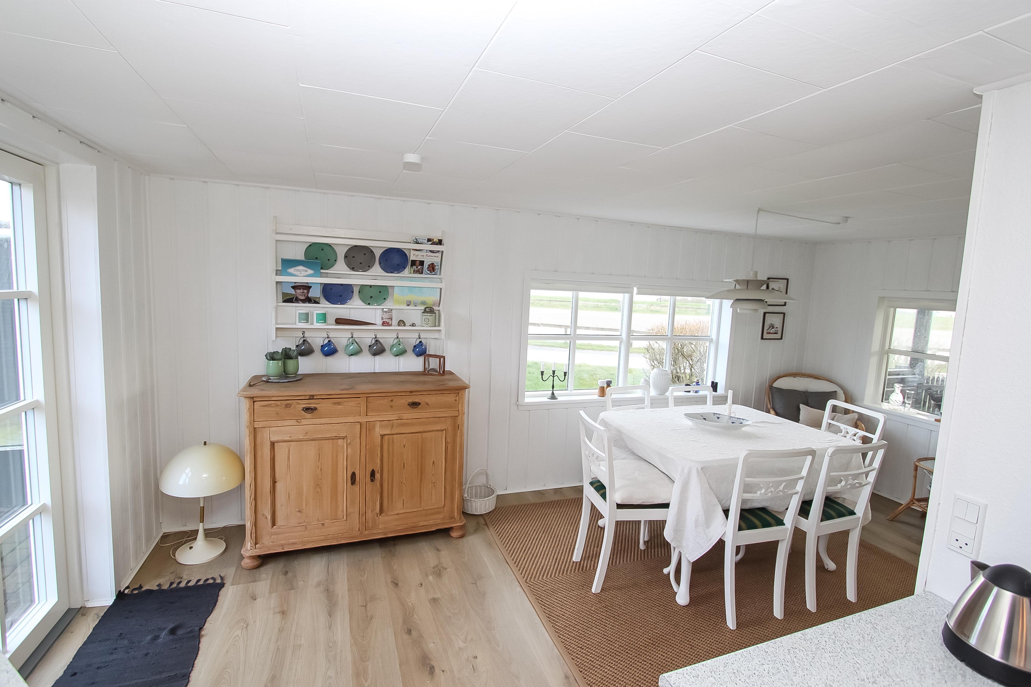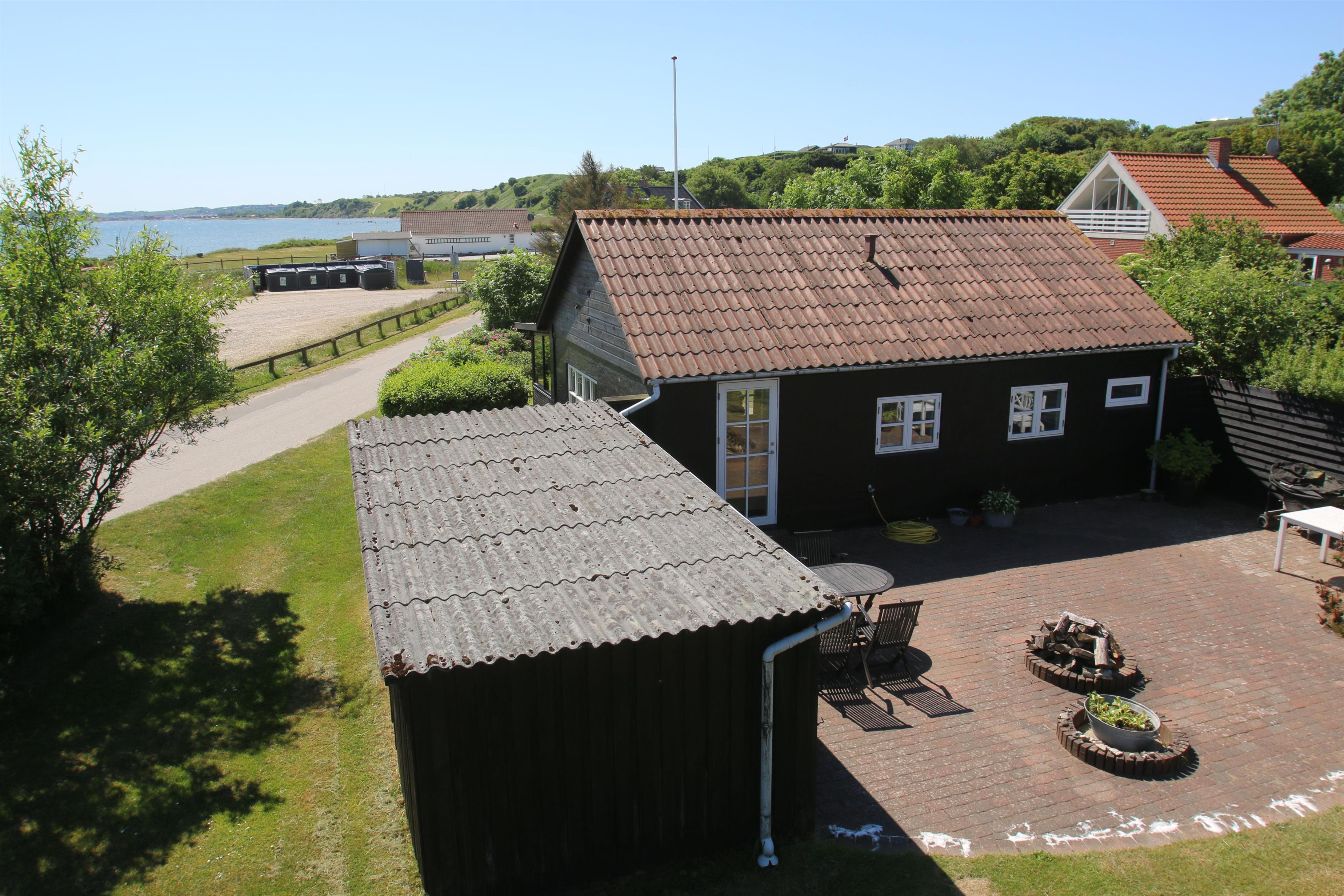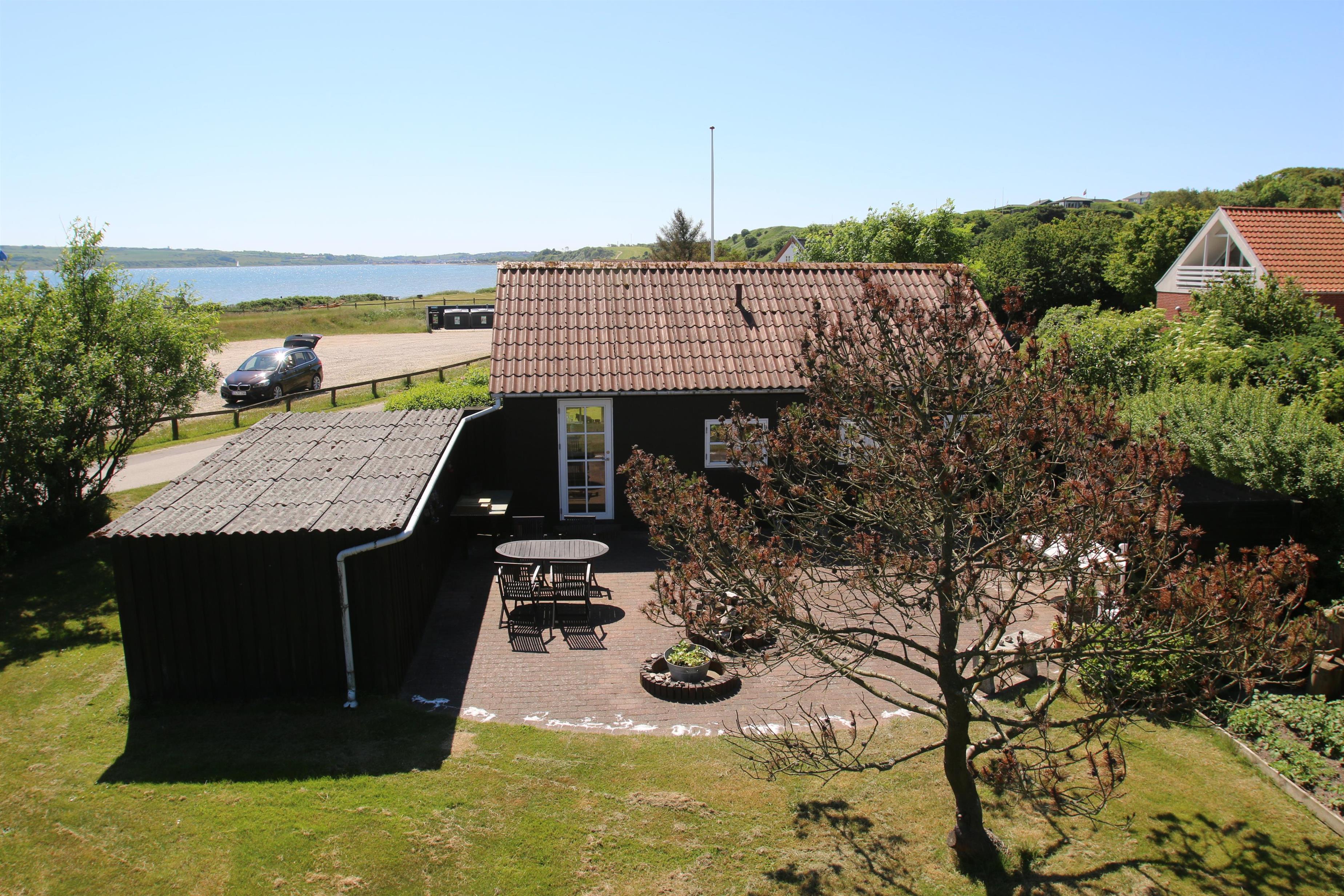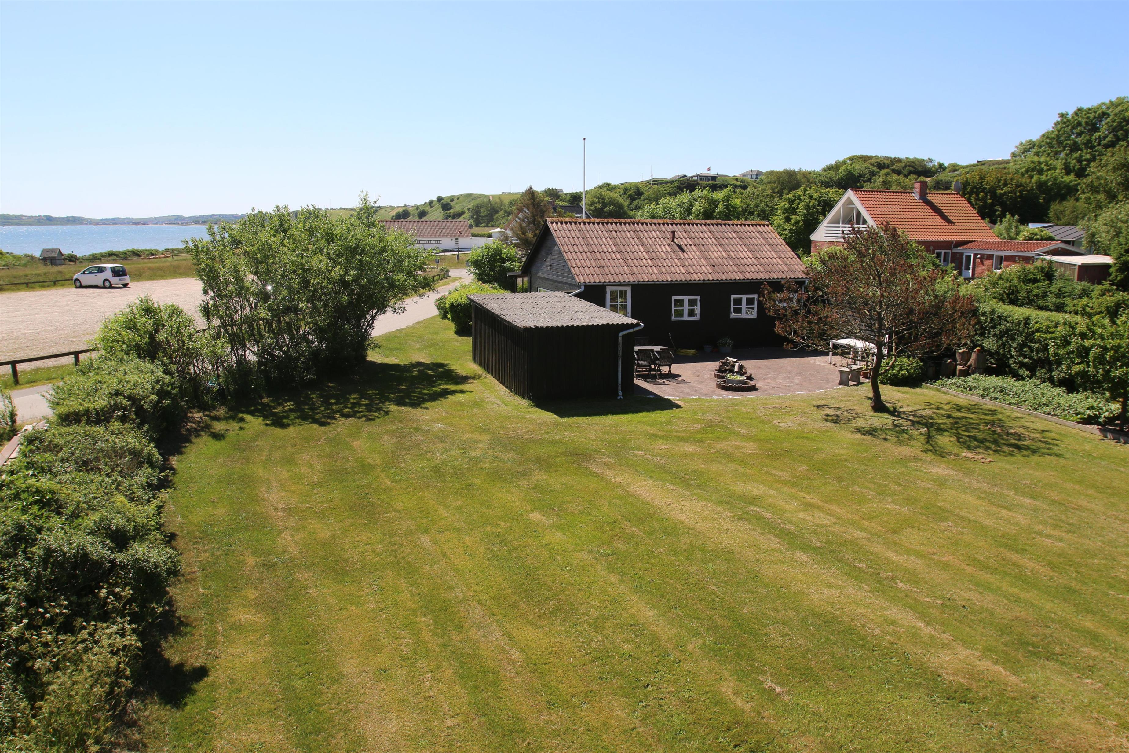 Wenn Sie das Auto auf dem Parkplatz gegenüber vom Haus geparkt haben, heisst Sie eine teilweise überdachte Terrasse wilkommen. Ein fantastisch geschlossenes Grundstück und der Blick zum Limfjord macht das Haus ganz speziell. Von der Terrasse und dem Wohnraum haben Sie einen fantastischen Ausblick. Auf dem 1.419 m2 grossen, gepflegten Grundstück gibt es immer eine Möglichkeit eine windgeschützte Stelle oder einen Platz in der Sonne zu finden. Viele Gartenmöbel. Sonnenliegen und Gartenmöbel können nach Bedarf auf dem Grundstück aufgestellt werden. Das Haus liegt in einer ruhigen Ferienhaussiedlung und nur 20 M von ein Ladeplatz für E-Autos. Vom Haus aus gibt es ein Wegsystem, wo Sie bis zum Wasser spazieren gehen können. Der Ort Lemvig liegt bloss 4 km entfernt. Hier gibt es viele Geschäfte, Fischrestaurants, Museum u.a.